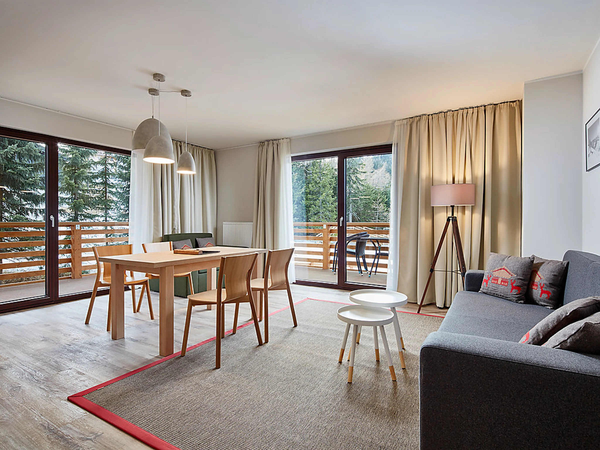 2-Zimmer-Wohnung 58 m2. Objekt geeignet für 4 Erwachsene + 1 Kind. Modern und geschmackvoll eingerichtet: Wohn-/Schlafzimmer mit 1 Doppeldiwanbett, Esstisch und Sat-TV (Flachbildschirm). 1 Zimmer mit 1 Diwanbett und 1 Doppelbett. Offene Küche (Backofen, Geschirrspüler, 4 Glaskeramikherd Platten, Mikrowelle). 2 Bäder oder Duschen/WC. Parkettböden. Balkon. Balkonmöbel. Sehr schöne Sicht auf die Berge und die Landschaft. Zur Verfügung: Internet (Wireless LAN, gratis). Bitte beachten: Nichtraucher-Unterkunft. Maximal 2 Haustiere/Hunde erlaubt. Enthaltet: Salzburger Burgen Ermäßigung, Katschberg-Card [auch für (Klein-) Kinder] inclusive!, ERV assurance annulation gratuite, Kinderhochstuhl Erhältlich vor Ort mit Aufpreis: Toilettenwäsche (zweites Set) 5.0EUR pro Person, Vor Ort extra bestell- und zahlbar: Baybset, Hundepaket und Getränkeservice. (nach Verbrauch), Haustiere 10.0EUR pro Tag, Babybett (bis 2 Jahre) 7.0EUR pro Tag, Frühstückspaket (Milch, Eier, Butter, Kaffee, Aufstriche...) Inhalt variabel. 49.9EUR pauschal, Bettwäsche (2 Set) 6.0EUR pro Person Obligatorische Extra Dienstleistungen vor Ort: Bettwäsche inkl gemachter Betten, Handtuchset, Geschirrtücher und Endreinigung 6.5EUR pro Person/Tag, Kurtaxe 1.1EUR pro Person/Tag