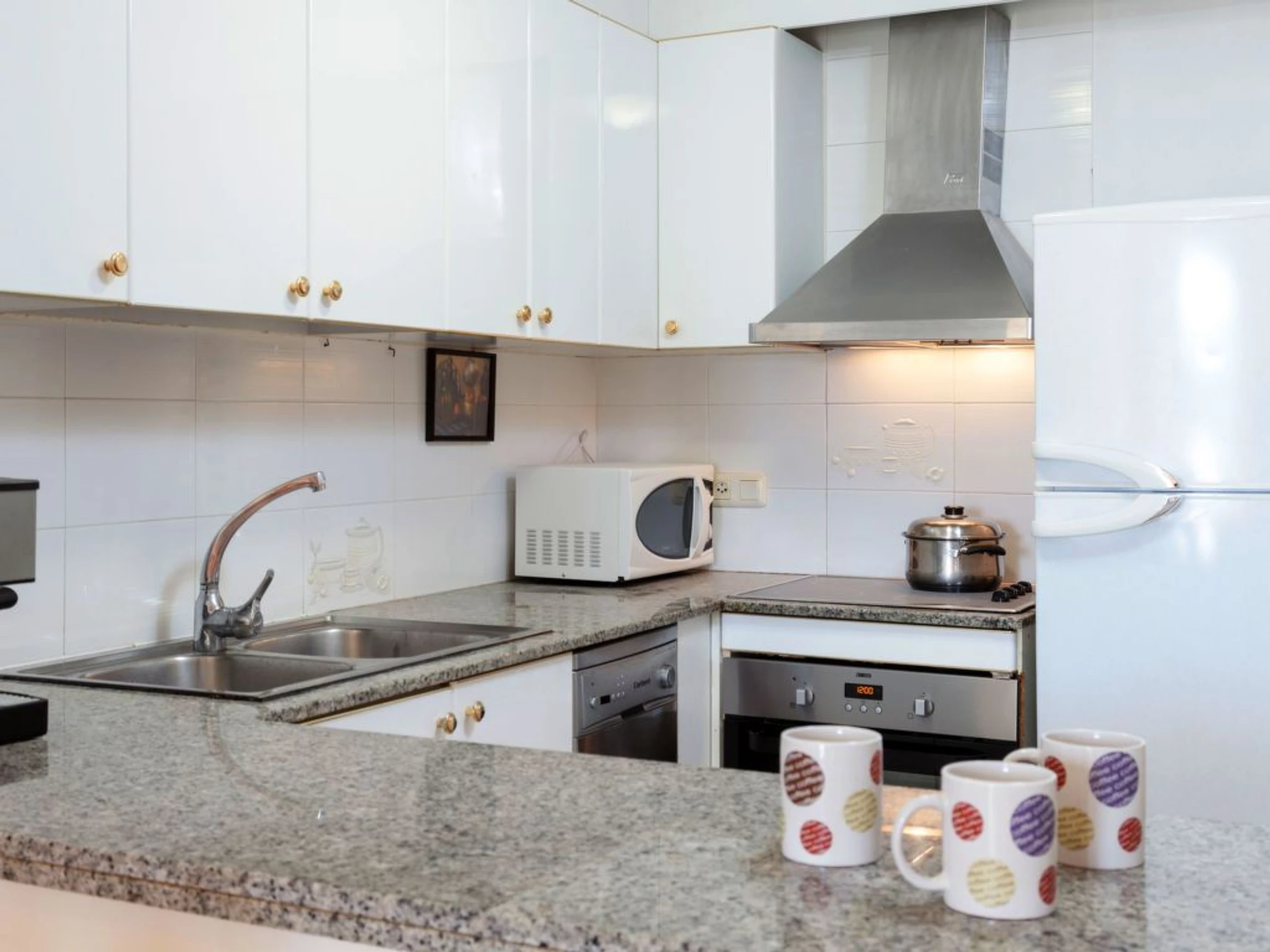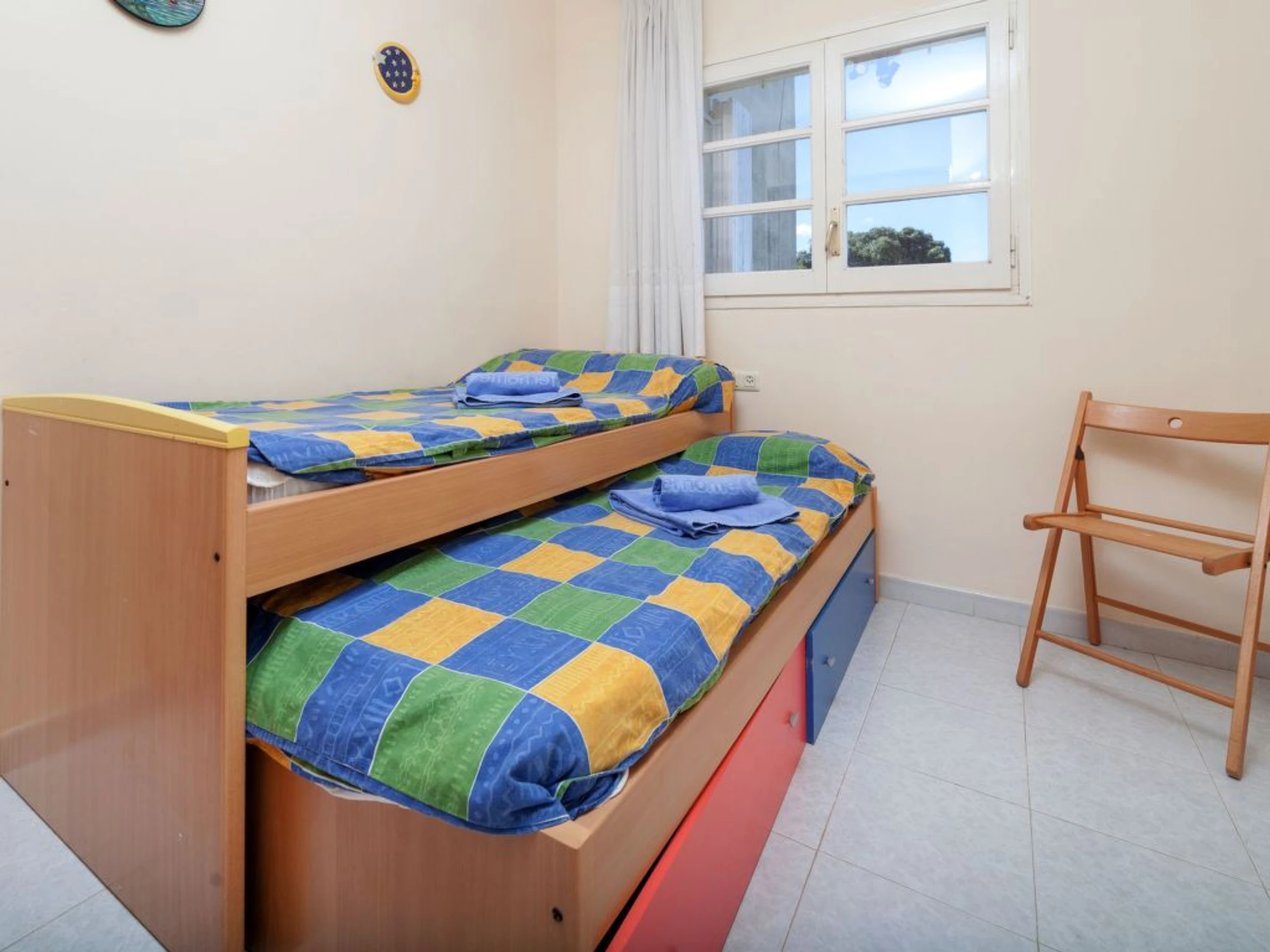 "Turquesa", 4-Zimmer-Wohnung 65 m2 im 1. Stock. Zweckmässig eingerichtet: Wohn-/Esszimmer mit TV. Ausgang zur Terrasse. 1 Zimmer mit 1 franz. Bett (135 cm, Länge 180 cm). Ausgang zum Balkon. 1 Zimmer mit 1 x 2 Etagenbetten (90 cm, Länge 180 cm). Ausgang zum Balkon. 1 Zimmer mit 1 Ausziehbett (2 x 90 cm, Länge 180 cm). Ausgang zum Balkon. Offene Küche (Backofen, Geschirrspüler, Mikrowelle, Tiefkühler, elektrische Kaffeemaschine). Bad/Bidet/WC, sep. WC. Balkon, Terrasse. Terrassenmöbel, Gartengrill. Zur Verfügung: Waschmaschine. Parkplatz Nr. 10. Bitte beachten: TV nur ES. HUTG000635