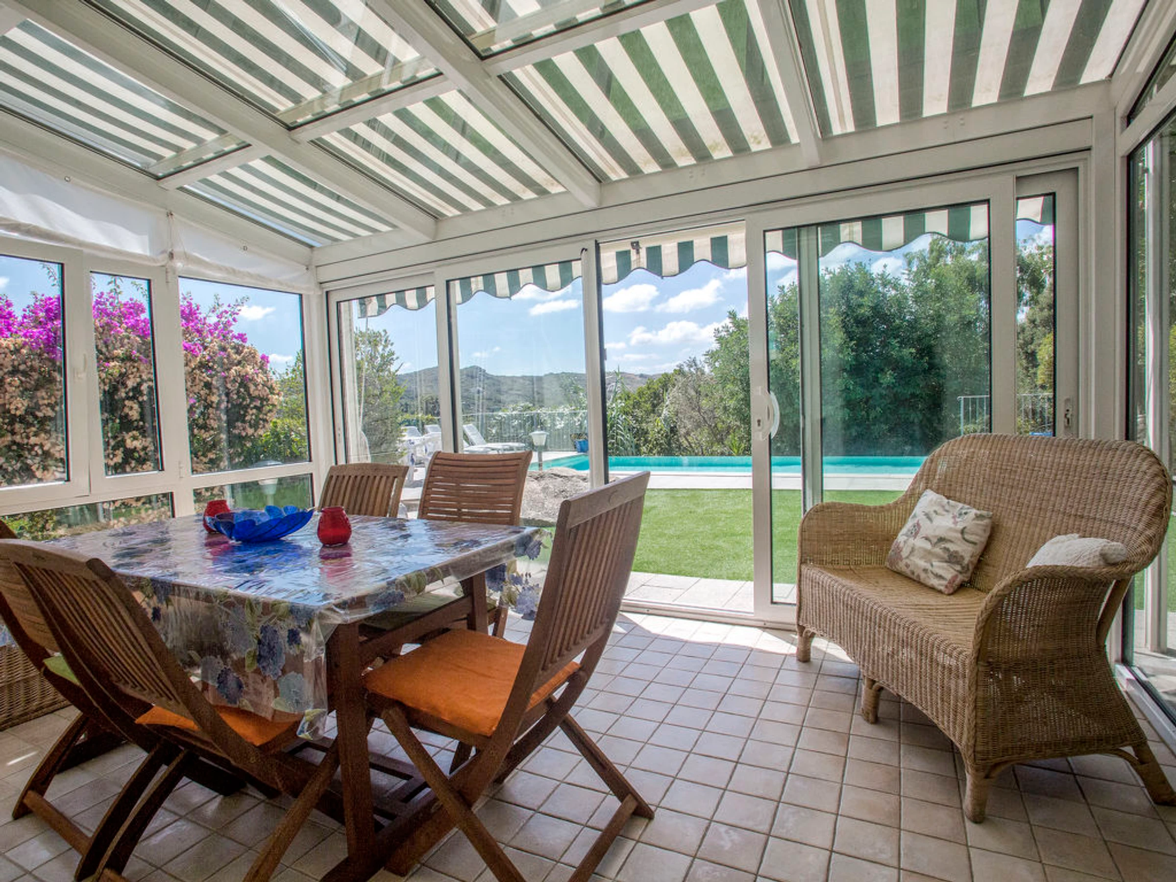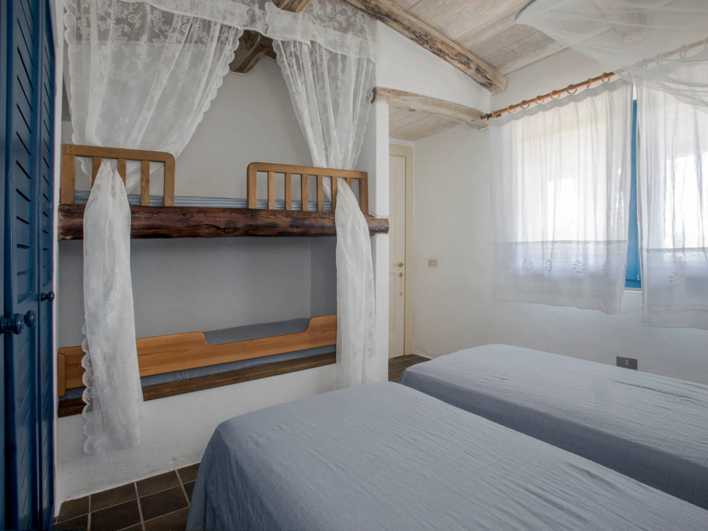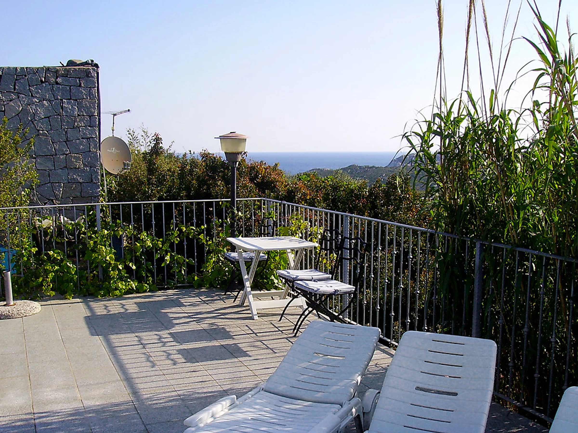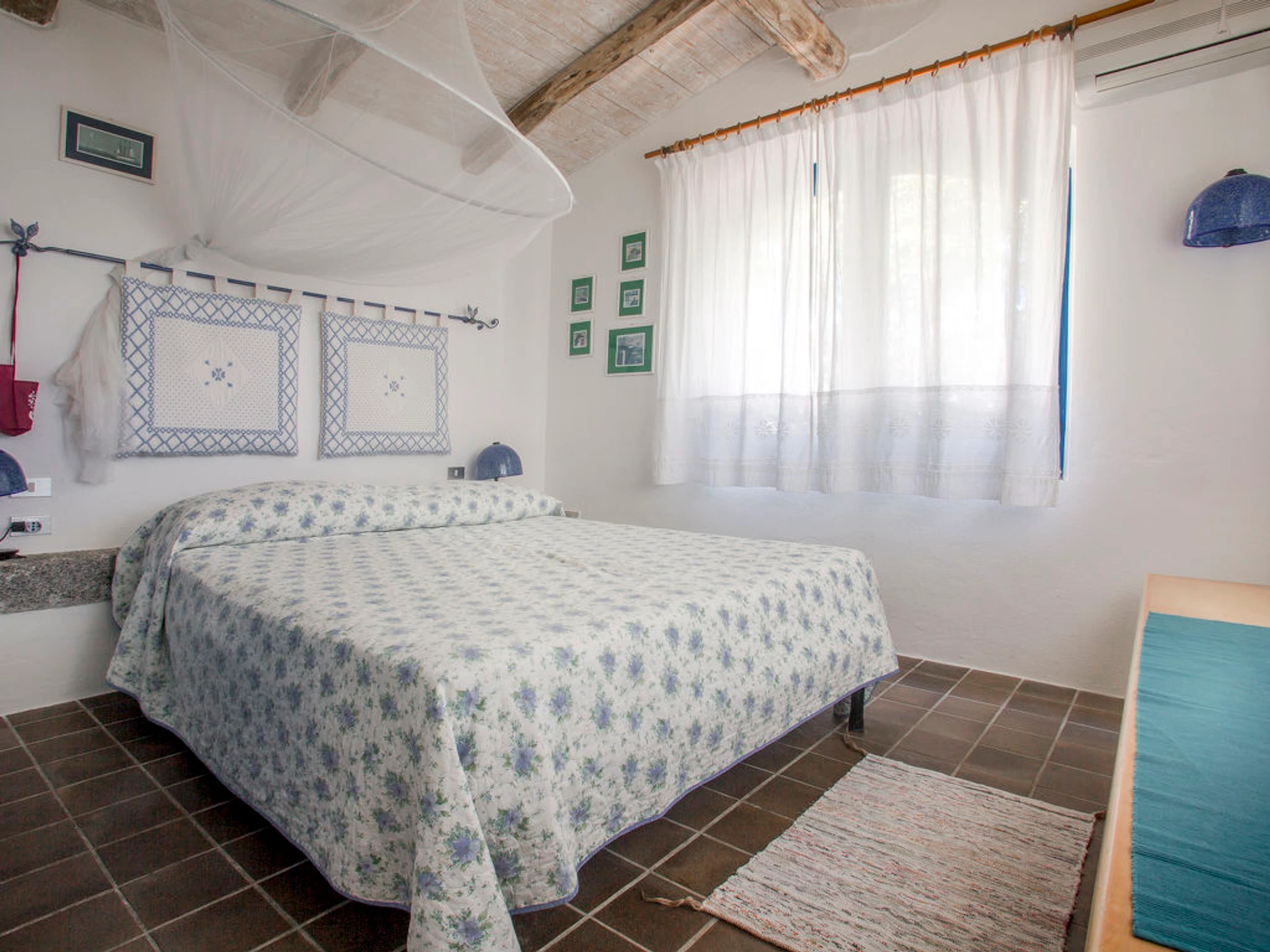 Porto Quadro 3 km von Santa Teresa Gallura: Gemütliche Villa "La Loggia", umgeben von Bäumen und Wiesen. 4 km vom Zentrum, ruhige, sonnige, erhöhte Lage im Villenviertel, 800 m vom Meer. Zur Alleinbenutzung: Garten 1'200 m2 (eingezäunt), Schwimmbad (4 x 8 m, 130 - 160 cm tief, 01.06.-30.09.). Aussendusche. Haushaltshilfe täglich möglich (extra). Parkplatz beim Haus. Einkaufsgeschäft 3 km, Lebensmittelgeschäft 3 km, Supermarkt 3 km, Restaurant 3 km, Sandstrand 800 m. Bitte beachten: Fahrzeug empfohlen.