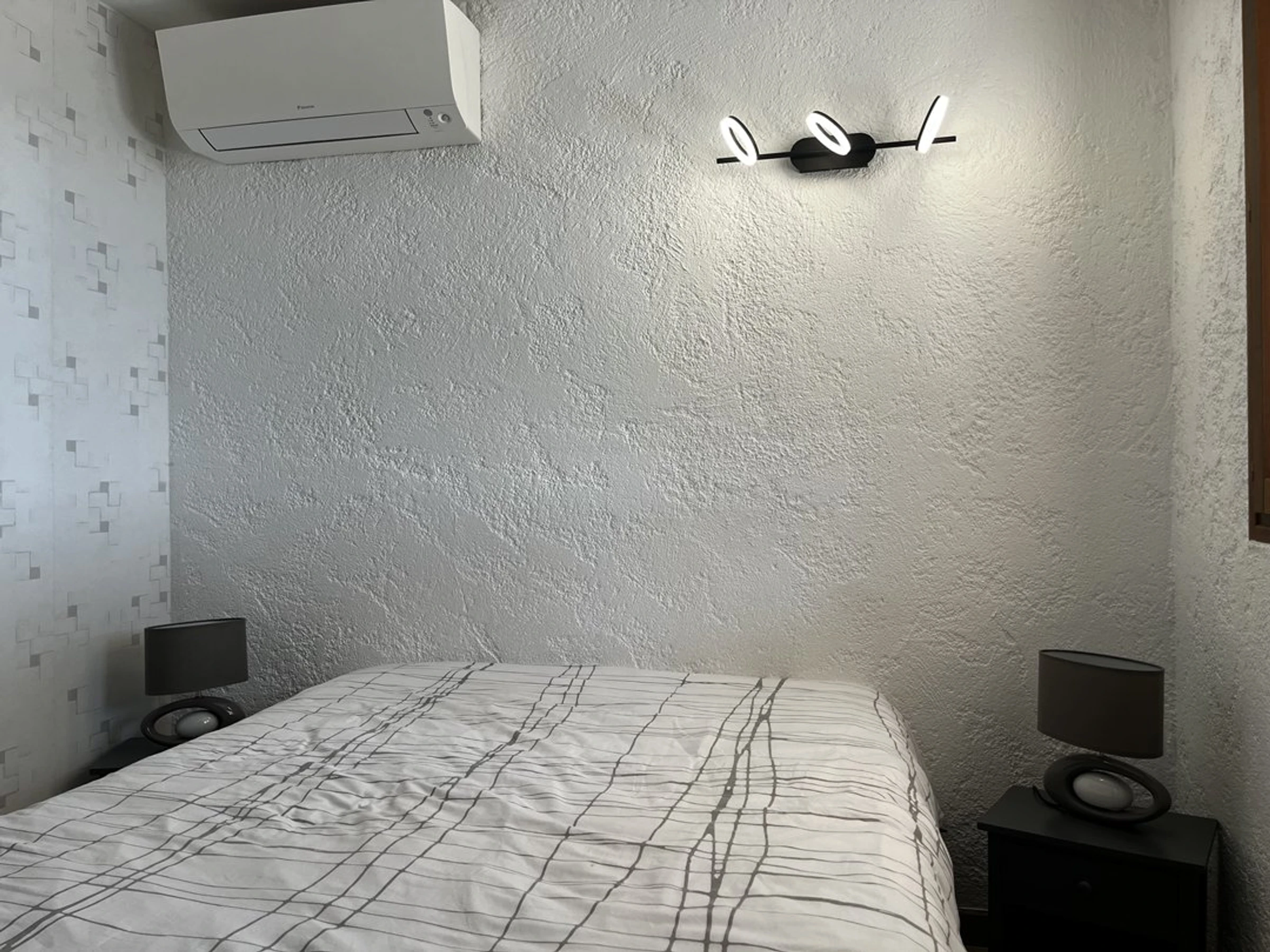 Zimmer: Fliegengitter, 160 Bett, Kleiderschrank, zwei Nachttische und zwei Lampen