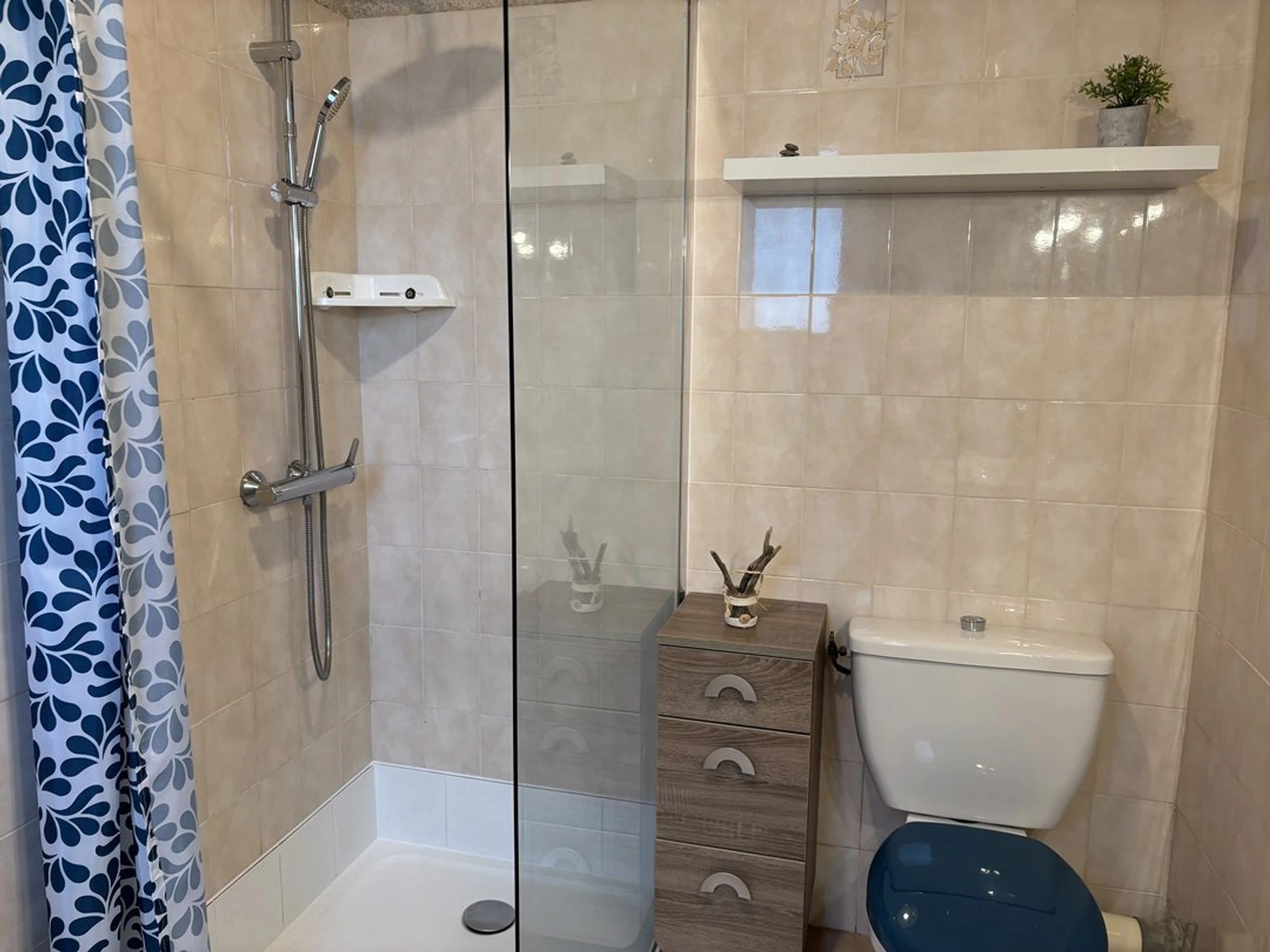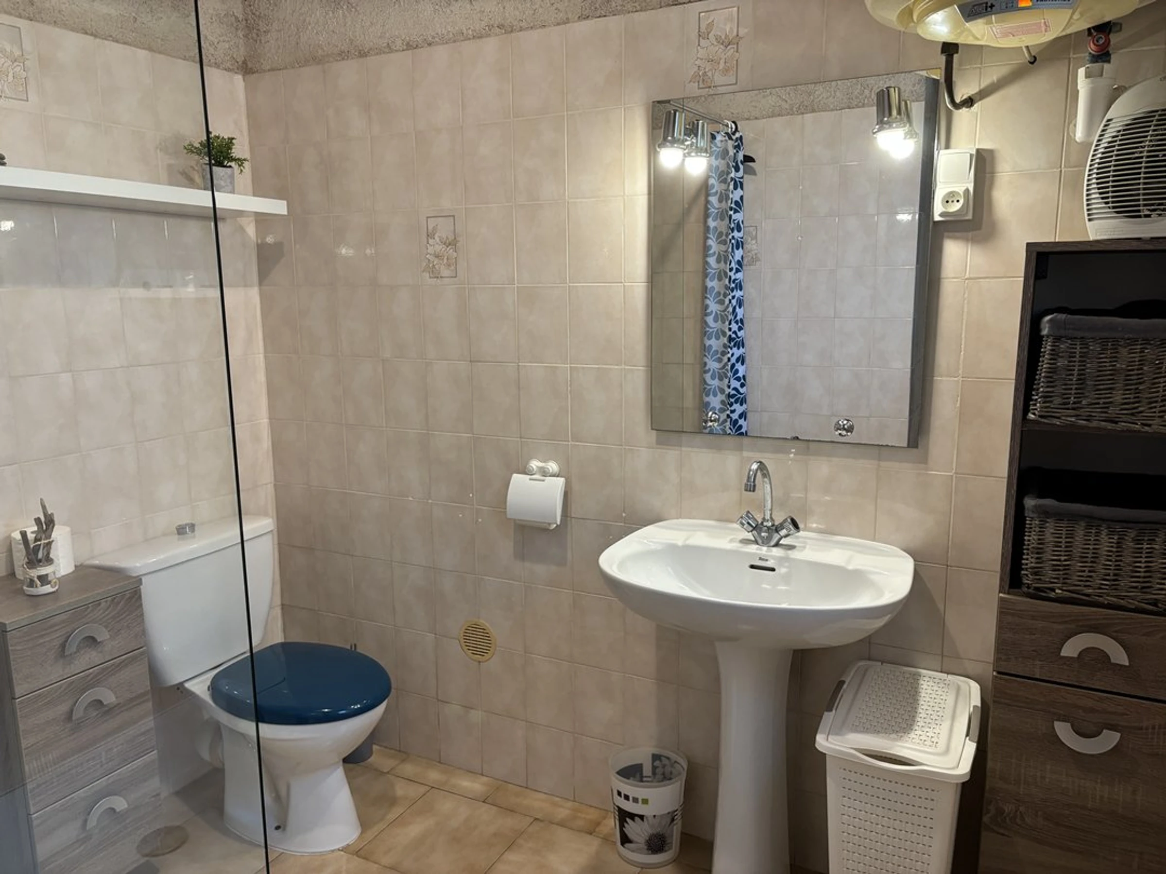 Badezimmer: FlegengitterDusche, Waschbecken und WC