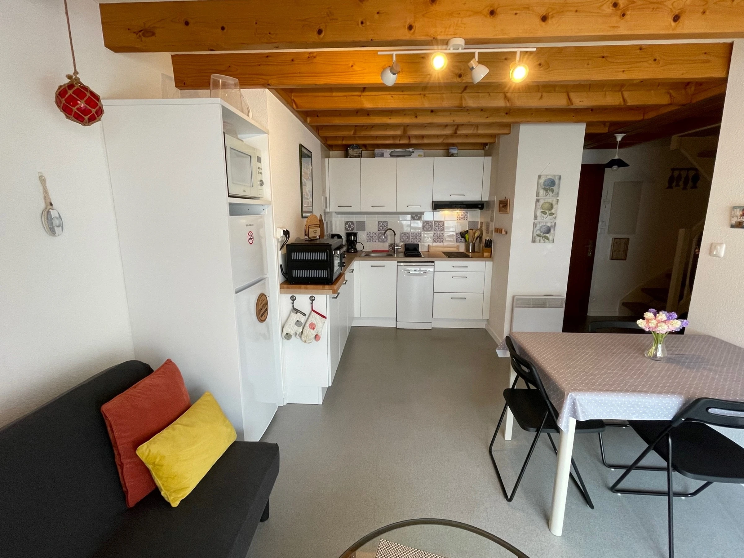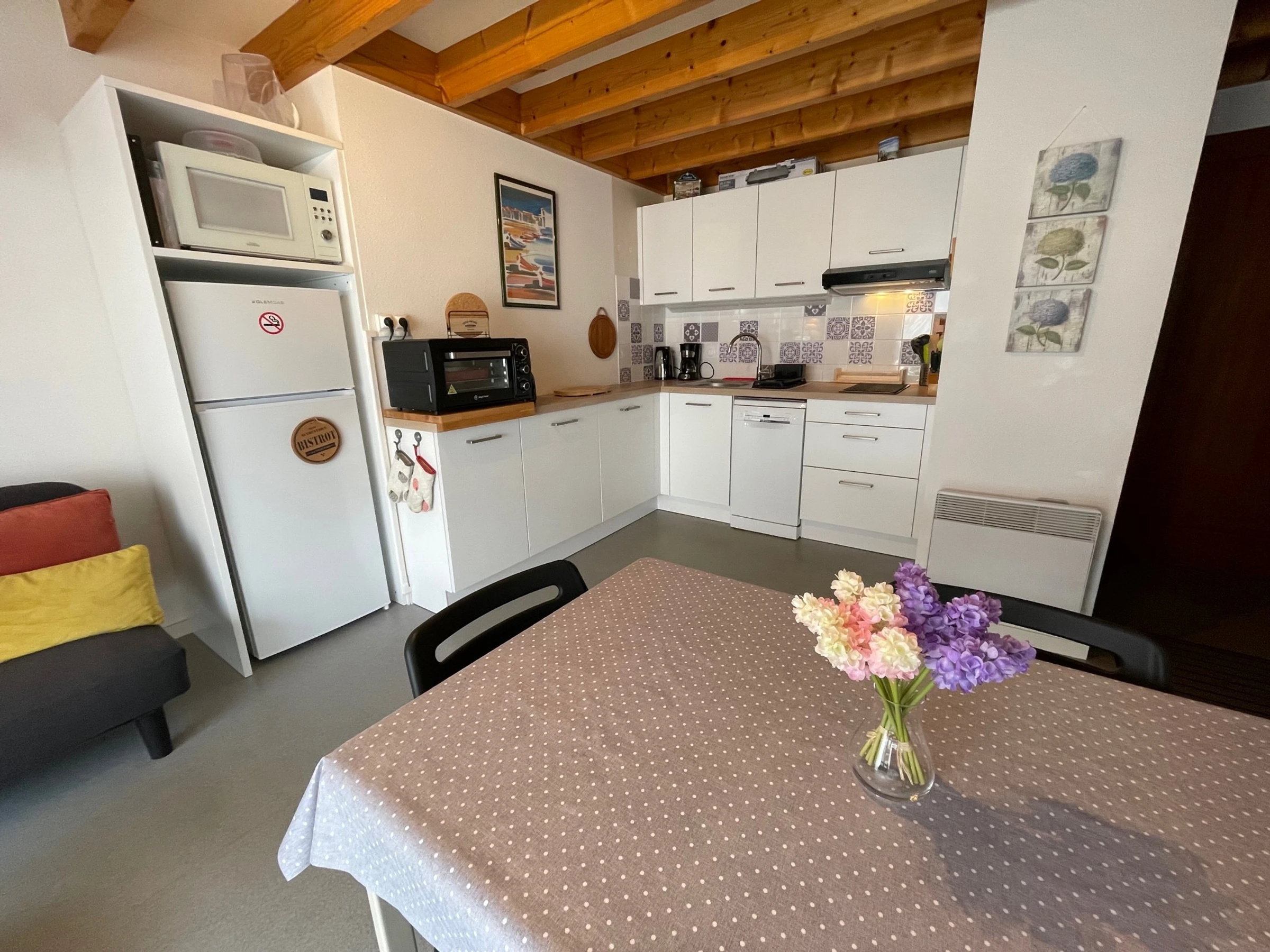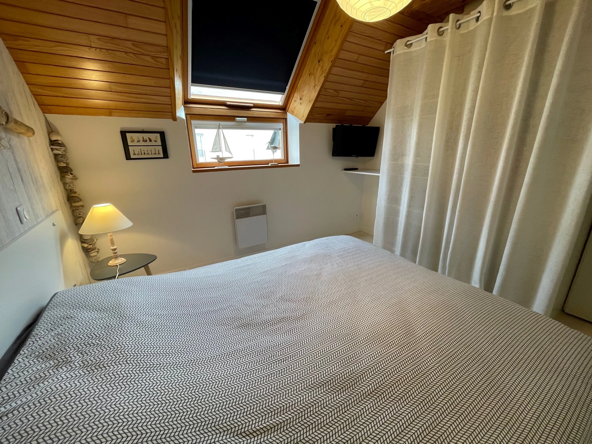 In der Nähe von Hafen und Strand befindet sich diese schöne, ruhige Maisonette-Wohnung mit zwei Schlafzimmern im ersten Stock eines Gebäudes ohne Aufzug. Sie besteht aus: einem Eingangsbereich mit Garderobe (Regale und Kleiderstange), einem WC, einem ersten Schlafzimmer (mit einem Queensize-Bett), Garderobe (Regale und Kleiderstange) und Fernseher, einem Wohn-/Esszimmer mit Zugang zu einer Terrasse und Fernseher sowie einer voll ausgestatteten Küchenzeile (Kühlschrank mit Gefrierfach, Mikrowelle, Mini-Backofen, Induktionskochfeld mit zwei Kochplatten, Geschirrspüler für sieben Gedecke, elektrische Filterkaffeemaschine und Senseo-Kapselkaffeemaschine).