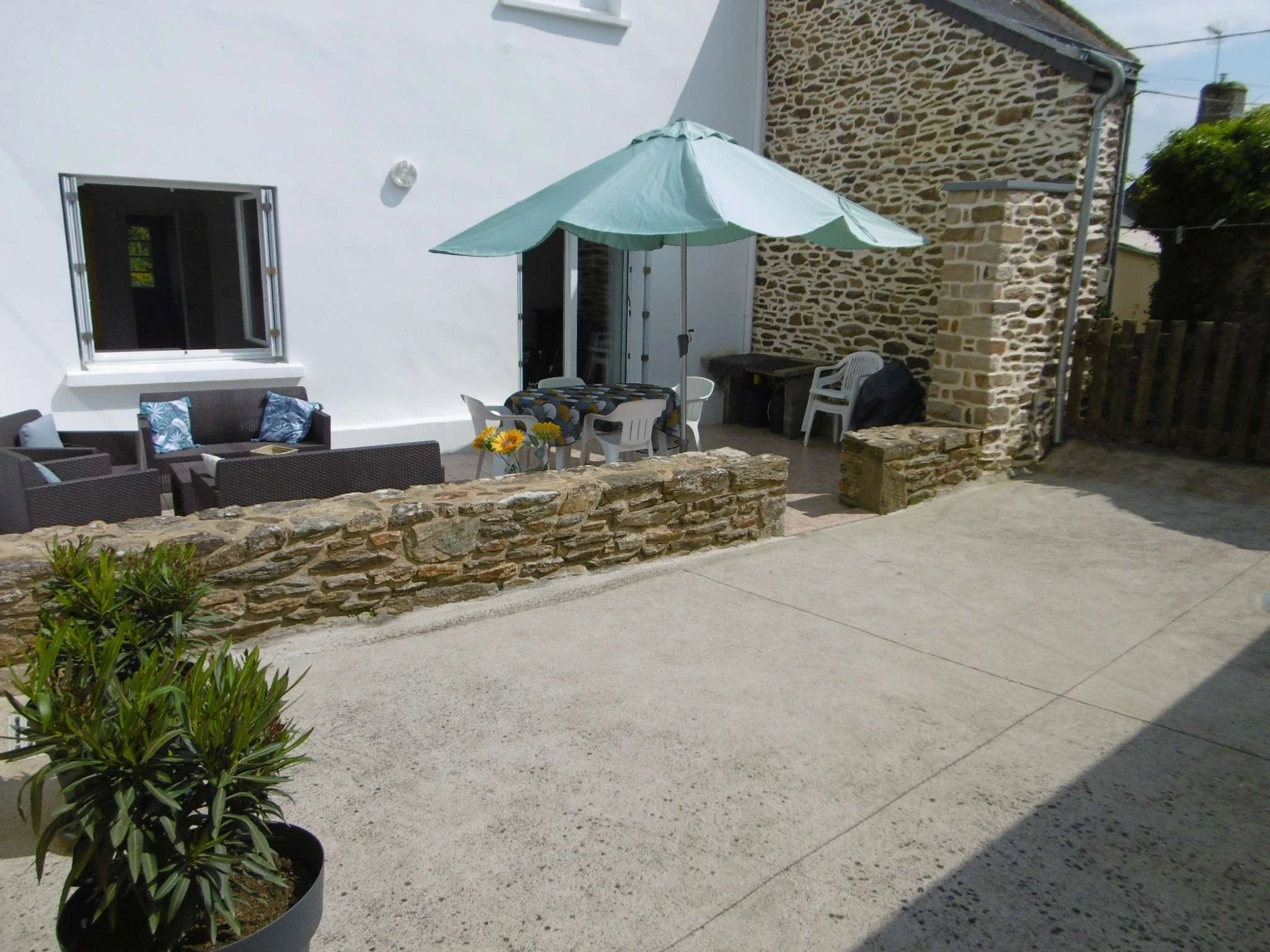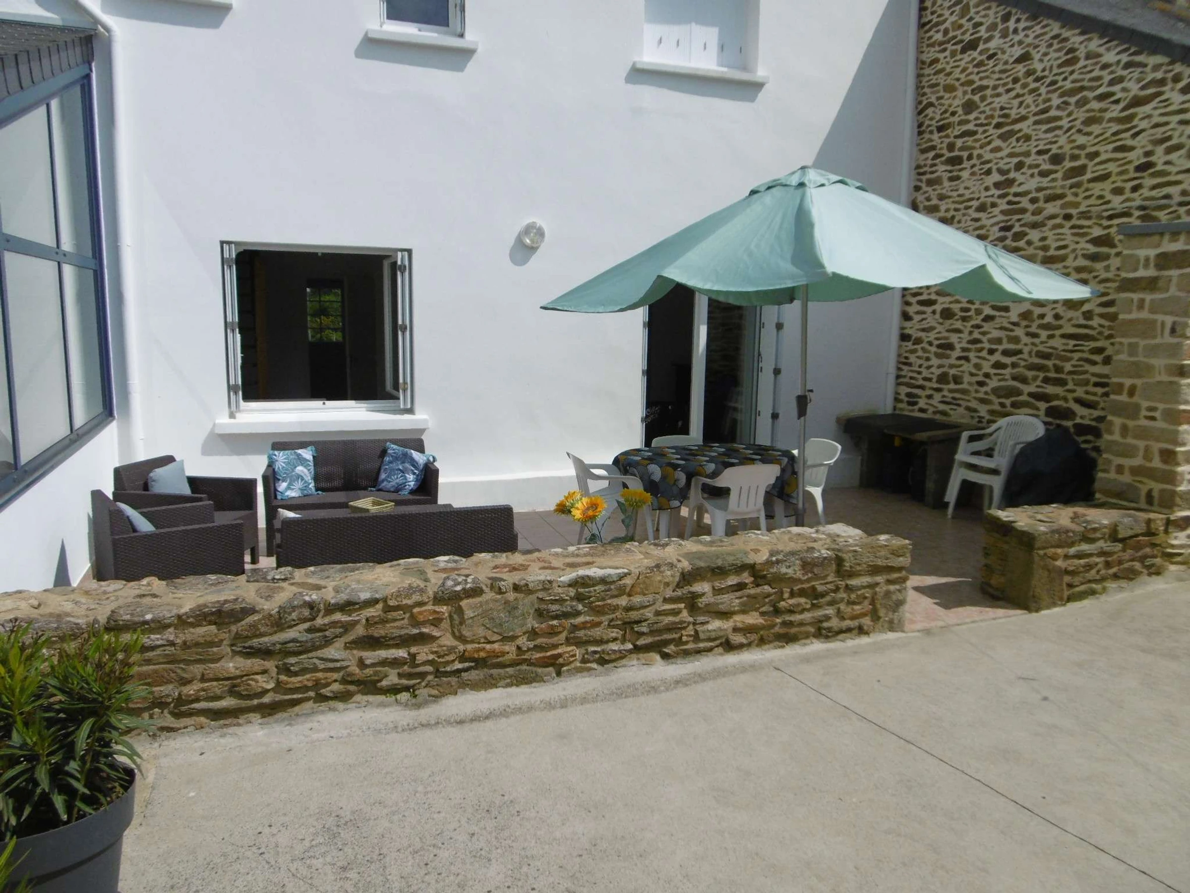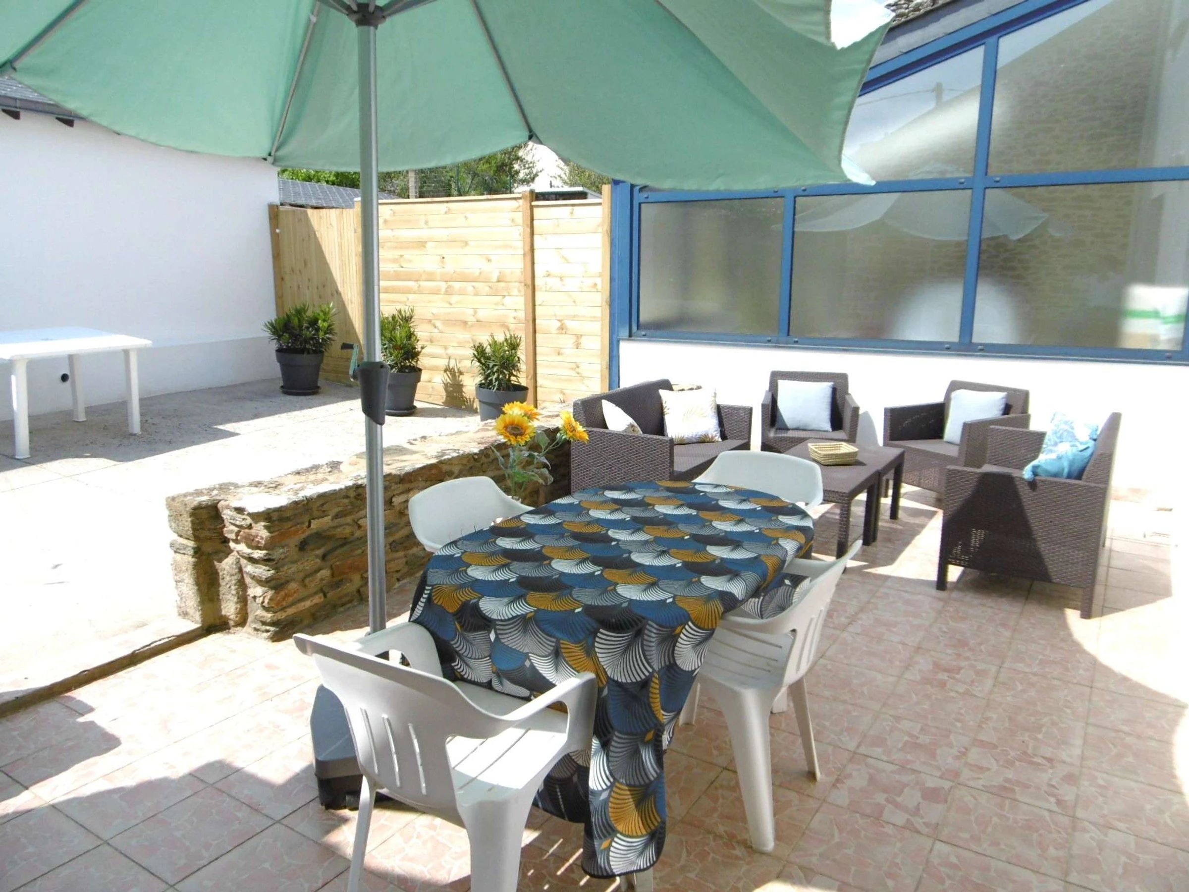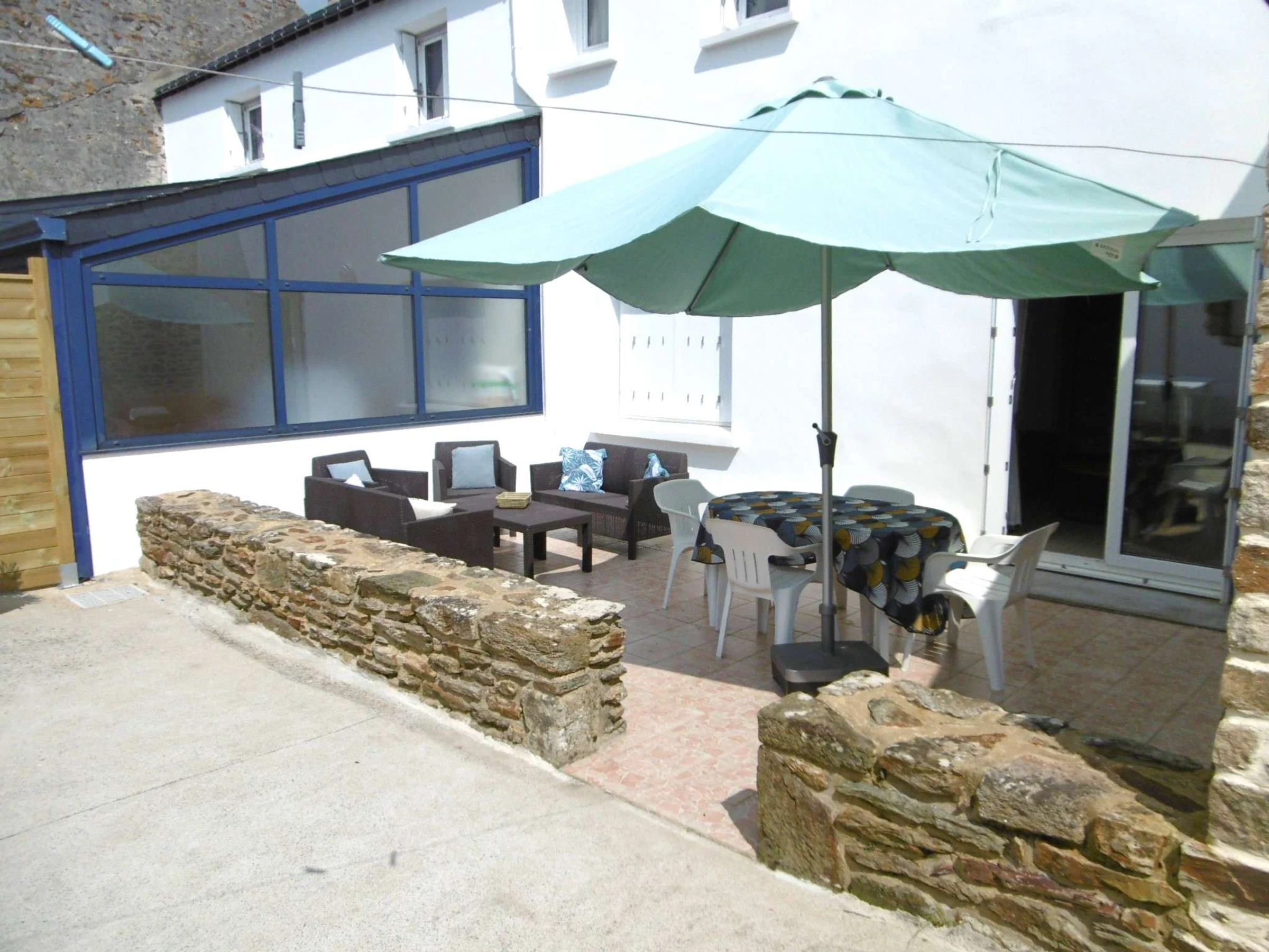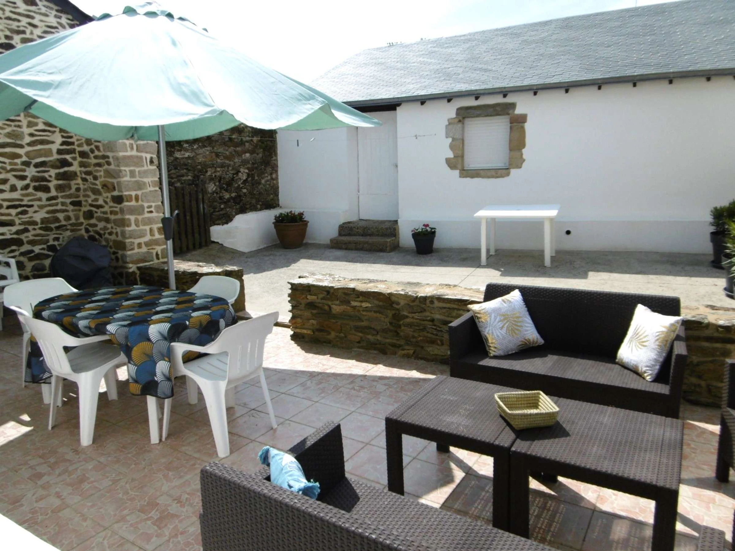 - Ein abgeschlossener Außenbereich mit Terrasse, Gartenmöbeln, Liegestühlen und Grill.