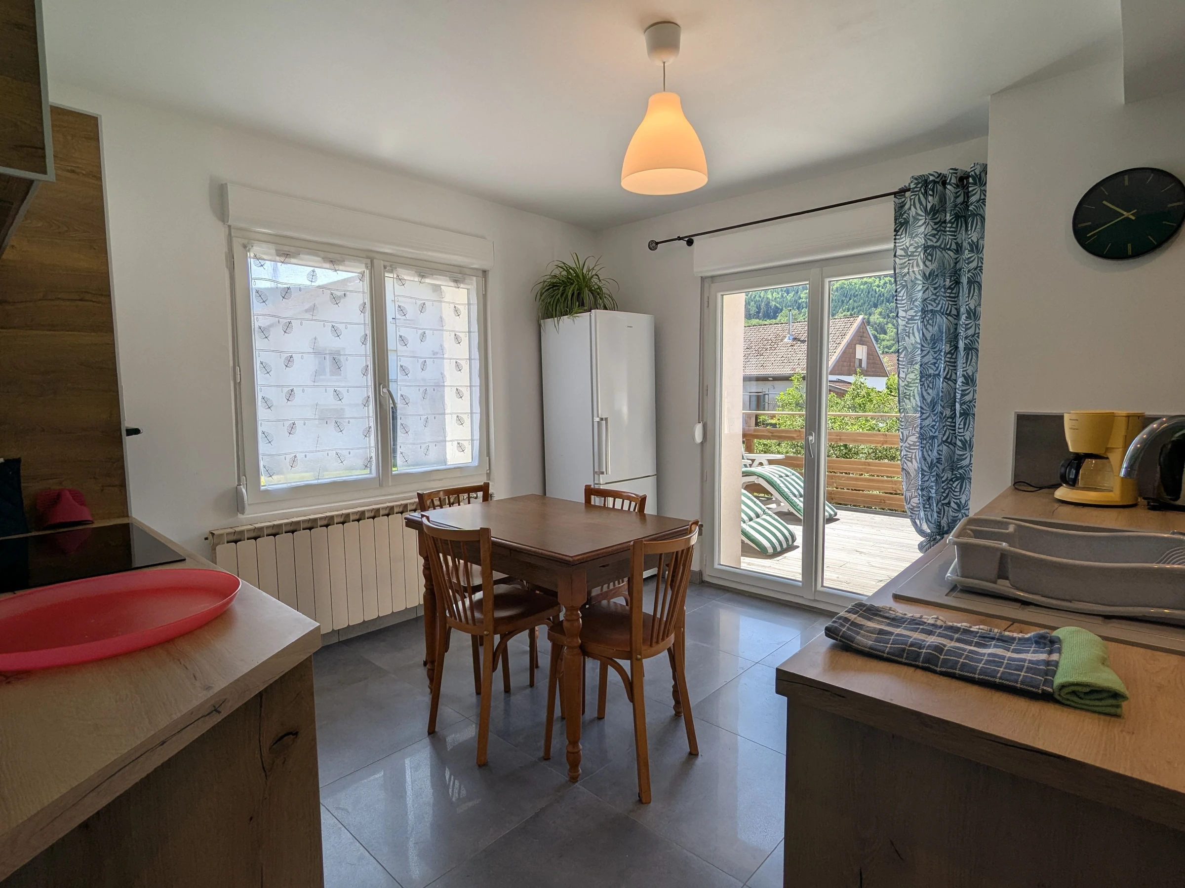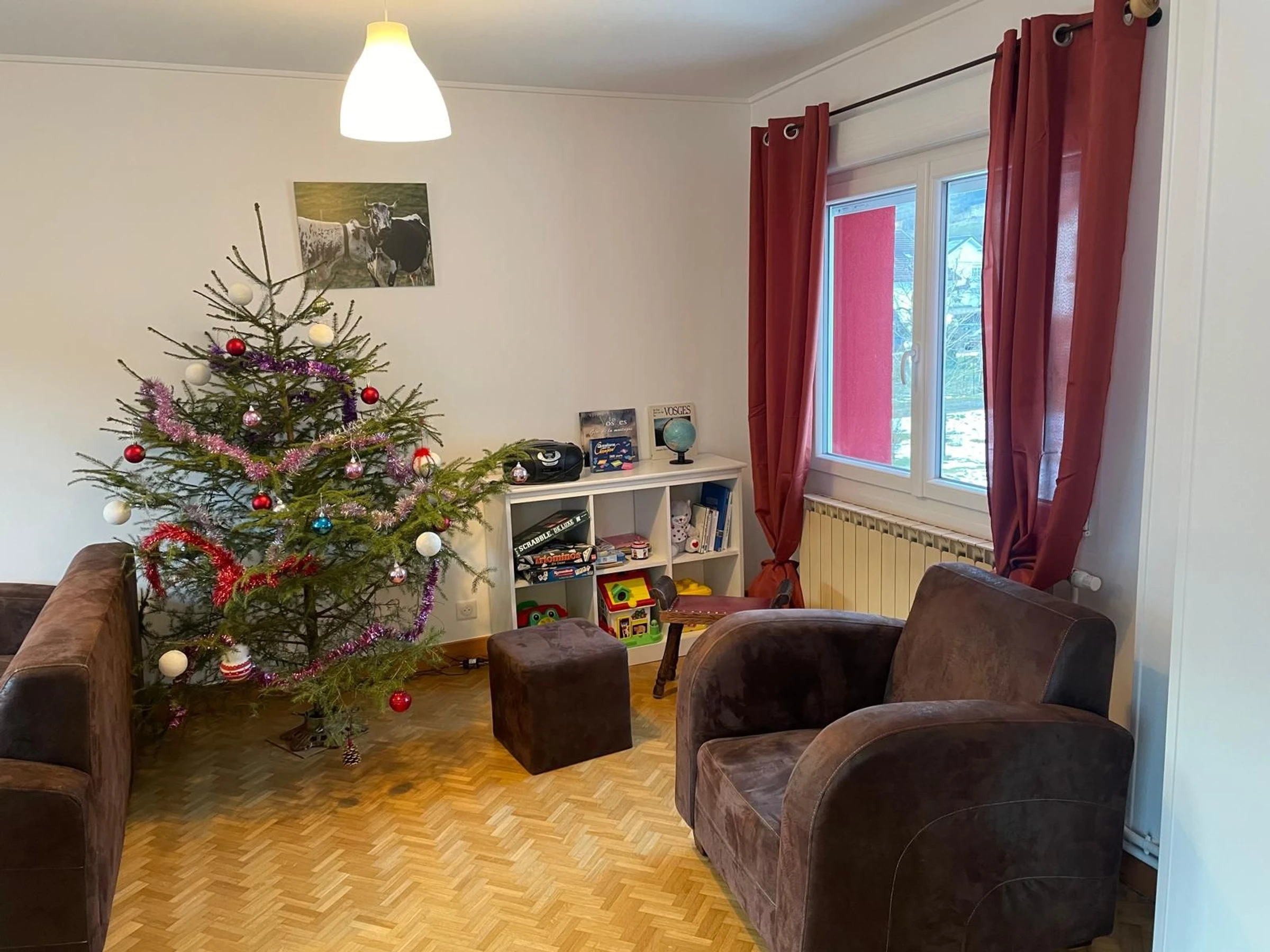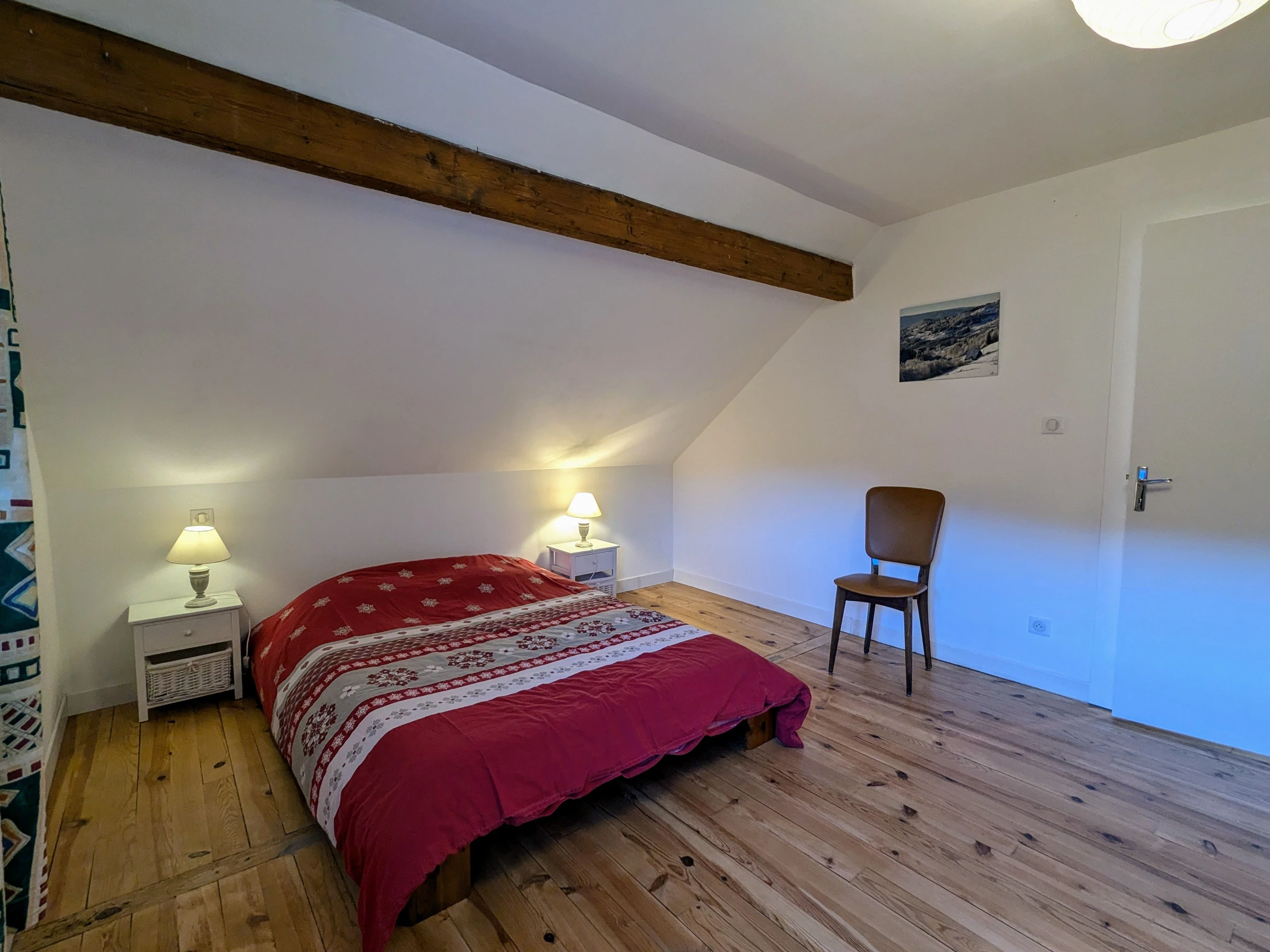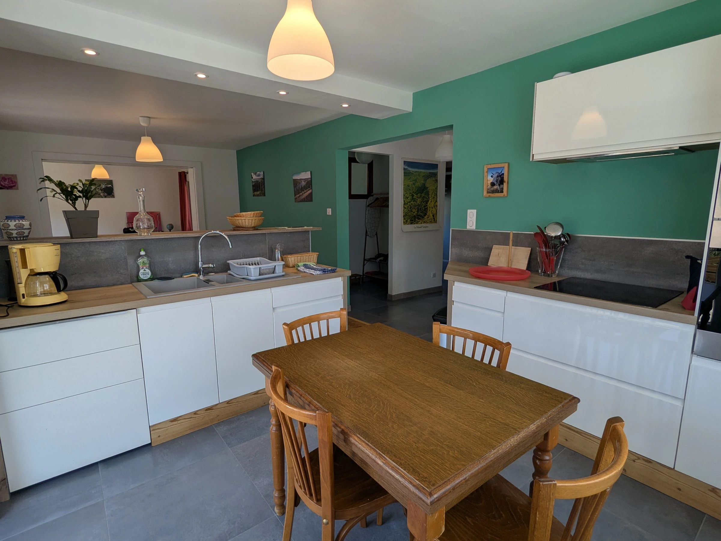 Der durch seine großen Öffnungen lichtdurchflutete Speisesaal bietet einen atemberaubenden Ausblick auf die umliegende Bergwelt. Sie können diese außergewöhnliche Umgebung genießen, während Sie Mahlzeiten mit Familie oder Freunden teilen. Der direkte Zugang zu einer sonnigen Terrasse rundet diesen Raum ab, der sich perfekt für entspannende Momente oder Mahlzeiten im Freien mit der Natur als Kulisse eignet. Dieses Haus ist ideal für Ihren Aufenthalt mit Freunden oder der Familie! Es ist wie folgt aufgeteilt: Über einige Stufen gelangt man ins Erdgeschoss, wo sich ein großes Wohnzimmer mit einer zum Esszimmer hin halboffenen Küche befindet. (3 Induktionskochfelder, Geschirrspüler, Kühl- und Gefrierschrank, Backofen, Mikrowelle usw.). Ein Wohnzimmer mit Fernseher und Brettspielen steht zur Verfügung. - Ein Wäschebereich mit Garderobe und Waschmaschine. - Separates WC – Hauptbadezimmer mit ebenerdiger Dusche – ein erstes Schlafzimmer mit 140 x 190 cm großem Bett.
