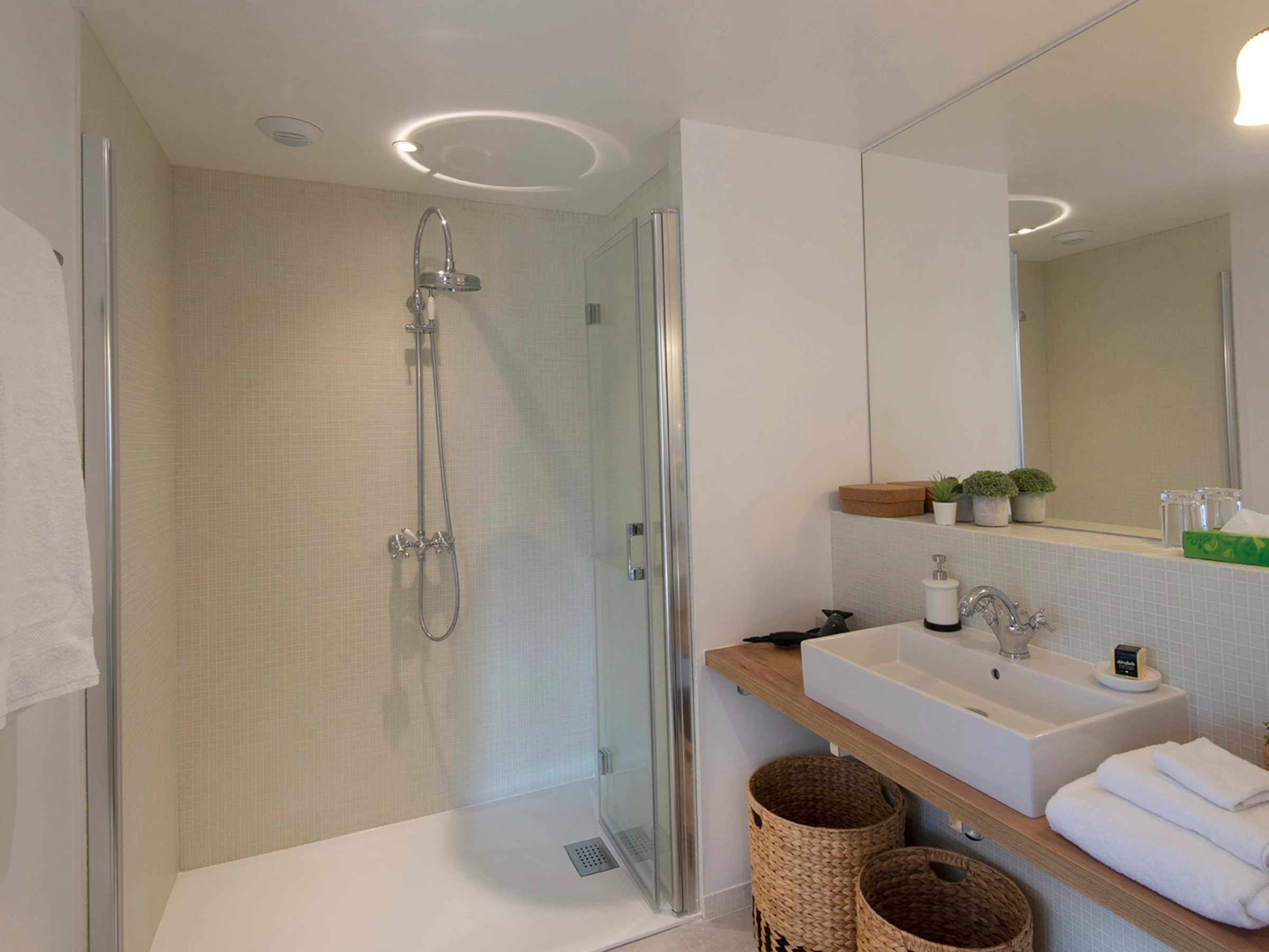 - Ein Badezimmer (6 m²) mit einer italienischen Dusche.