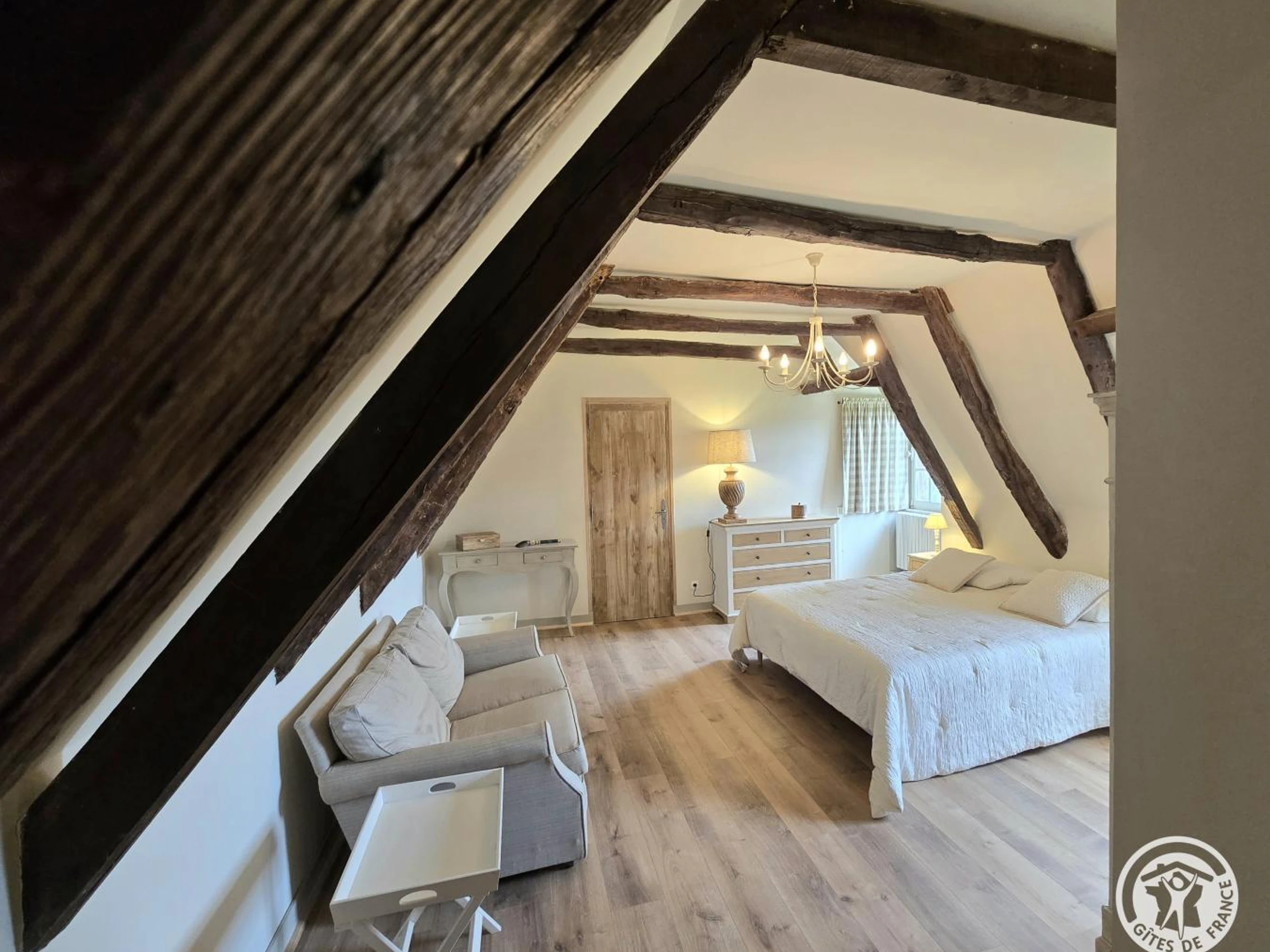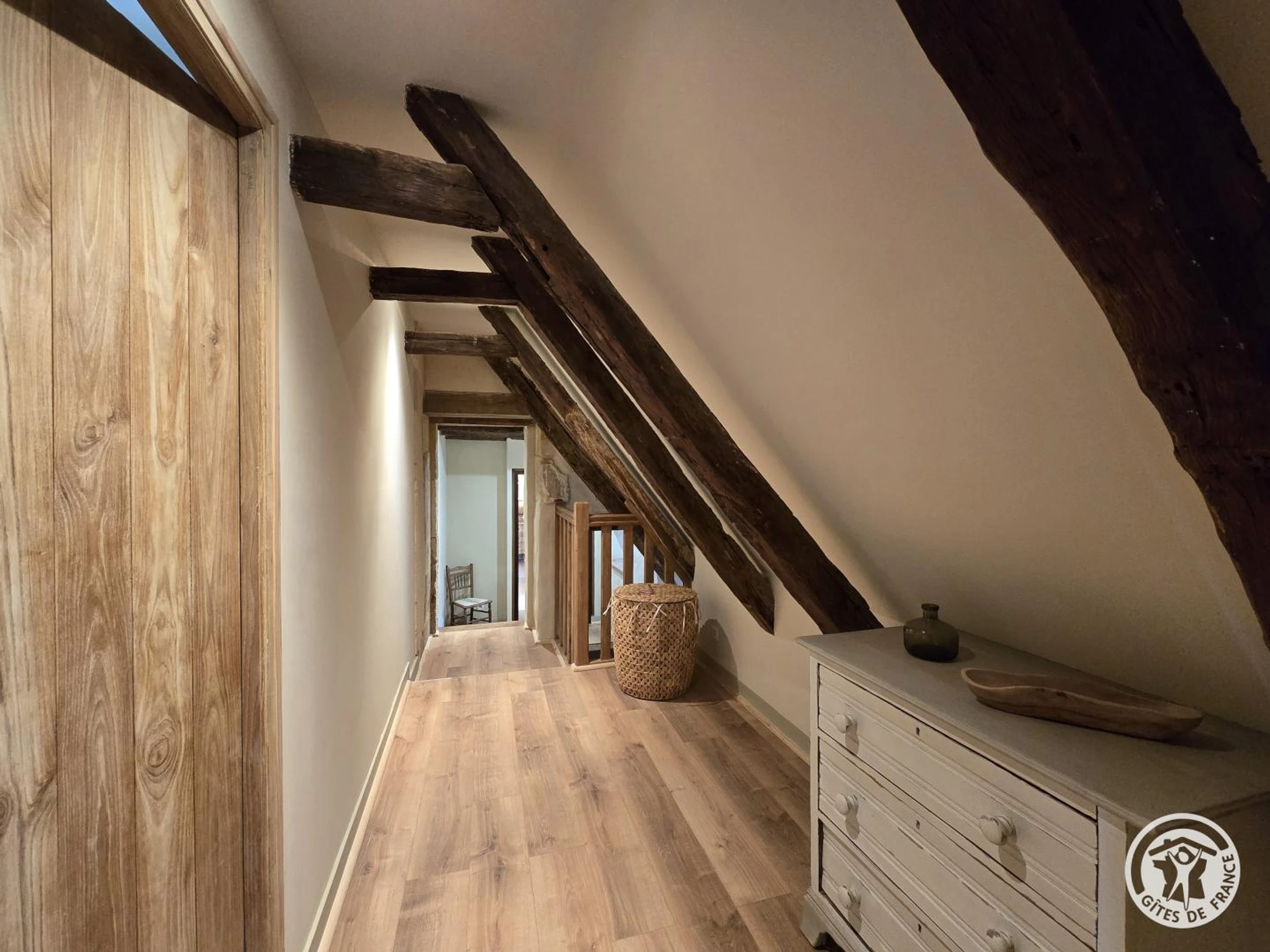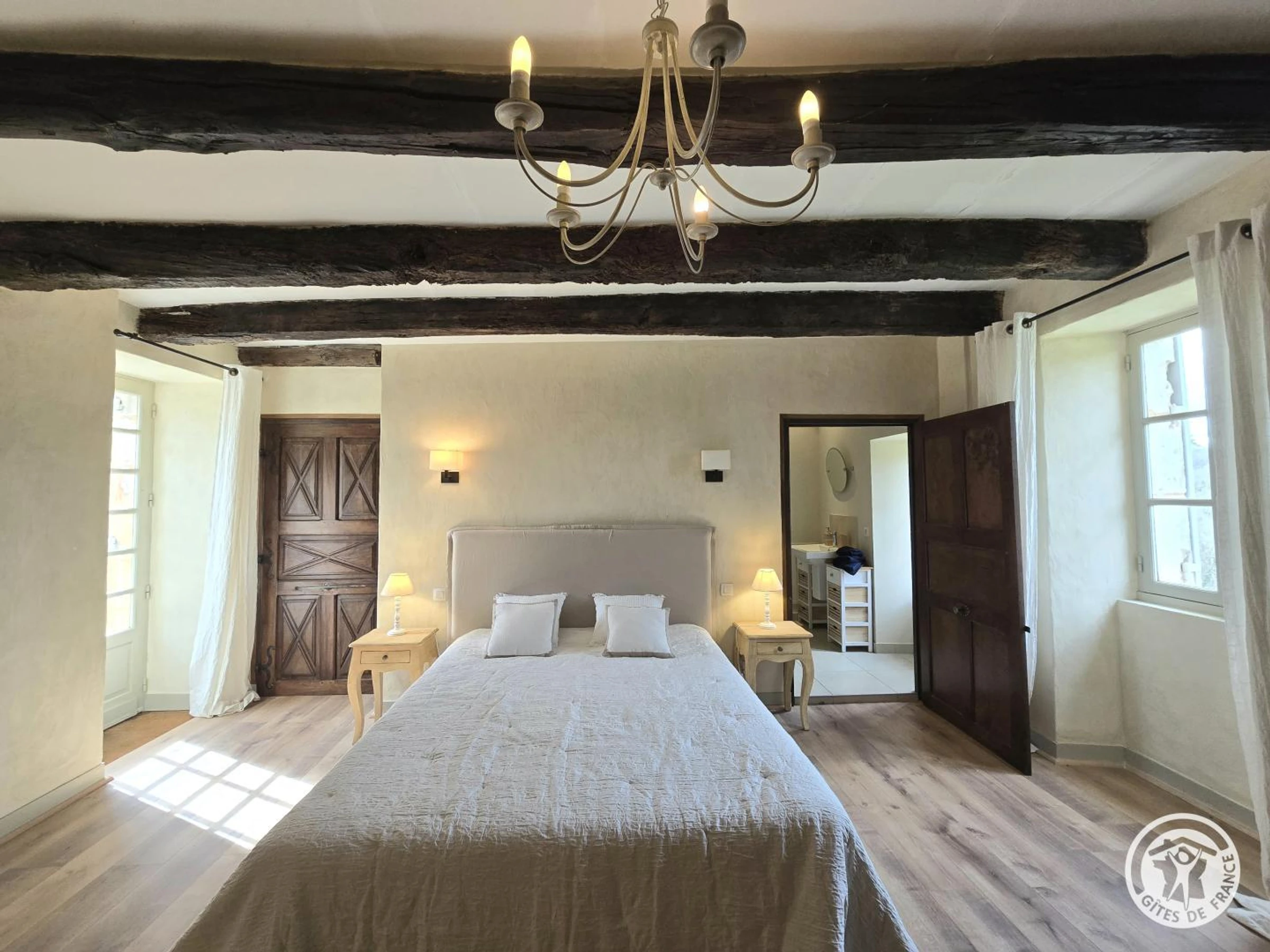 Obergeschoss: Erste Suite mit Queensize-Bett und eigenem Duschbad mit WC. Zweites Dachgeschoss-Schlafzimmer mit Kingsize-Bett und eigenem Duschbad (Dusche und WC). Drittes Schlafzimmer mit Queensize-Bett und eigenem Badezimmer mit Badewanne und WC.