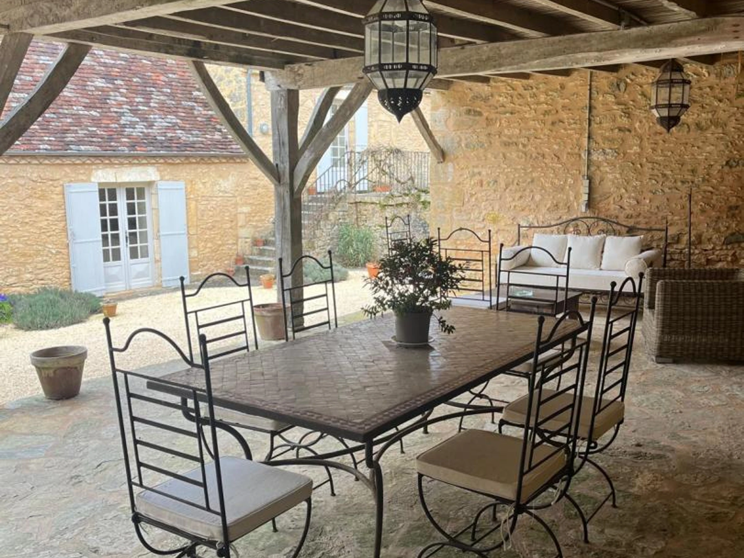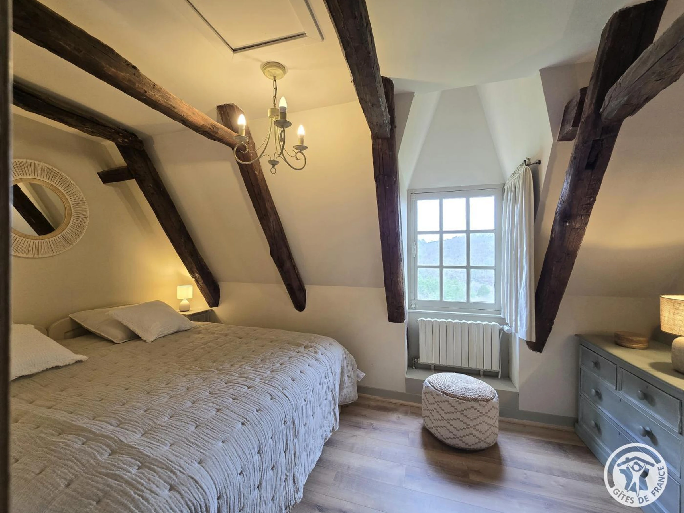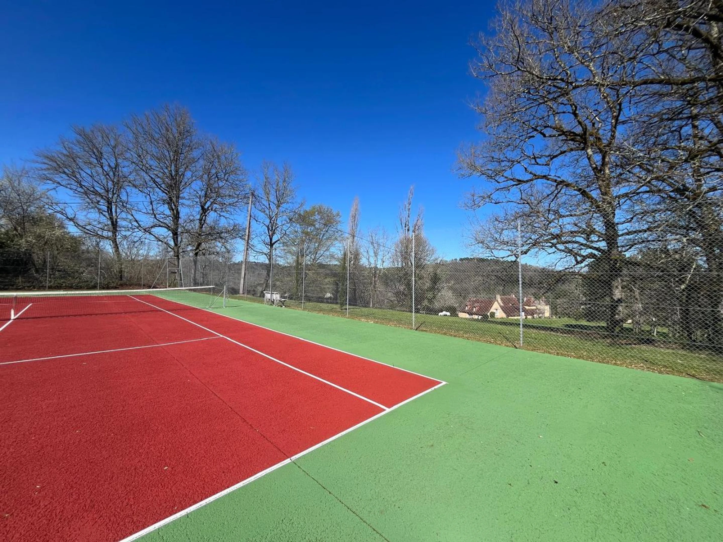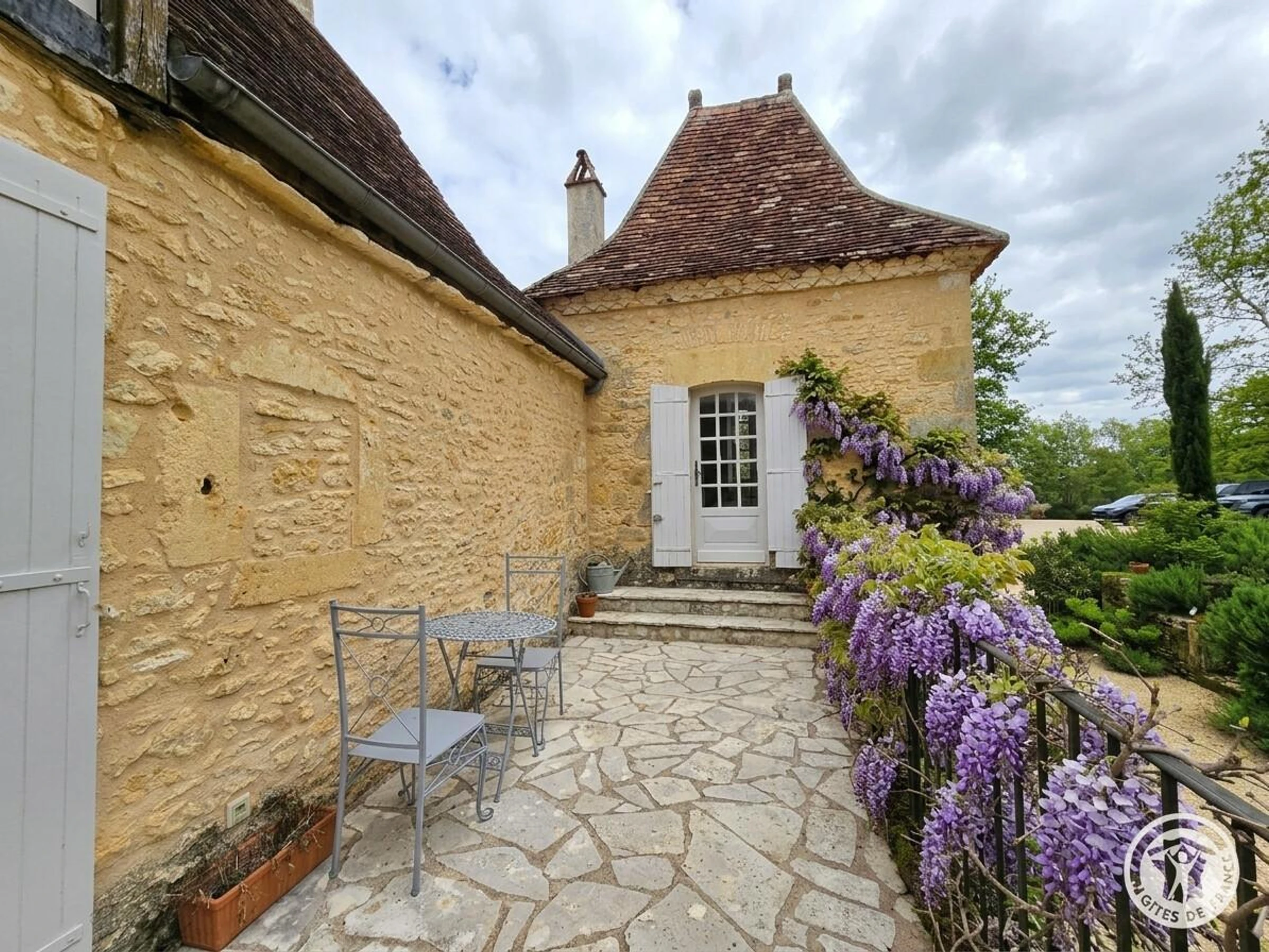 Letztes Schlafzimmer im Turm, nur von außen zugänglich, mit zwei Einzelbetten, die zusammengestellt werden können. Privater 11 x 5 m großer Salzwasserpool mit Alarmanlage, geöffnet vom 1. Mai und beheizt vom 1. Juni bis Ende September. Terrasse mit Gartenmöbeln und Essbereich um den Plancha-Grill (mit Flügeltüren von Küche und Wohnzimmer). Das 20 Hektar große Anwesen bietet eine weitläufige Landschaft mit Panoramablick auf das Périgord Noir. Die Wiesen und Wälder rund um das Anwesen bilden eine traumhafte Kulisse und laden zu Spaziergängen in unberührter Natur ein.