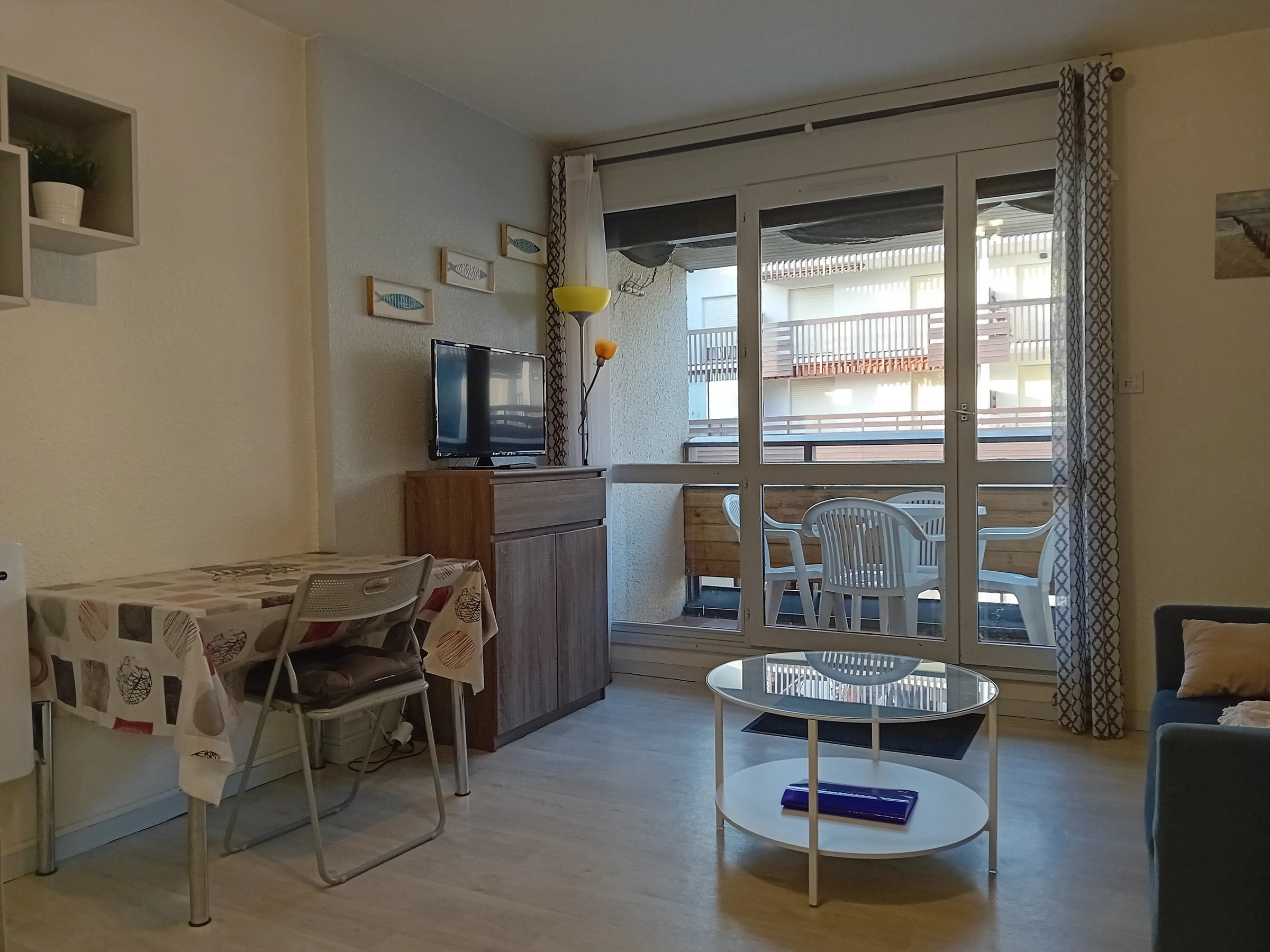 Im Herzen von Seignosse Penon befindet sich dieses funktionale Apartment für 4 Personen im 2. Stock eines Gebäudes ohne Aufzug. Es verfügt über einen Eingangsbereich mit Bad und WC, ein Wohnzimmer mit Balkon und eine Einbauküche. Der Schlafbereich umfasst ein Schlafzimmer mit einem Doppelbett (140 cm) und eine Nische mit zwei Etagenbetten (90 cm).