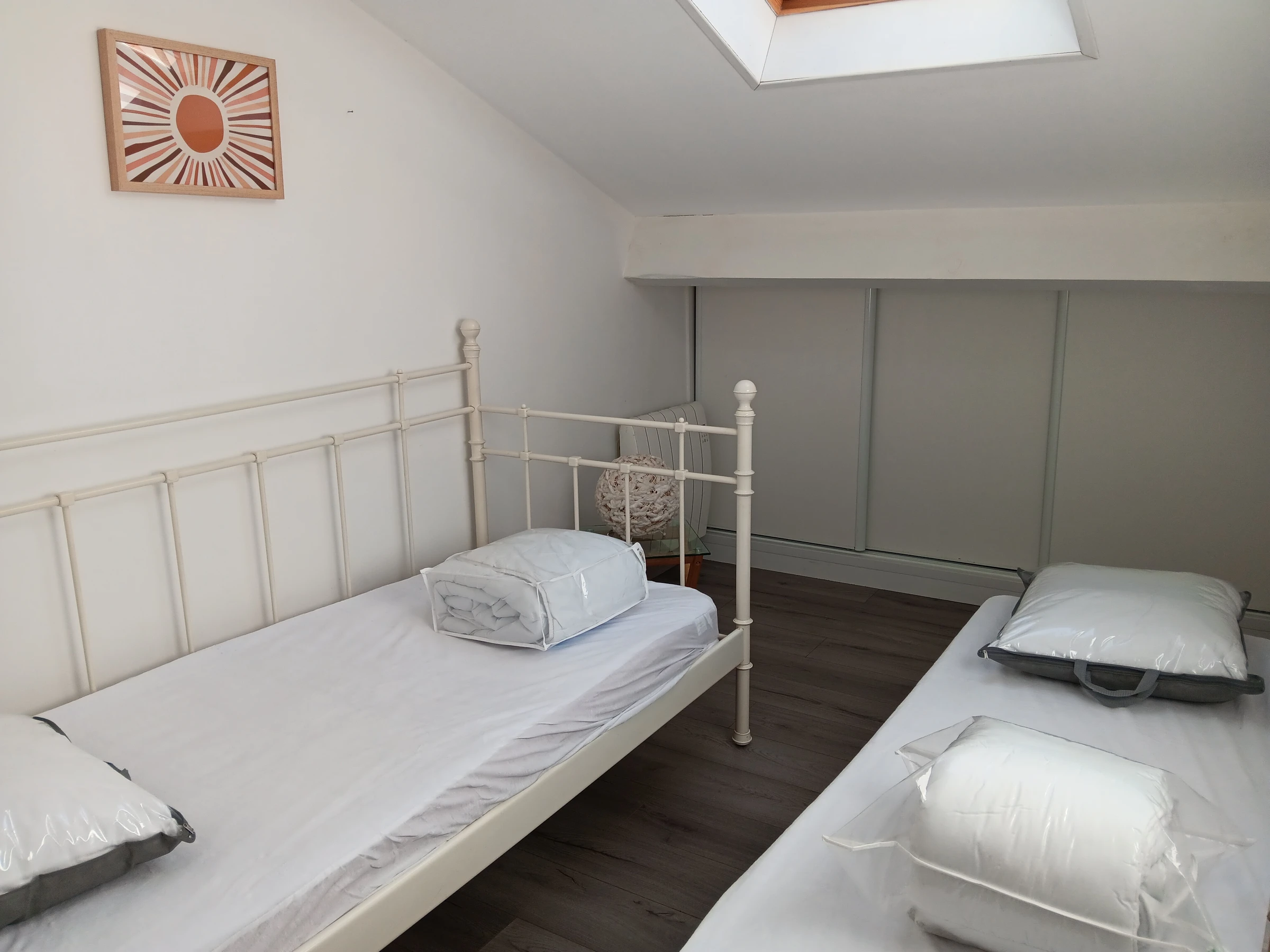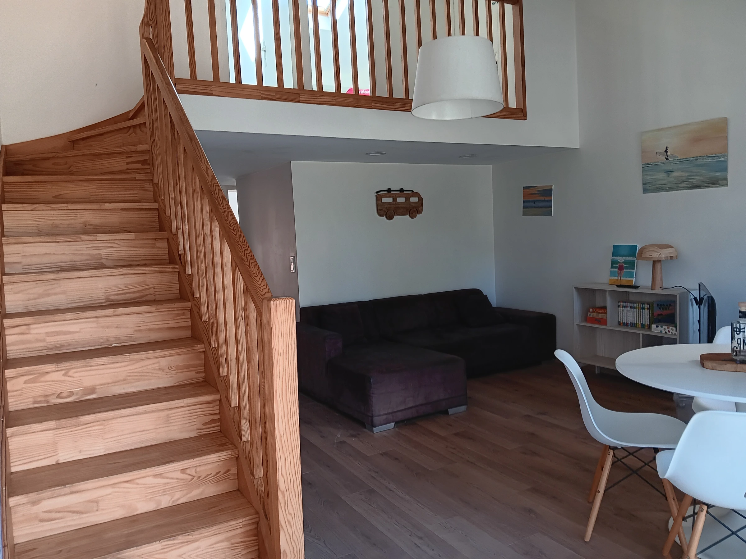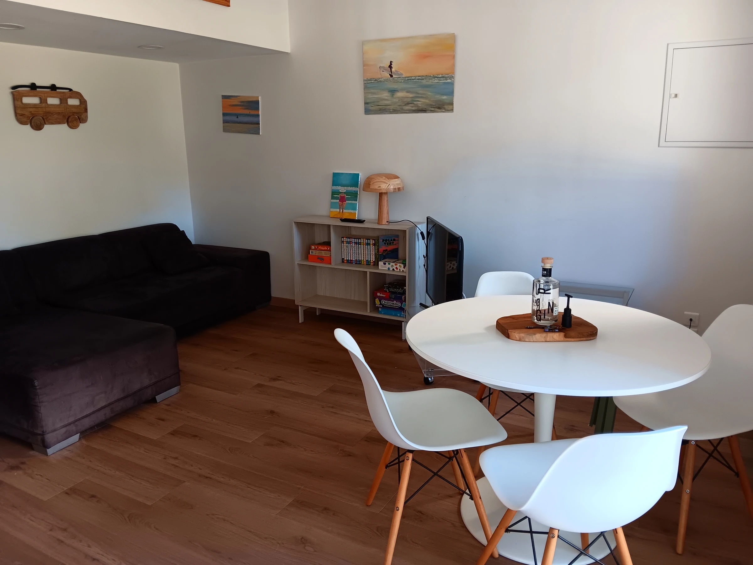 Diese schöne, einstöckige Patio-Villa liegt in Seignosse, zwischen Wald und Meer, in einer ruhigen Wohngegend. Freuen Sie sich auf ein Wohnzimmer mit Zugang zu einer ersten Terrasse und eine funktionale, voll ausgestattete offene Küche mit Zugang zu einer zweiten schönen Terrasse mit Grill. Der Schlafbereich umfasst ein Schlafzimmer mit einem Doppelbett (140 cm), ein Badezimmer, ein separates WC, ein Zwischengeschoss mit einem Schlafzimmer mit einem Doppelbett (160 cm) und einem Schlafzimmer mit zwei Einzelbetten (80 cm).