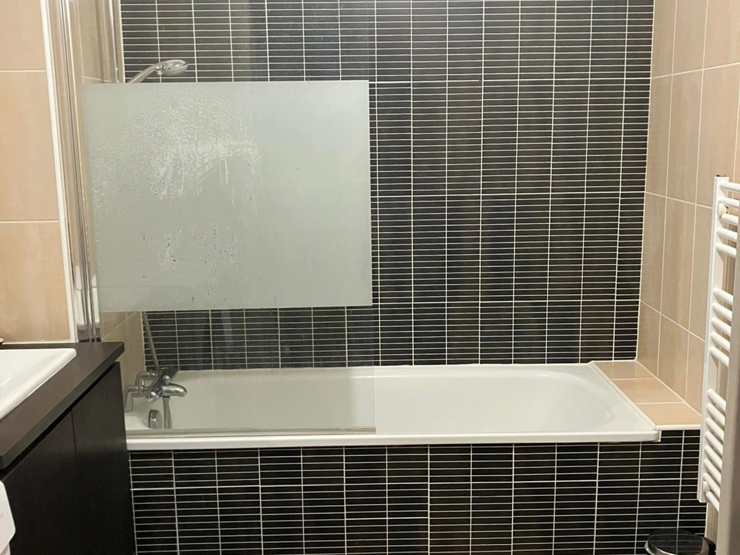 Es gibt ein Badezimmer mit separatem WC.