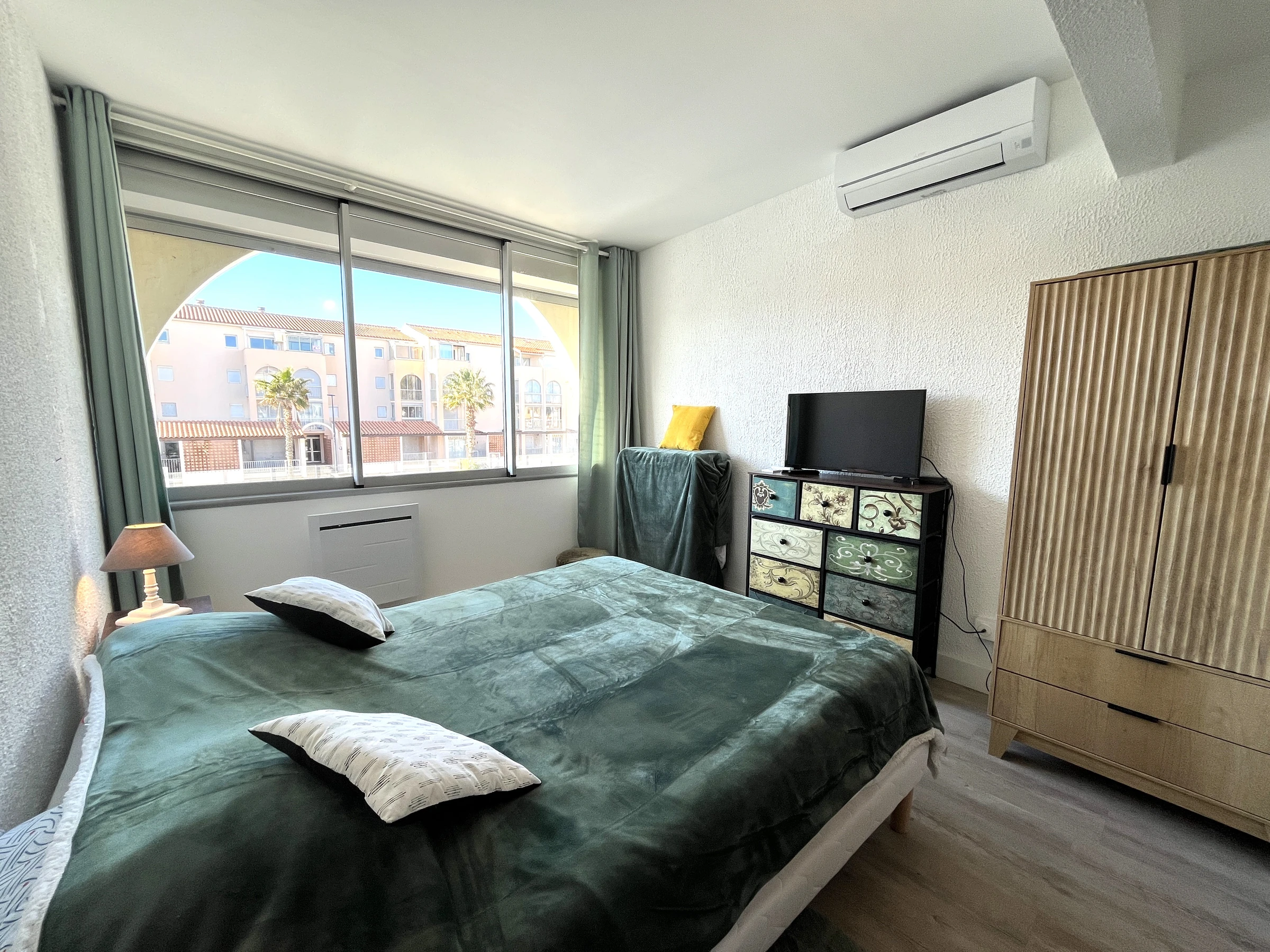 Ferienwohnung in Sète: Charmantes 2-Zimmer-Apartment mit Klimaanlage in einem ruhigen Wohnhaus im 1. Stock. Mit 51 m² Wohnfläche und einer 11 m² großen, verglasten und hellen Loggia bietet Ihnen dieses Apartment einen sehr angenehmen Urlaub. Wohnzimmer mit Sofa, Fernseher und Stauraum; Schlafzimmer in der Loggia mit einem Queensize-Bett (160 cm), Stauraum und Klimaanlage; zweites Schlafzimmer mit zwei ausziehbaren Einzelbetten (80 cm) und Stauraum. Badezimmer (Badewanne, Waschbecken), separates WC. Duschbad mit Dusche, Waschbecken und Waschmaschine. Die Küche ist komplett ausgestattet mit Kühl-/Gefrierschrank, Cerankochfeld, Mikrowelle, Backofen und Geschirrspüler. Privater Parkplatz Nr. 65. Haustiere sind nicht erlaubt. Spätere Anreise möglich: 120 € (bitte kontaktieren Sie uns für Details). Optionale Leistungen (je nach Verfügbarkeit): Bettwäscheverleih (15 € pro Bett), Handtuchverleih (12 € pro Person), Endreinigung (ohne Küche): 120 €, Mini-WLAN-Router (39 €/Woche). Nicht inbegriffen: Toilettenpapier, Reinigungsmittel, Hygieneartikel.