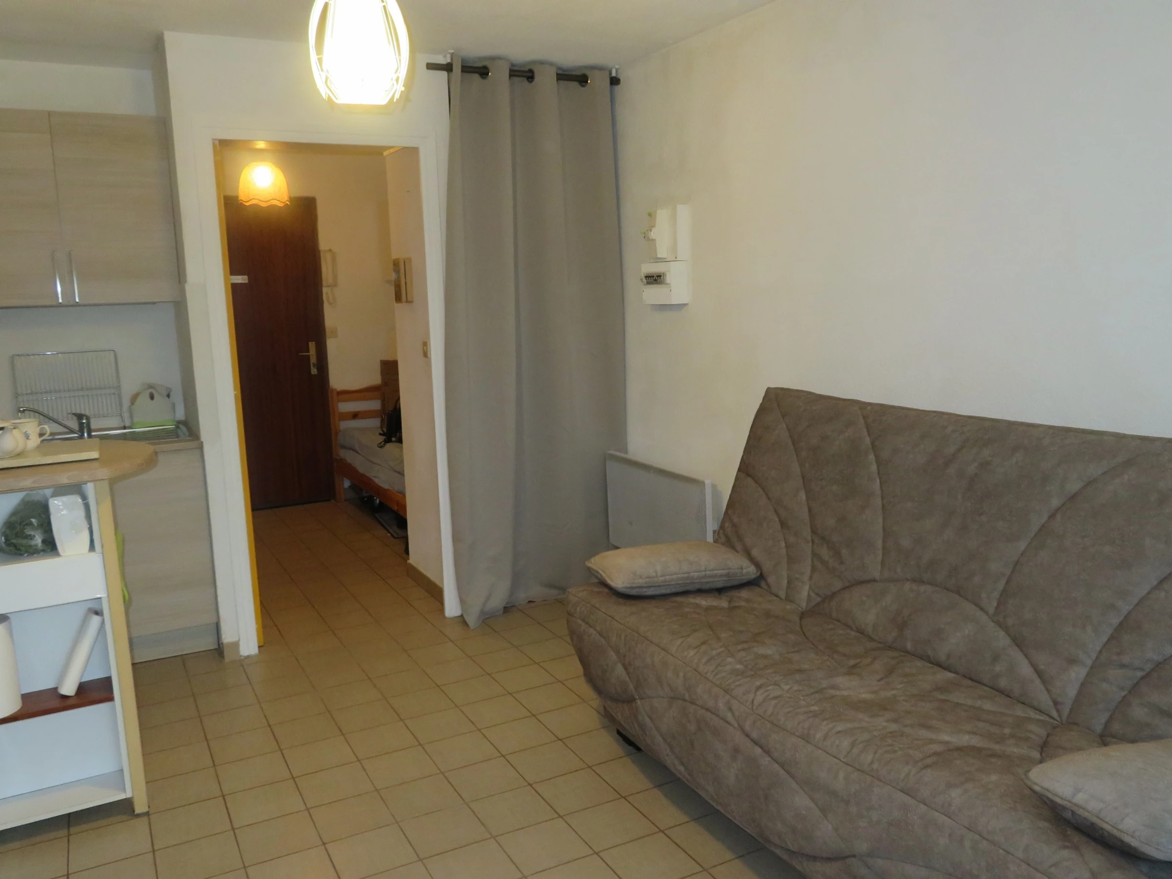 Ferienvermietung in Sète: Schöne Studio-Hütte von ca. 19 m2 Wohnfläche mit einer verglasten Loggia von 5 m2. Dieses Apartment bietet Aussicht auf den Mont Saint-Clair. Es befindet sich im ersten Stock mit Aufzug. Die Strände sind 450 m entfernt und Geschäfte in der Nähe. Es ist nach Osten ausgerichtet.