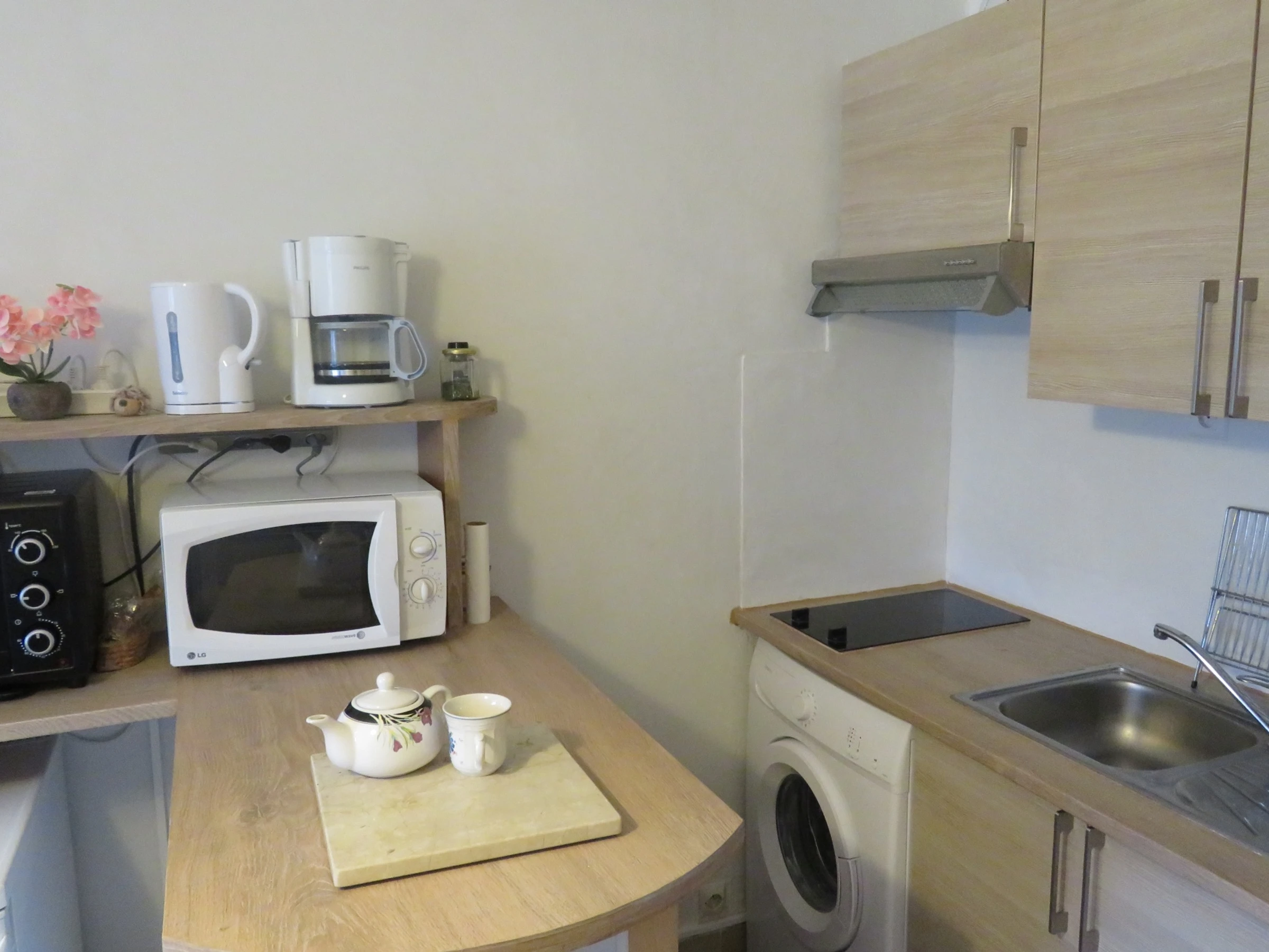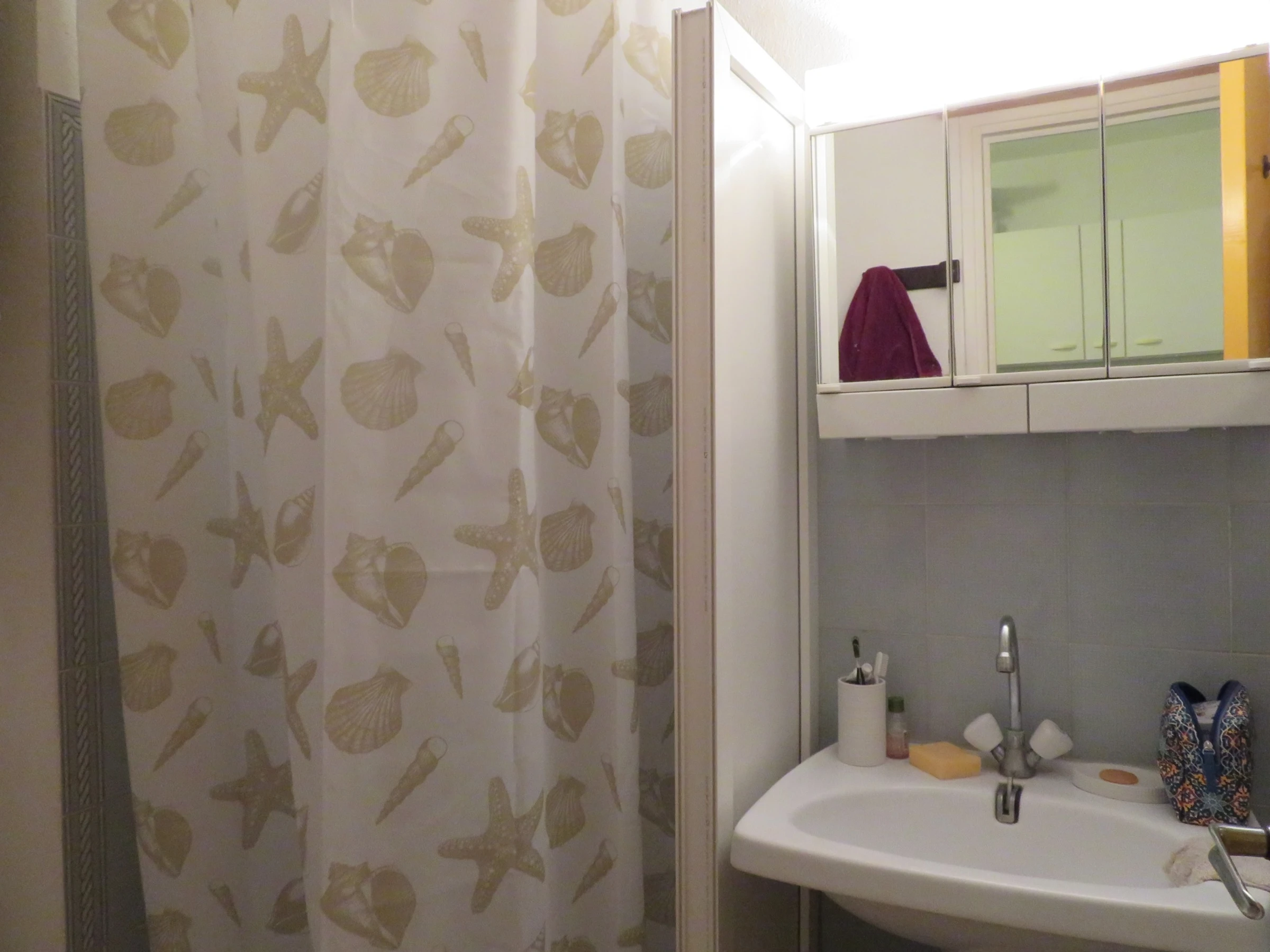 Das Wohnzimmer besteht aus einem Küchenbereich (mit zwei Elektroherden, Kühlschrank, Gefrierschrank, Mikrowelle, Mini-Backofen, Waschmaschine) sowie einem Doppelschlafsofa und einem Fernseher. Ein Kabinenbereich am Eingang mit einem 90 cm breiten Einzelbett. Das Badezimmer (Dusche, Waschbecken) ist mit dem WC verbunden. Zur Wohnung gehört ein privater Parkplatz mit der Nummer 15. Haustiere nicht erlaubt. Spätere Anreise möglich: 50 € (kontaktieren Sie uns für Details.) Registrierungsnummer [hidden]
