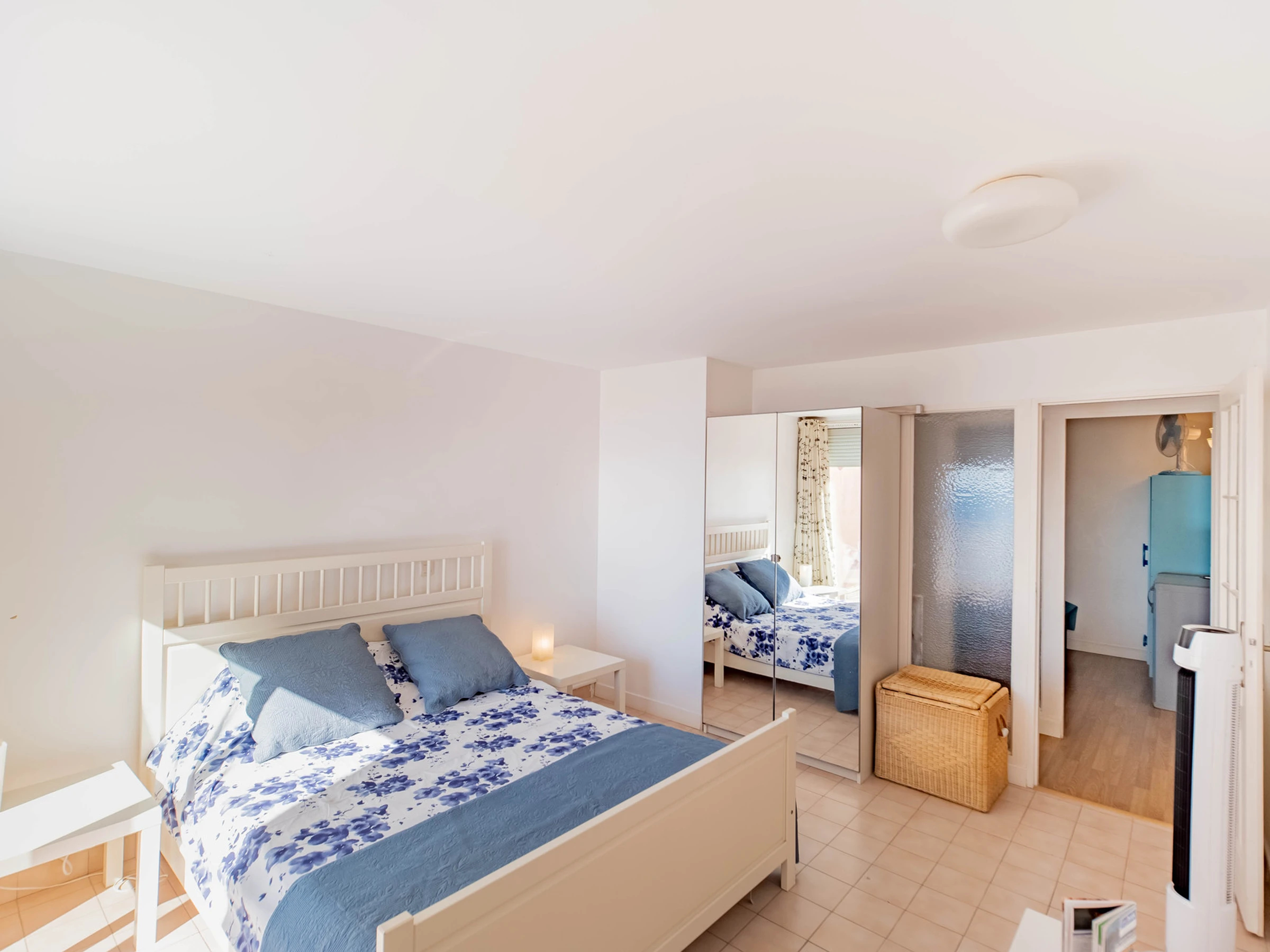 Im Obergeschoss ein Schlafzimmer mit 2 Betten in 90, und ein Elternzimmer mit Blick auf die nach Süden ausgerichtete Terrasse mit Blick auf das Meer.