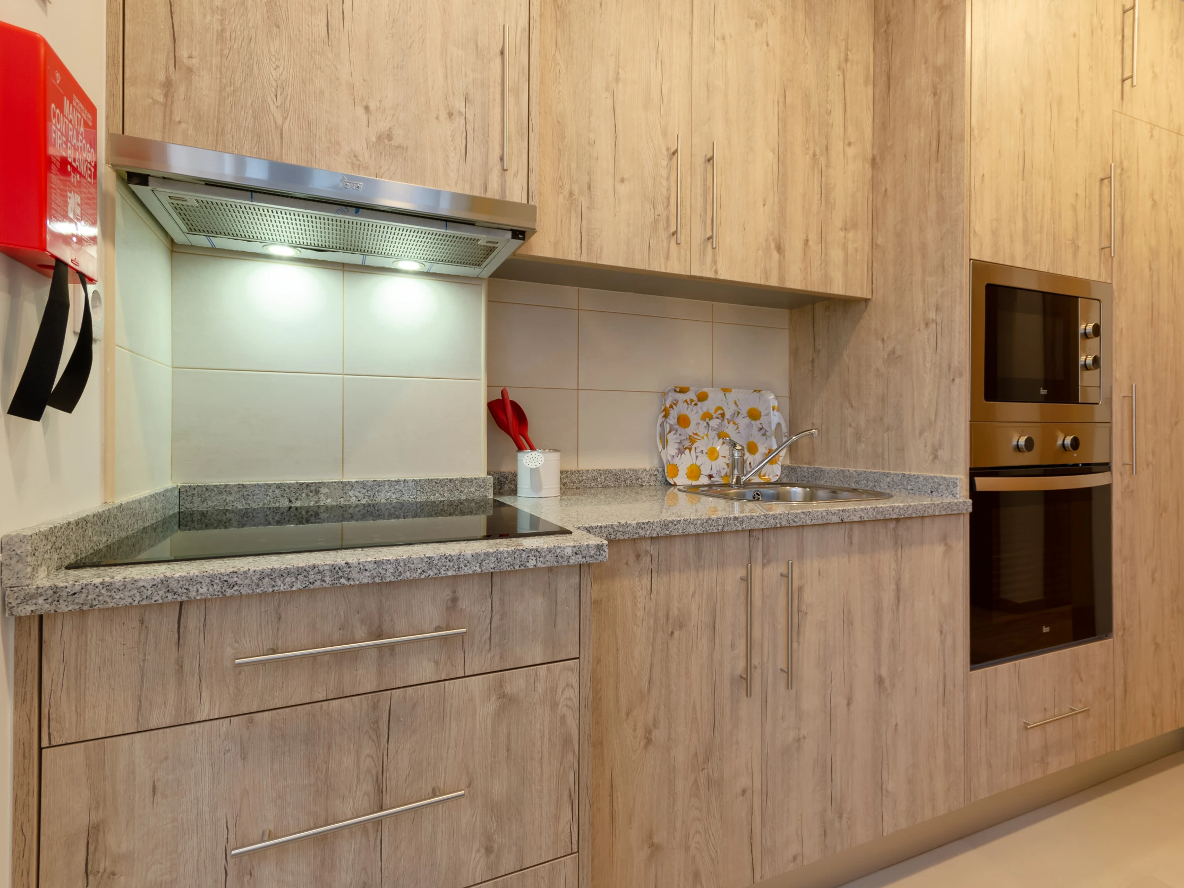 Dieses separate küche, mit induktions-kochfeld, ist ausgestattet in kühlschrank, mikrowelle, backofen, gefrierschrank, spülmaschine, geschirr/besteck, kochutensilien, kaffeemaschine, toaster und wasserkocher.