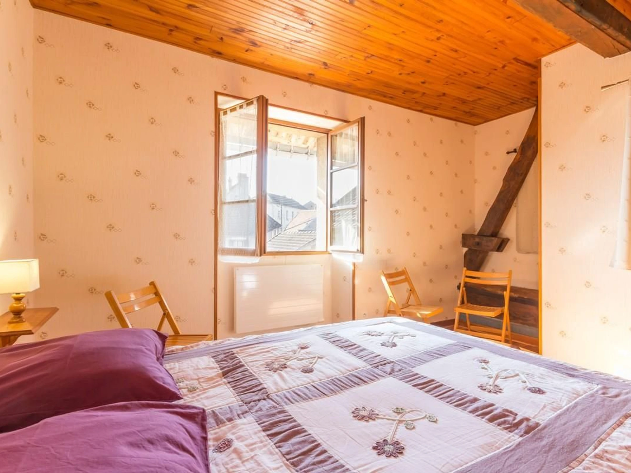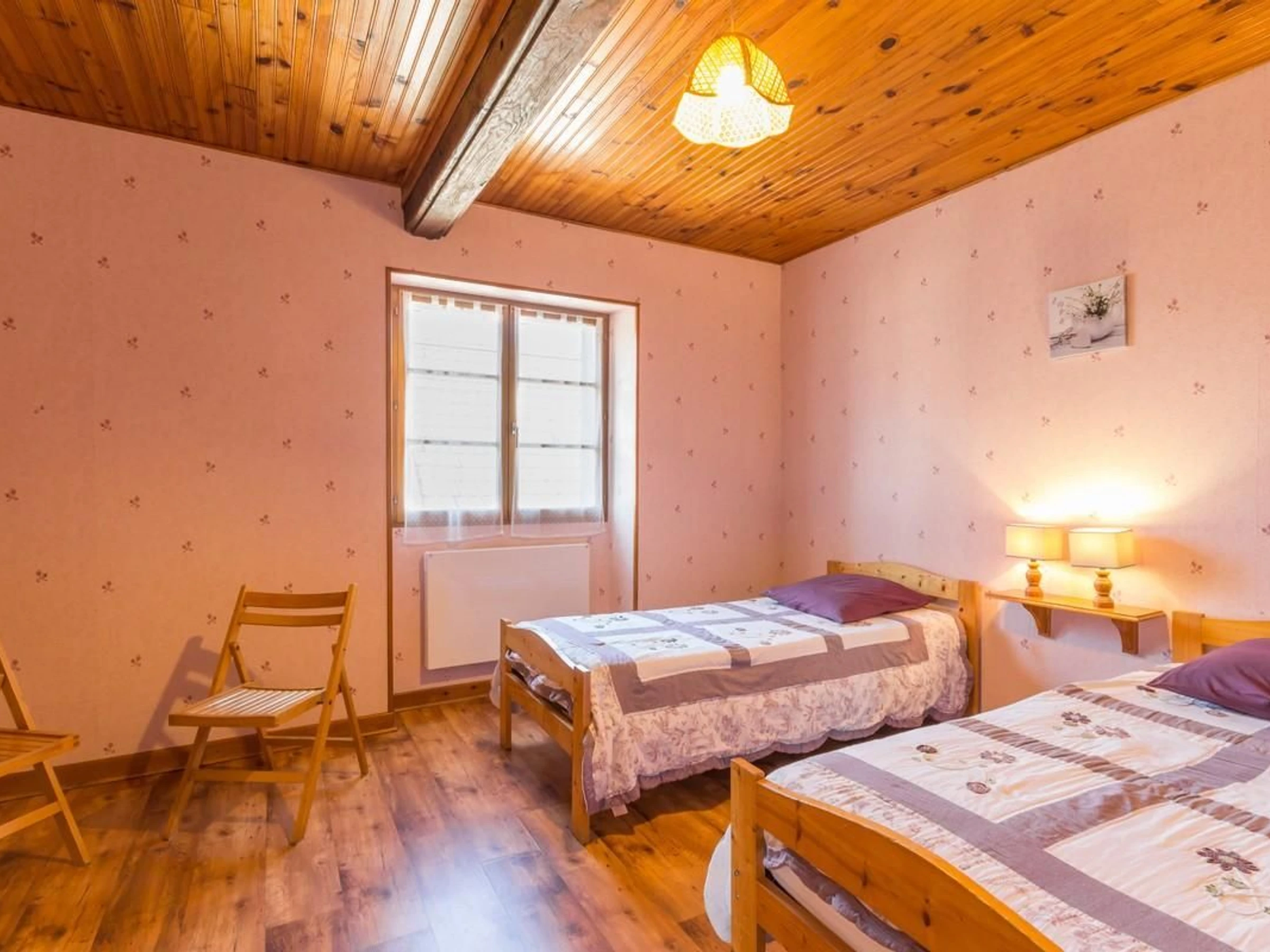 Im Regionalen Naturpark Morvan befindet sich ein freistehendes Haus auf zwei Ebenen: Einbauküche, Wohnzimmer und ein zweiter Aufenthaltsbereich auf einer Galerie. Fünf Schlafzimmer, zwei davon im Erdgeschoss, eines mit einem Doppelbett (140 x 190 cm) und das andere mit zwei Einzelbetten (90 x 190 cm).