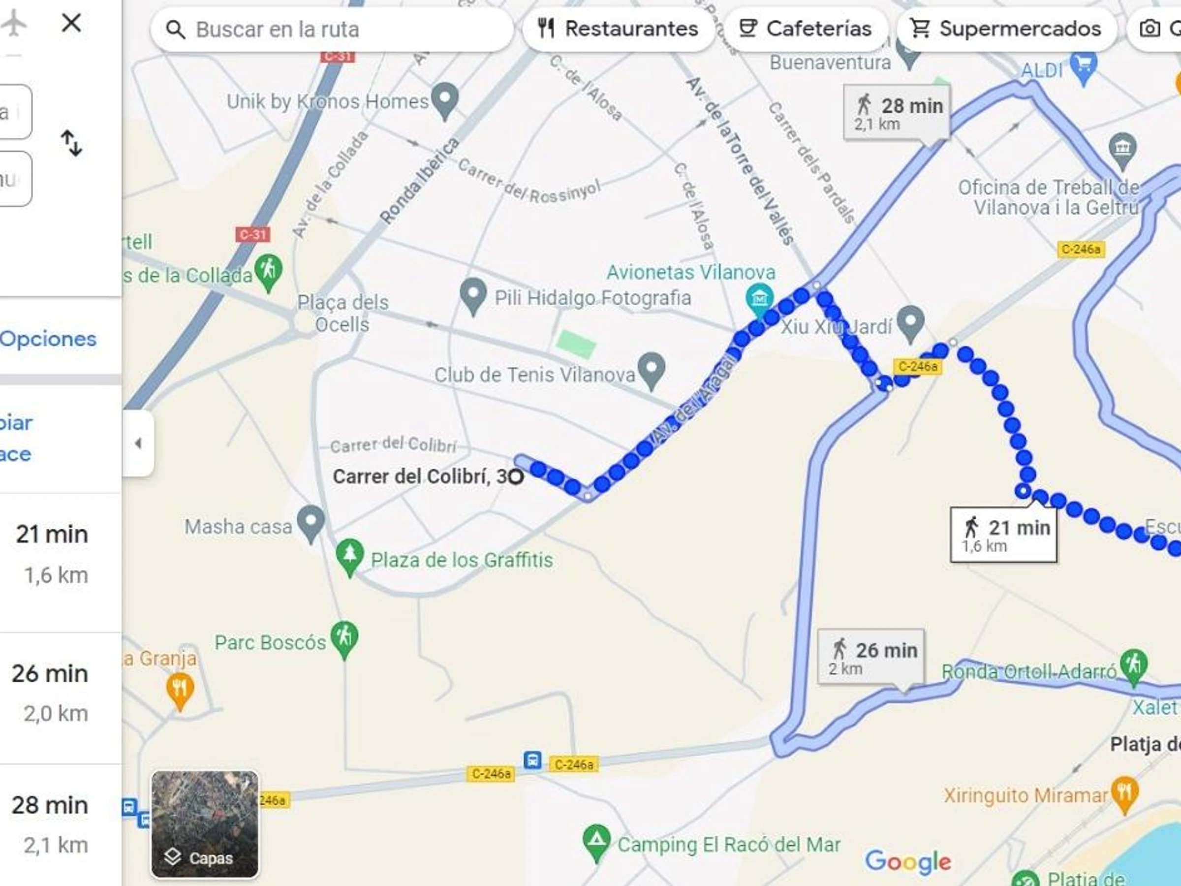 de Vilanova i la Geltru und 4 km (5 Minuten) entfernt.