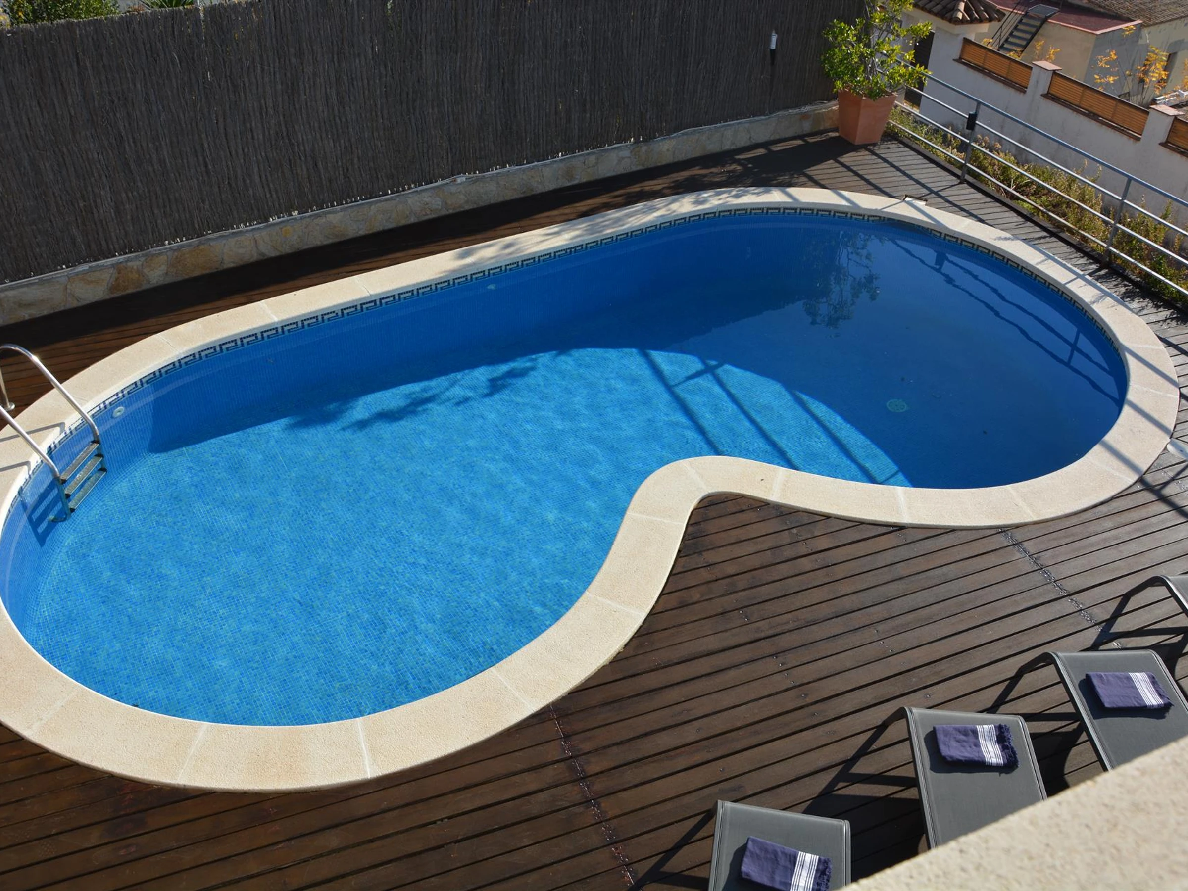 Privater Pool (10 m x 4 m) mit Sonnenterrasse und Liegestühlen