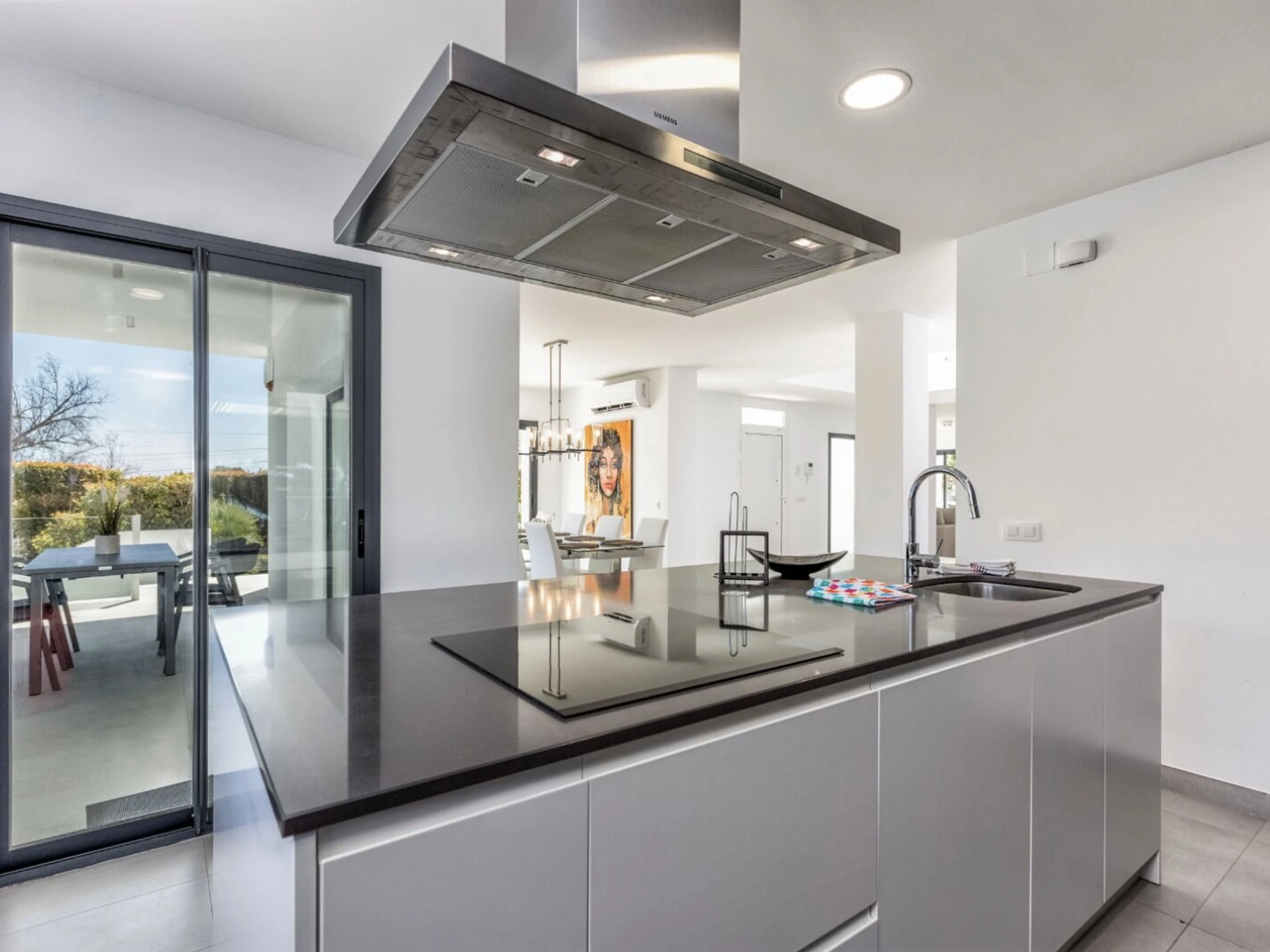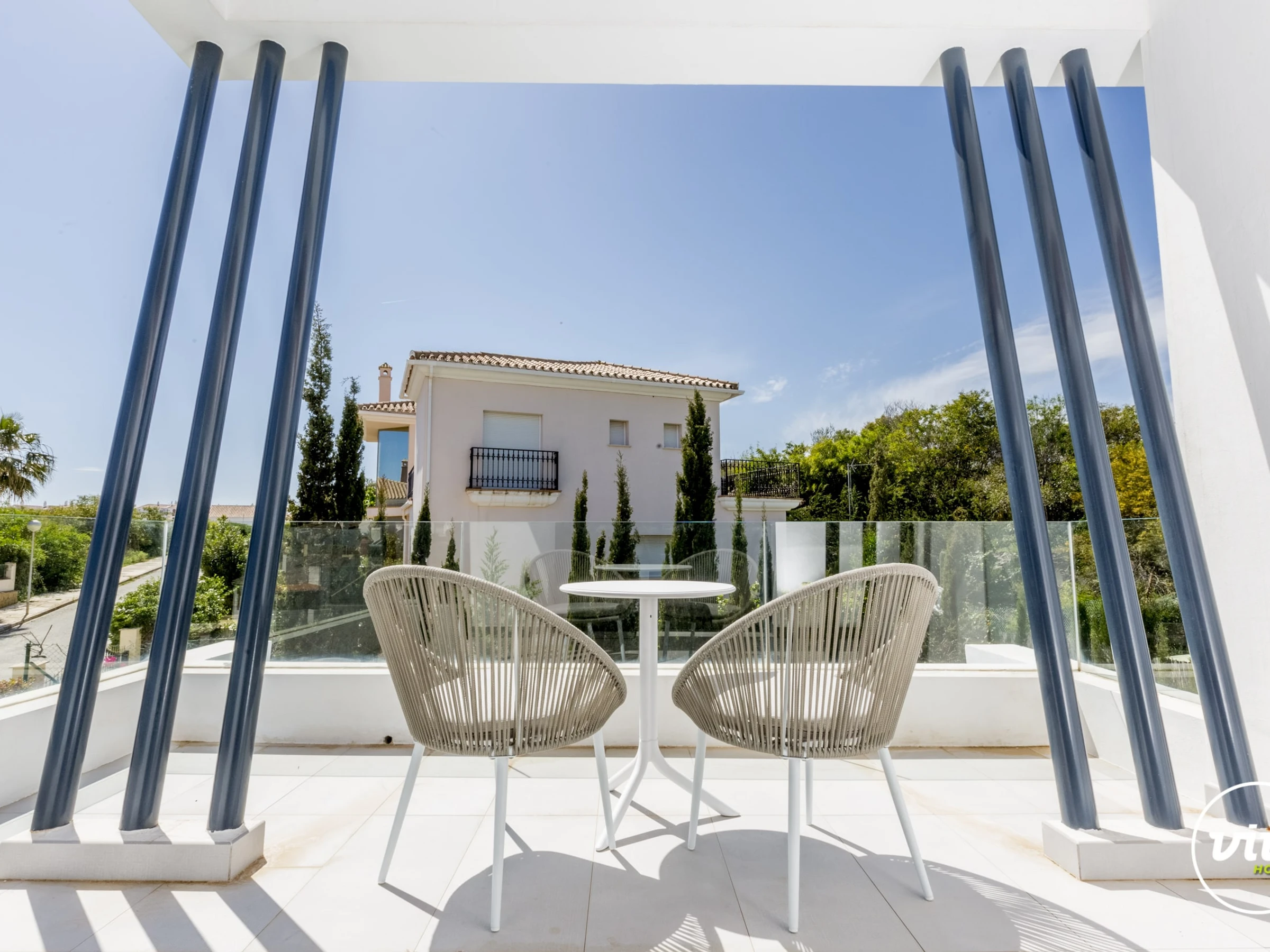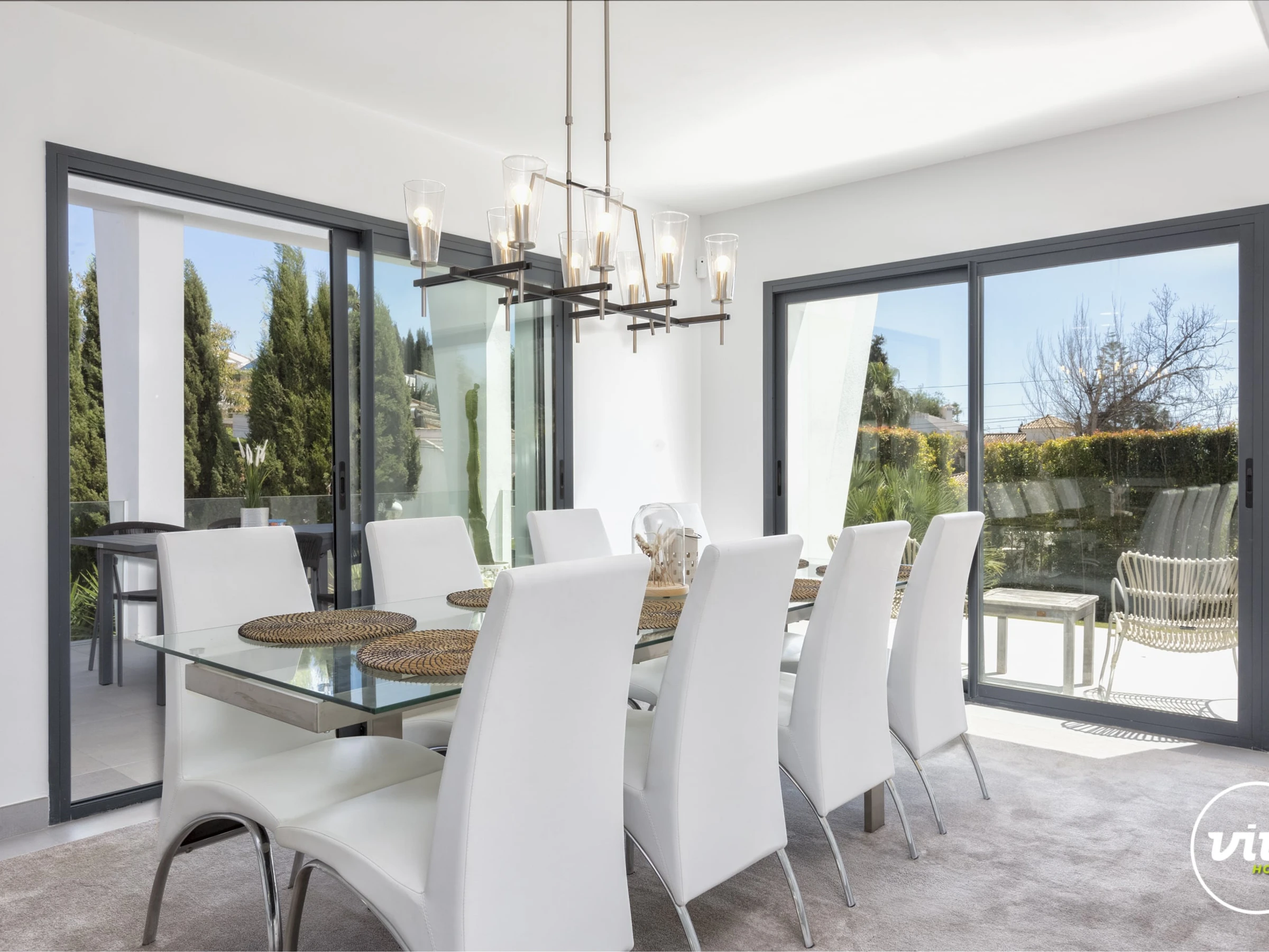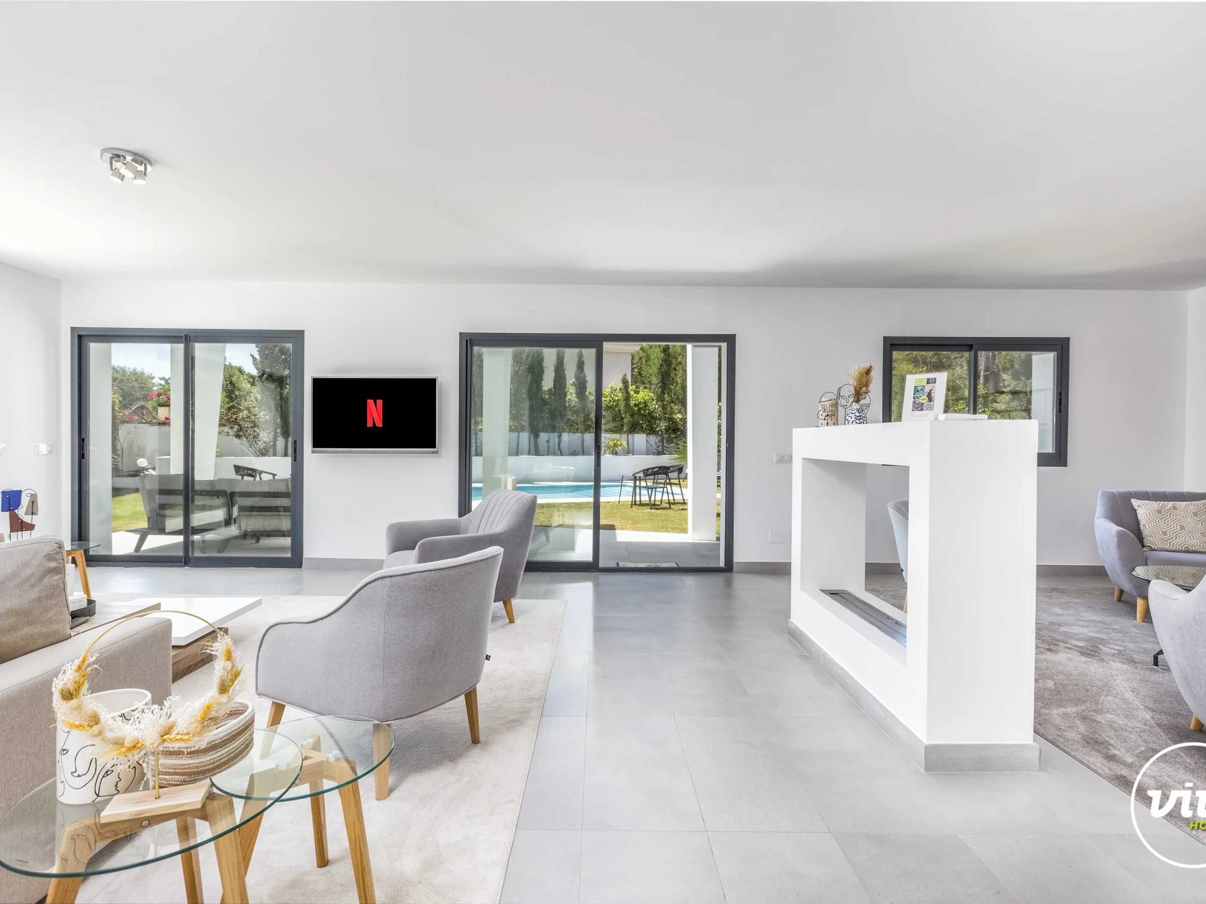 Die Unterkunft verfügt über garten, gartenmöbel, umzäuntes grundstück, 30 m² terrasse, waschmaschine, trockner, bügeleisen/-brett, safe, internet (WLAN), haartrockner, balkon, alarm, zentralheizung, klimaanlage, swimming-pool privater pool, klimatisierter pool privater pool, garage und parkplatz in auf dem grundstück, 1 Fernseher.