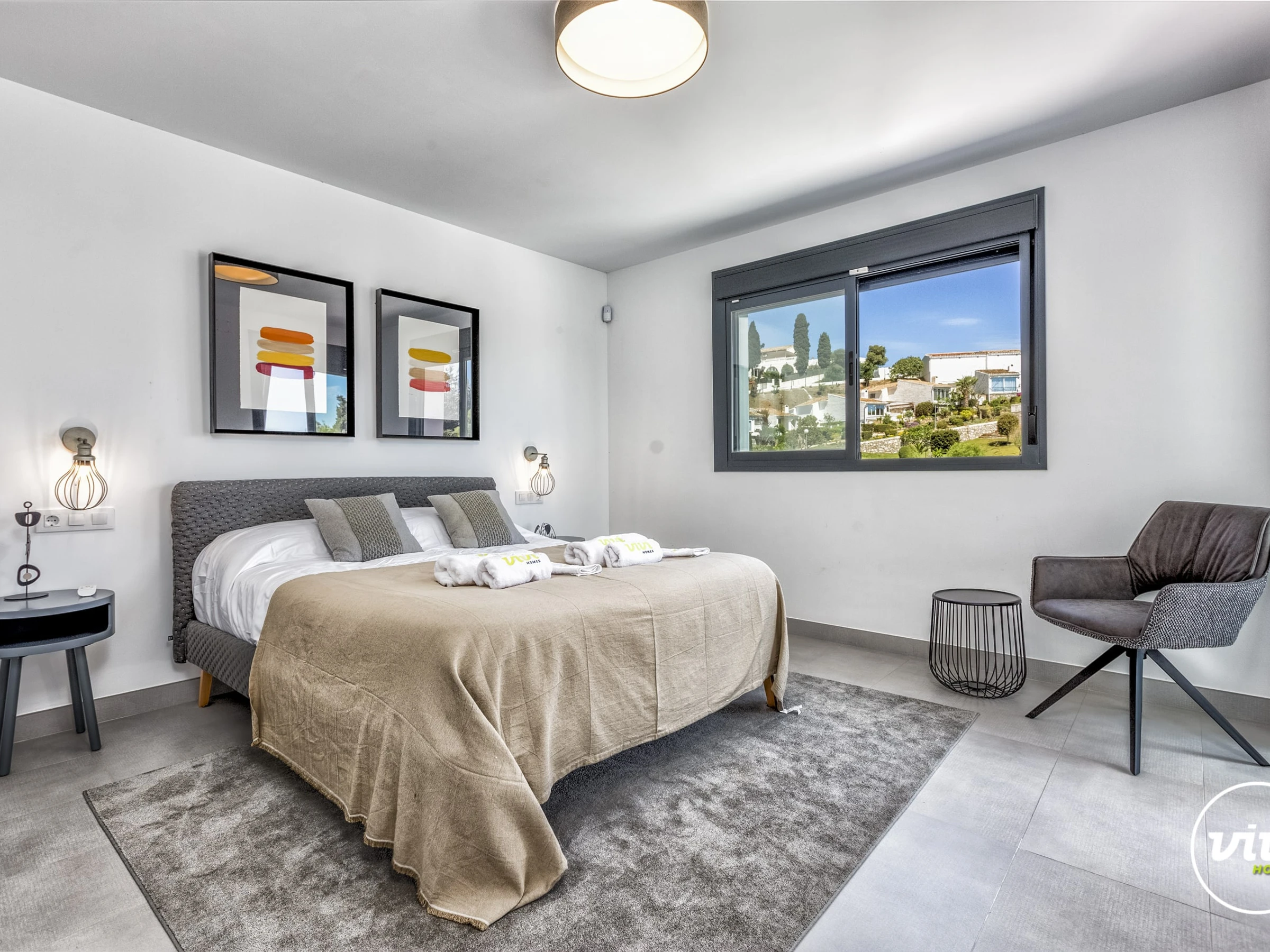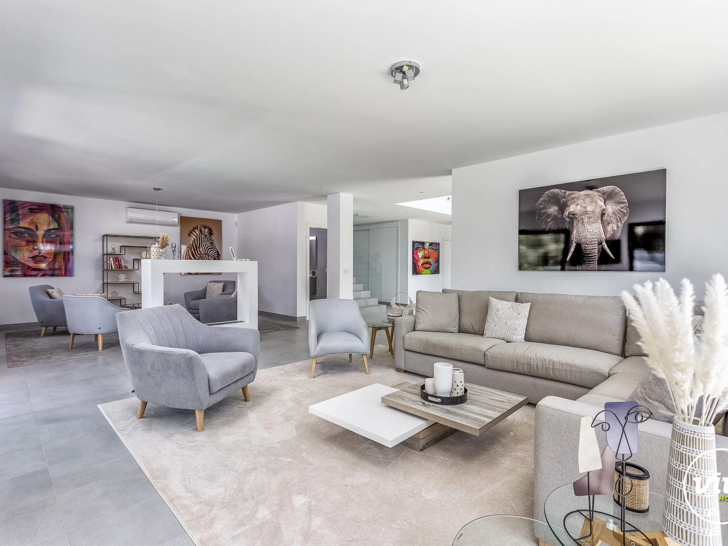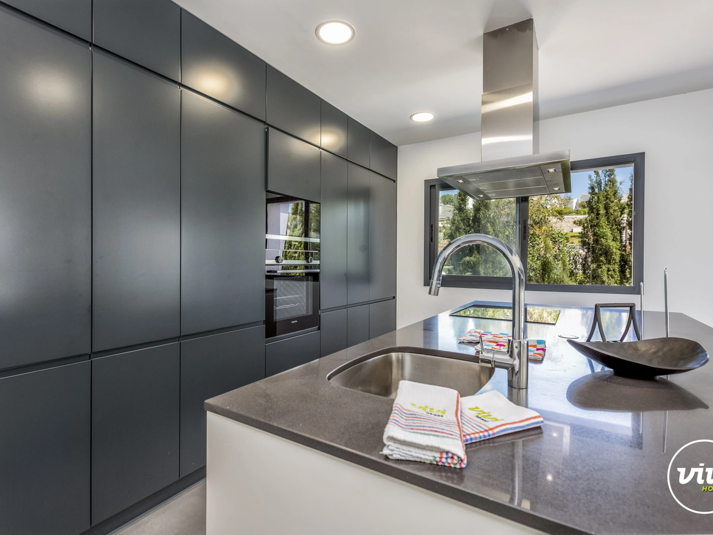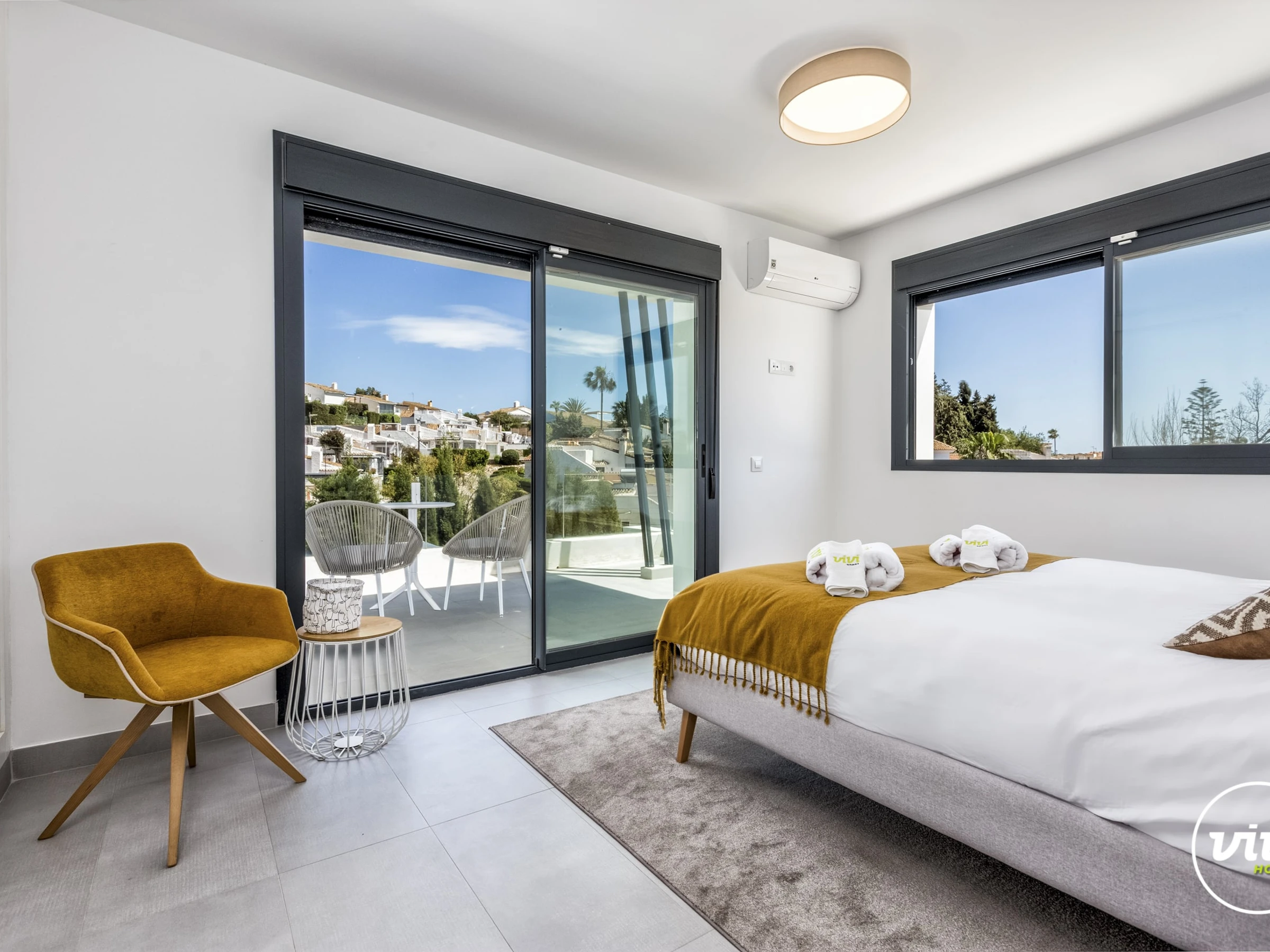 Die Unterkunft verfügt über garten, gartenmöbel, umzäuntes grundstück, 30 m² terrasse, waschmaschine, trockner, bügeleisen/-brett, safe, internet (WLAN), haartrockner, balkon, alarm, zentralheizung, klimaanlage, swimming-pool privater pool, klimatisierter pool privater pool, garage und parkplatz in auf dem grundstück, 1 Fernseher.