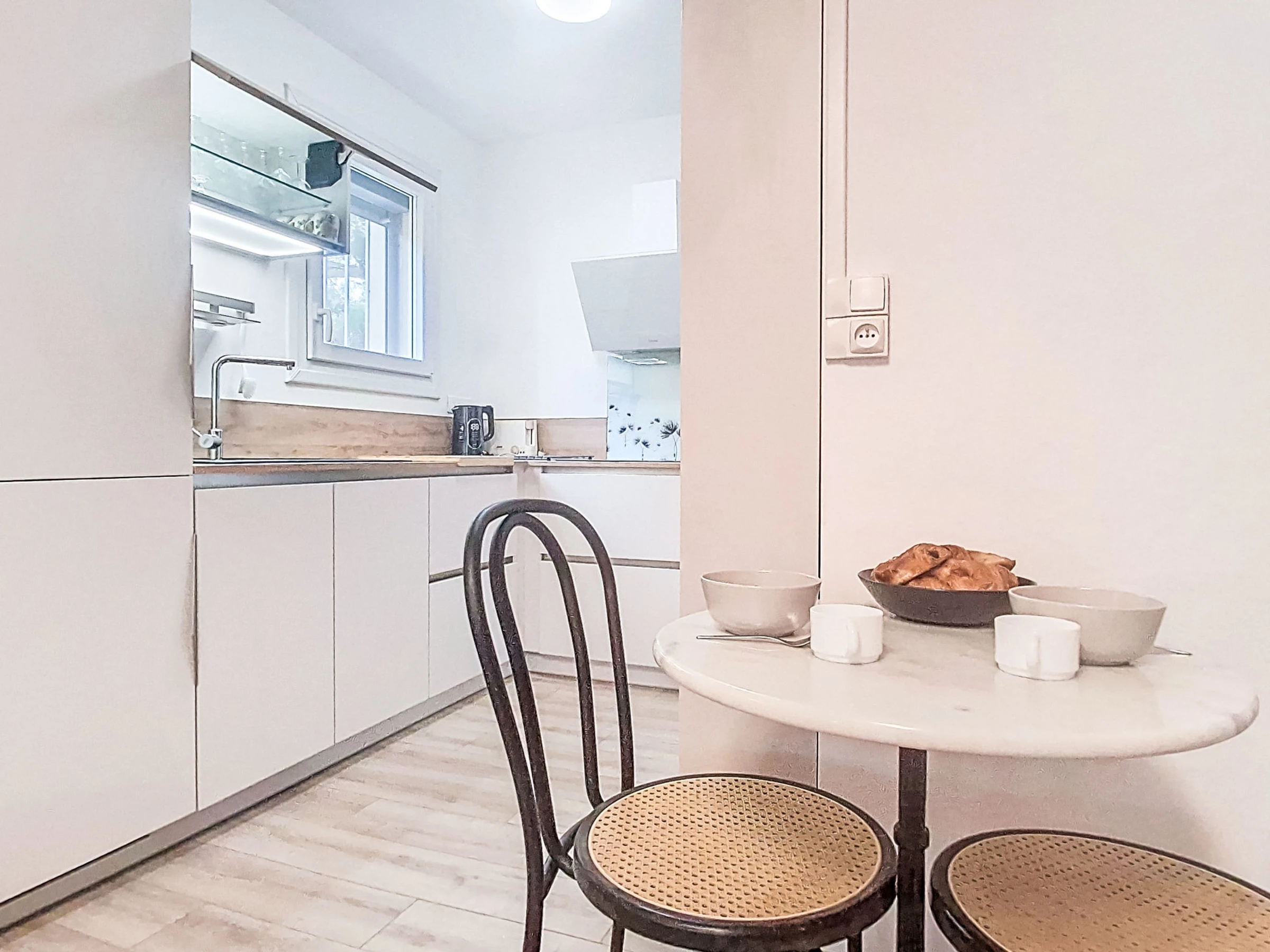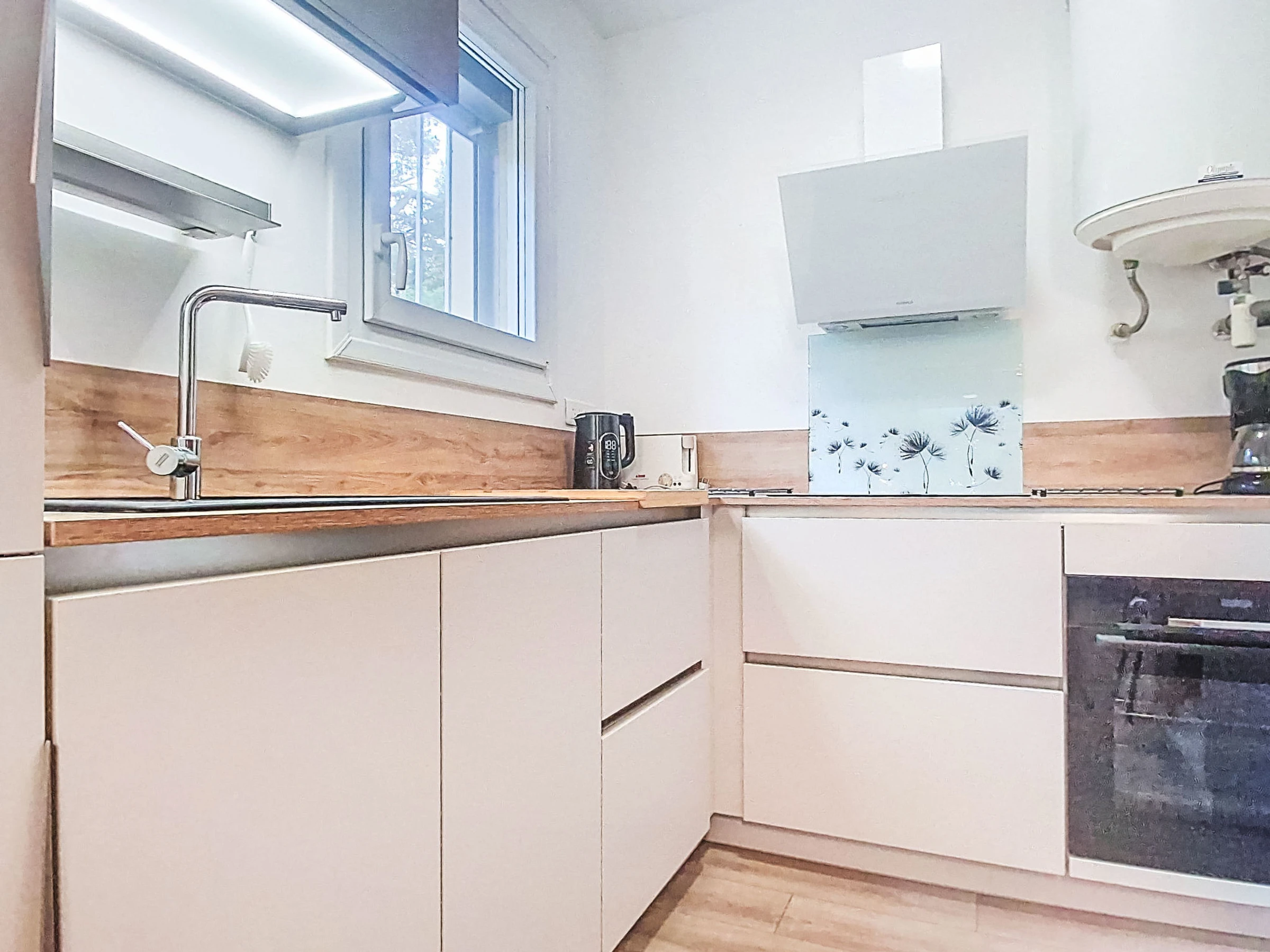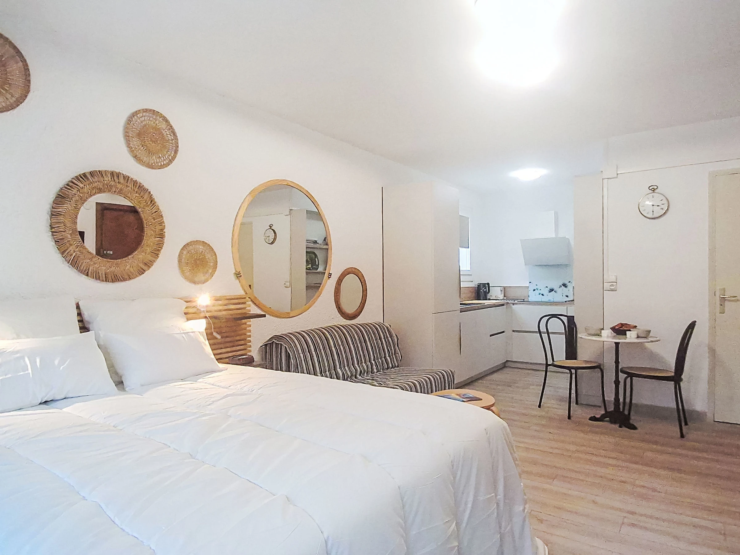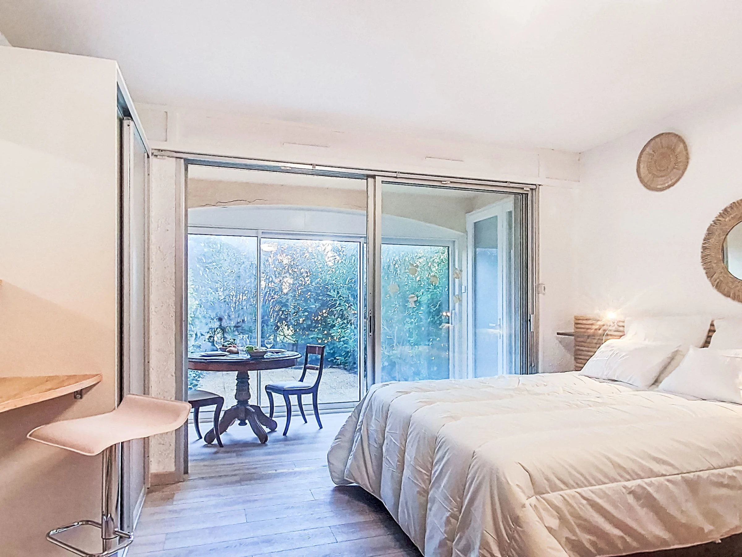 "Les trinquettes", 1-Zimmer-Wohnung 30 m2, im Erdgeschoss. Geräumig, renoviert im Jahre 2025: Wohn-/Esszimmer mit 1 franz. Bett (160 cm, Länge 200 cm), TV und Klimaanlage. Ausgang zur Terrasse, zum Gartensitzplatz. Offene Küche (3 Kochplatten, Backofen, Geschirrspüler, Toaster, Wasserkocher, Mikrowelle, Tiefkühler, elektrische Kaffeemaschine). Dusche/WC. Terrasse 10 m2, überdacht, Ostlage und Südlage. Terrassenmöbel. Zur Verfügung: Waschmaschine. Parkplatz Nr. 15 (überdacht), Höhe 200 cm, Breite 220 cm. Bitte beachten: TV nur FR. Rauchmelder, kein Fahrstuhl. Inserat einer Privatperson nach Artikel 155, IV, CGI.