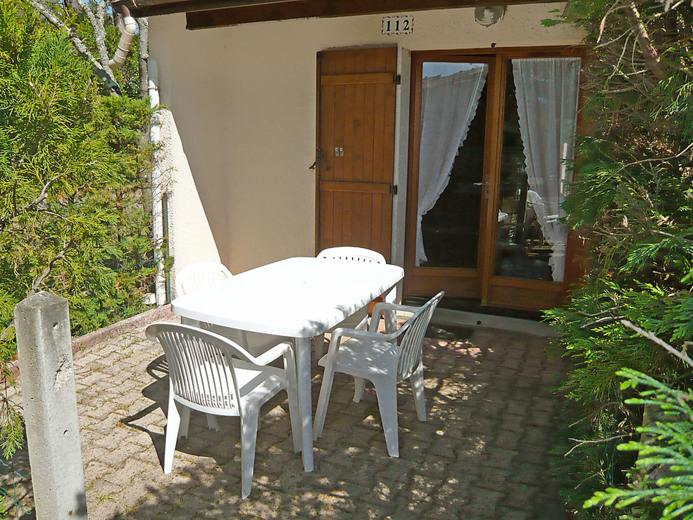 2-Zimmer-Haus 30 m2 auf 2 Stockwerken. Wohn-/Esszimmer mit TV. 1 Zimmer mit 1 franz. Bett. Kochnische (Backofen, Geschirrspüler, Mikrowelle). Dusche/WC. Obergeschoss: abgeschrägte Galerie, Deckenhöhe 240 - 170 cm mit 2 Betten. E-Heizung. 2 Terrassen. Terrassenmöbel. Zur Verfügung: Waschmaschine. Maximal 1 Haustier/Hund erlaubt.