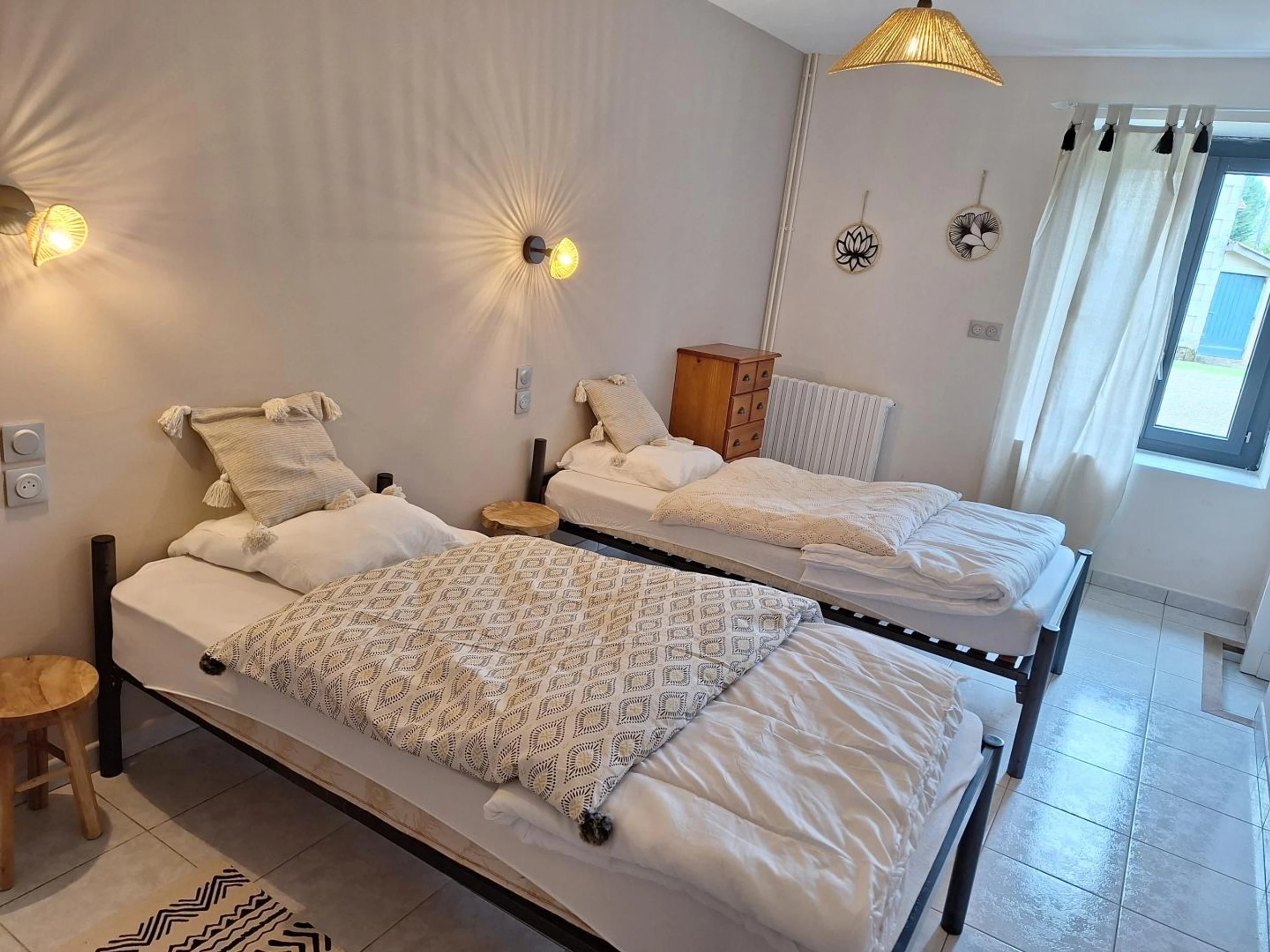 Landhaus mit kleinem, umzäunten Innenhof am Eingang und Garten im hinteren Bereich. Vom Eingang gelangt man in das große Wohnzimmer mit Sofa, zwei Sesseln und Fernseher. Angrenzend befindet sich eine große, voll ausgestattete, separate Küche mit gemütlichem Essbereich. Ein Schlafzimmer verfügt über ein Doppelbett (140 cm), ein Kinderbett und einen Wickeltisch. Ein zweites Schlafzimmer ist mit zwei Einzelbetten (90 cm) ausgestattet. Drei Stufen führen in den Wohnbereich mit Bar, Kaminofen und Sofa. Außerdem gibt es ein Duschbad, ein separates WC und ein weiteres Schlafzimmer mit Doppelbett (140 cm). Im Außenbereich laden Gartenmöbel, ein Sonnenschirm und ein Grill zum Verweilen ein. Für Kinder steht ein Smoby-Spielhaus bereit. Der private, oberirdische Swimmingpool (4,9 m x 3 m x 1,2 m Tiefe) ist chloriert, mit einer Leiter gesichert und von Juni bis Ende September geöffnet. Entdecken Sie dieses prächtige, restaurierte Familienhaus im Herzen des charmanten Dorfes Sourzac. Dieses Ferienhaus vereint Authentizität und modernen Komfort und ist ideal für einen unvergesslichen Urlaub in der Dordogne. Jedes Detail wurde sorgfältig durchdacht, um Ihnen ein herzliches und einladendes Erlebnis zu bieten und gleichzeitig den einzigartigen Charakter der Region zu bewahren. In ruhiger Lage gelegen, ermöglicht Ihnen dieses Haus, die kulturellen und natürlichen Schätze des Périgord in vollen Zügen zu genießen. Es befindet sich direkt am Radweg Véloroute Voie Verte und nur 500 Meter von einem lokalen Gemüsehändler entfernt, bei dem Sie frische Produkte direkt vom Erzeuger kaufen können.