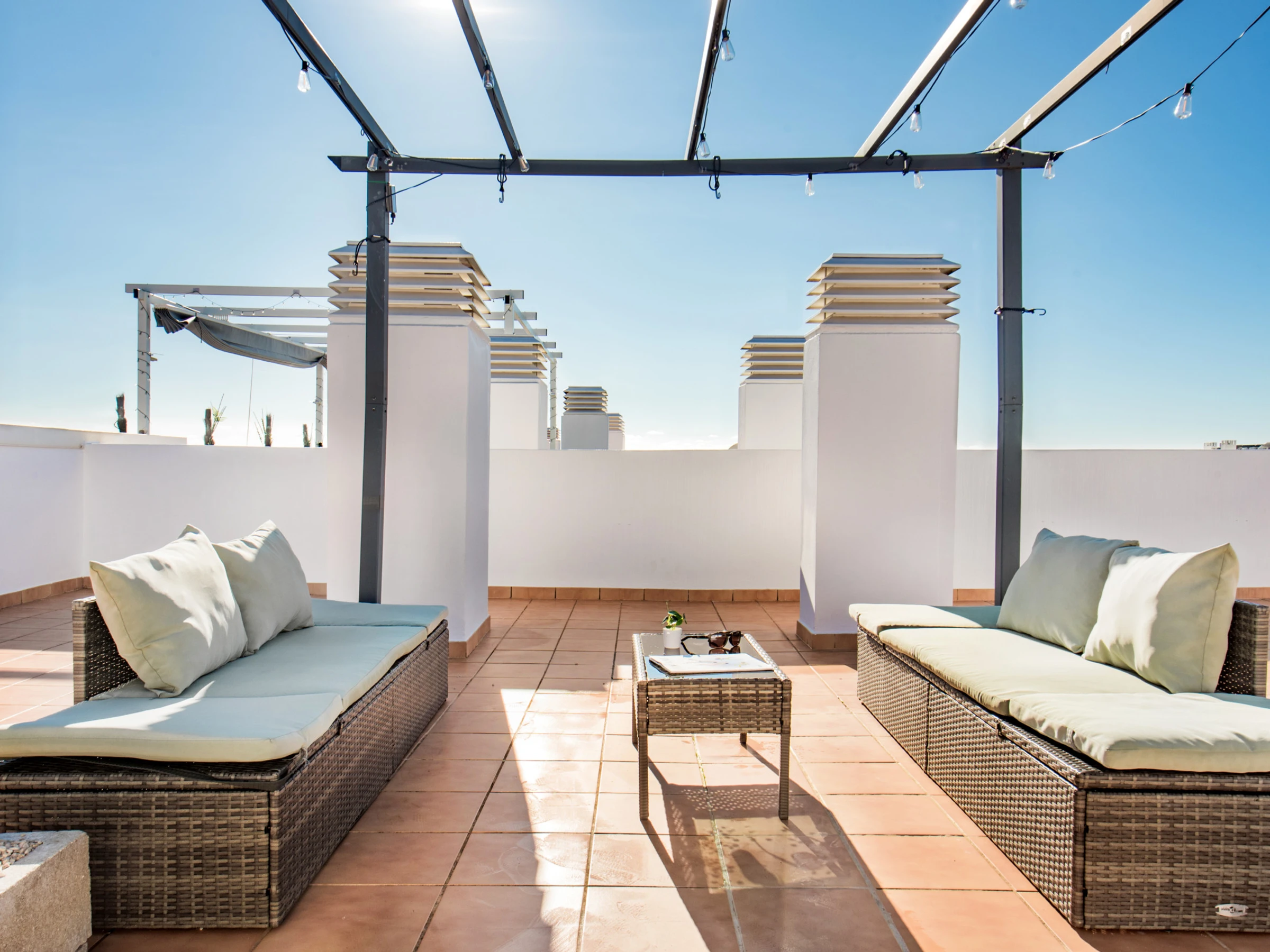 Die Unterkunft verfügt über gartenmöbel, terrasse, waschmaschine, trockner, grill, bügeleisen/-brett, internet (WLAN), haartrockner, balkon, klimaanlage, swimming-pool gemeinschaftlicher swimming-pool, 2 ventilatoren, 2 Fernsehgeräte, sat-tv (Sprachen: Spanisch, Englisch, Deutsch, Holländisch, Französisch).