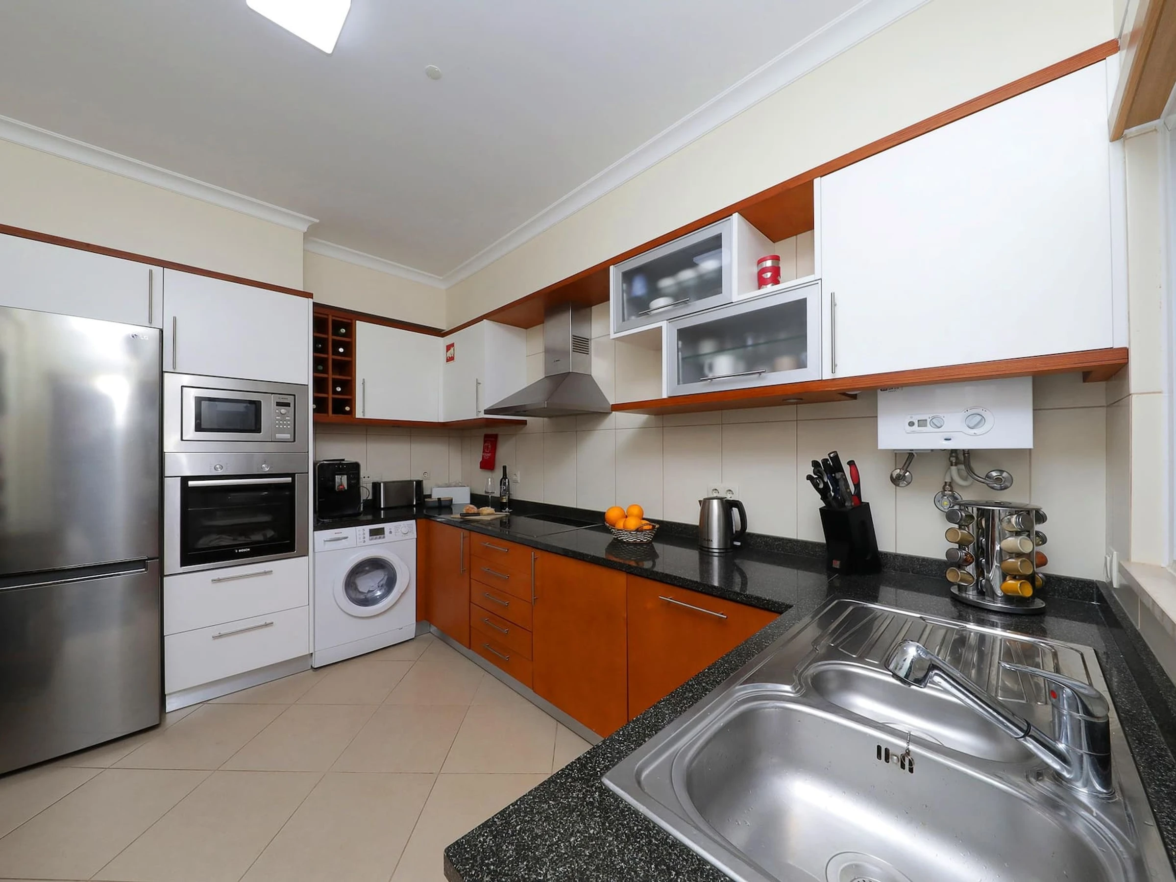 Dieses separate küche, elektrisches kochfeld, ist ausgestattet in kühlschrank, mikrowelle, backofen, gefrierschrank, spülmaschine, geschirr/besteck, kochutensilien, kaffeemaschine, toaster, wasserkocher und herdplatte.