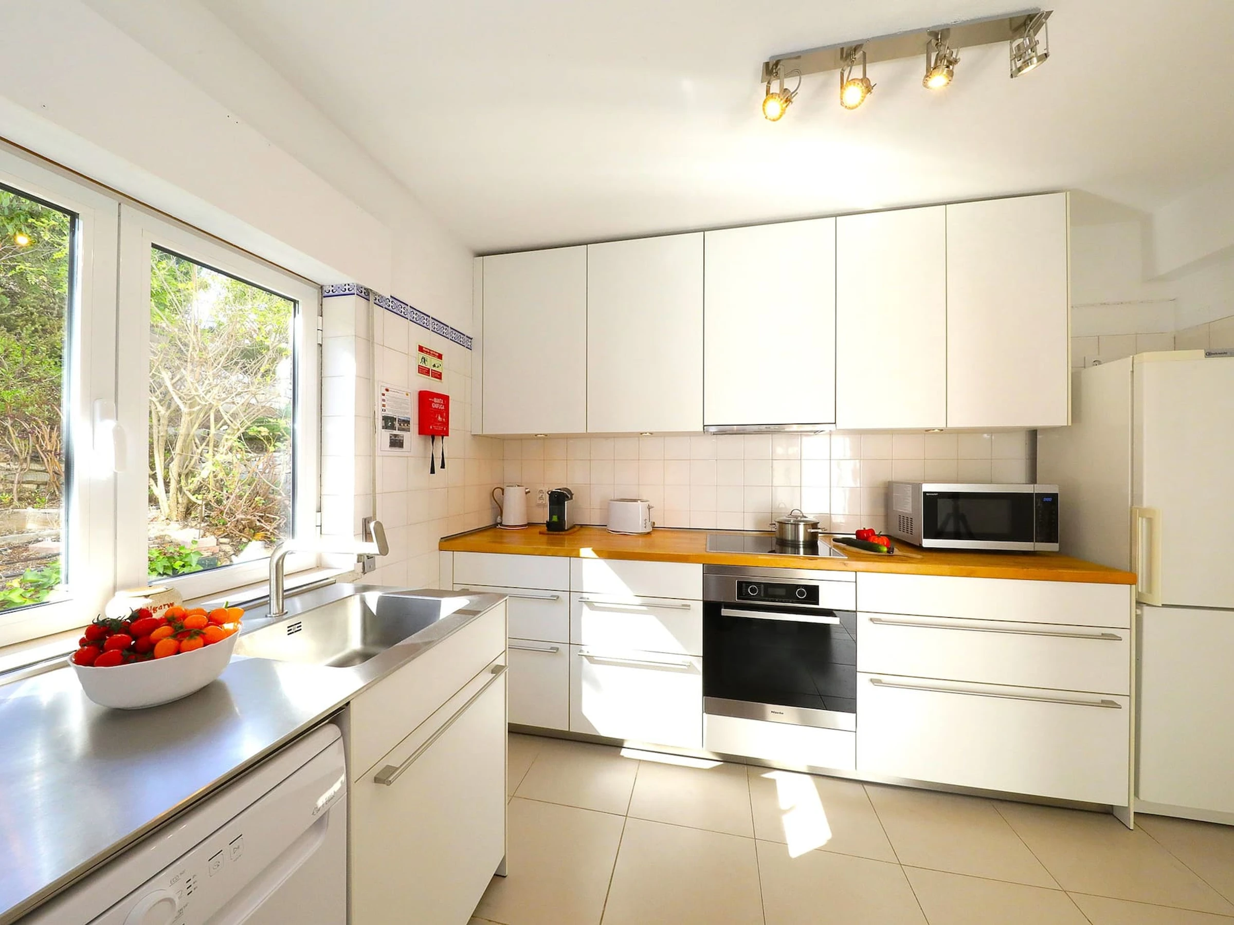 Dieses separate küche, elektrisches kochfeld, ist ausgestattet in kühlschrank, mikrowelle, backofen, gefrierschrank, spülmaschine, geschirr/besteck, kochutensilien, kaffeemaschine, toaster und wasserkocher.