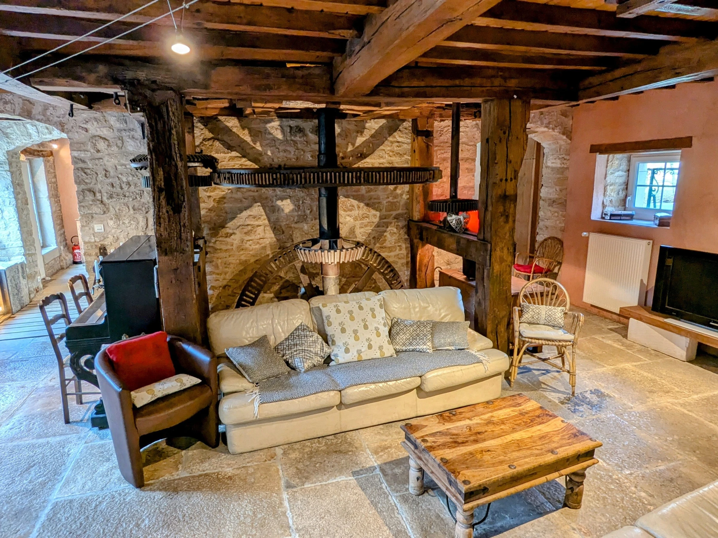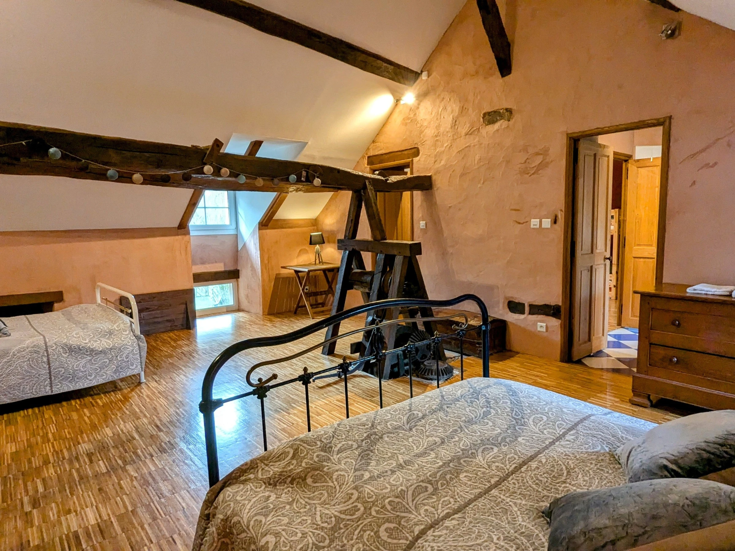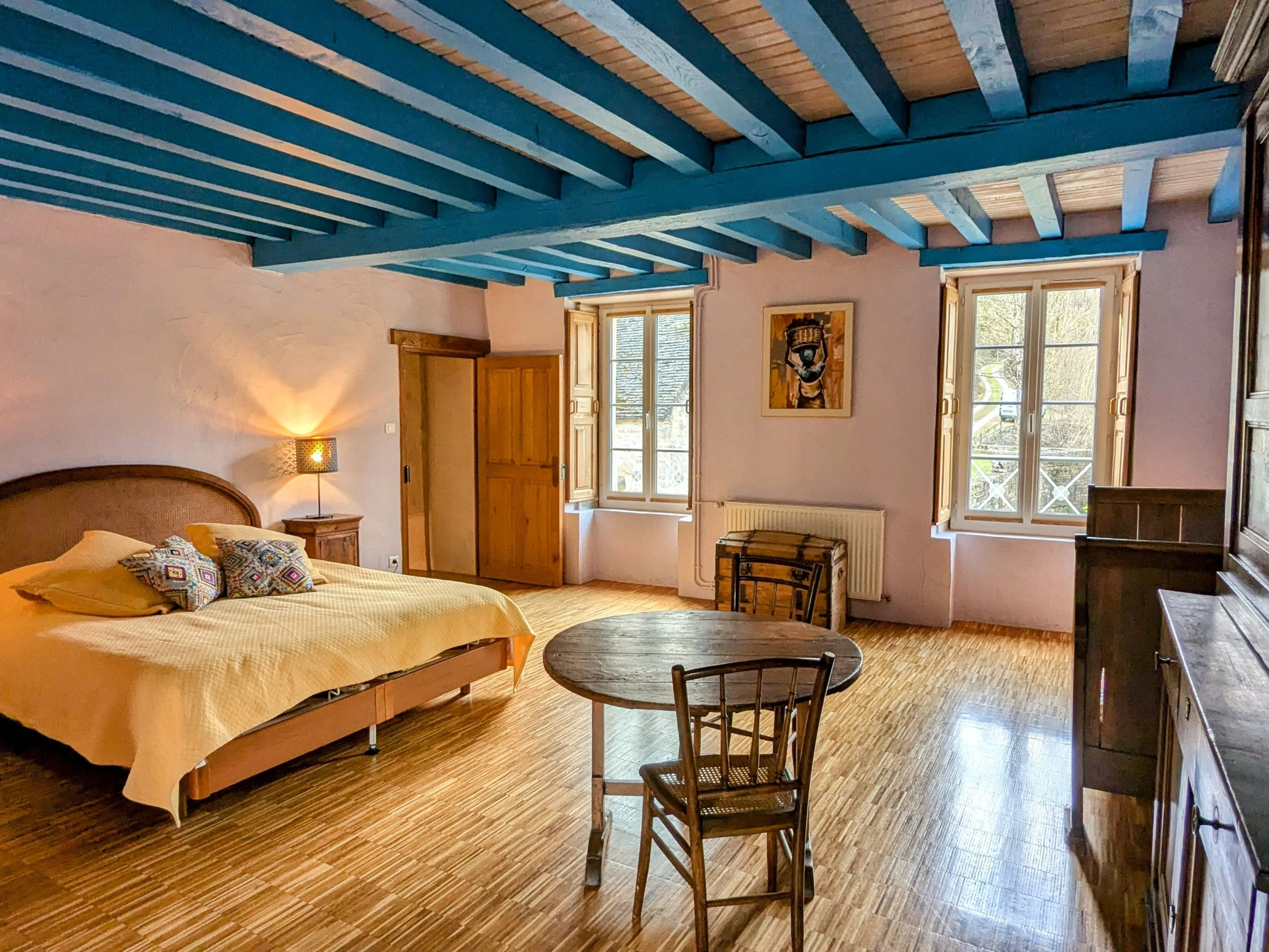 Außergewöhnliche Lage für dieses Ferienhaus in einer alten Mühle im Herzen eines wunderschönen grünen Tals. Im Erdgeschoss gibt es Wohnräume, die sich ideal für Treffen mit der Familie oder Freunden eignen: eine voll ausgestattete und funktionale Küche, offen zum Esszimmer und Wohnzimmer mit Kamin. Sauna für 6 Personen. Separates WC. Eine schöne Steintreppe führt zu den einzelnen Stockwerken. Im 1. Stock: Wohnzimmer mit Bibliothek. Ein großes Schlafzimmer (160 cm Bett) mit dekorativem Kamin, Leseecke und Badezimmer. Ein Schlafzimmer mit einem 160 cm breiten Bett und Duschraum mit WC. Im 2. Stock: ein Schlafzimmer mit einem 140 cm breiten Bett und Badezimmer mit WC. Ein Schlafzimmer mit zwei 140 cm breiten Betten, verbunden mit einem Schlafsaal mit vier Etagenbetten für die Kinder. Duschraum und WC. Idyllische Außenanlage mit Terrasse und 3 Hektar Land am Flussufer. Verfügbare Spiele: Pétanque, Molky, Schläger und Badmintonnetz. Aufgrund der Nähe des Flusses und der vor Ort erhaltenen alten Überreste einer Mühle müssen Kinder während des Aufenthalts unter der Aufsicht ihrer Eltern bleiben. Petanque-Platz.