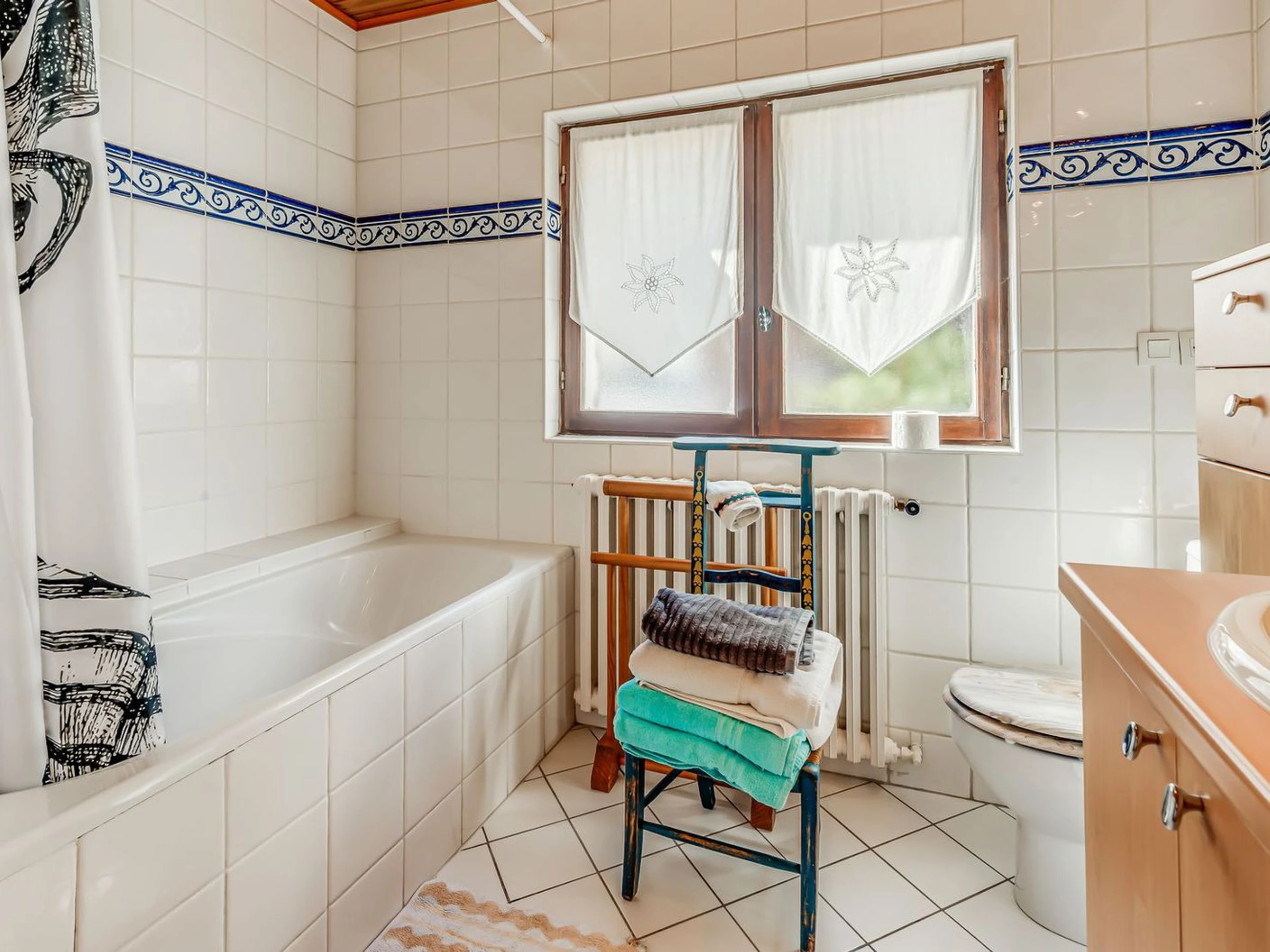 - 1 Badezimmer mit Badewanne, Waschtisch, Handtuchwärmer und WC