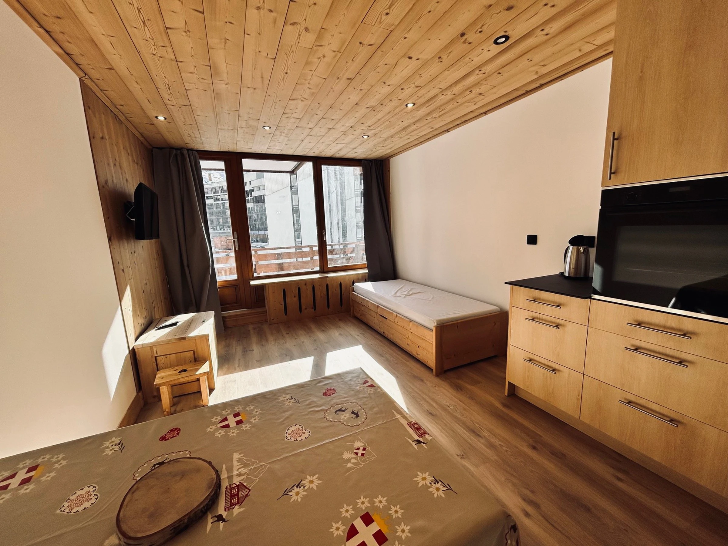 Renoviertes Studio (25 m²) für 4 Personen im zweiten Stock der Anlage „Sefcotel A“ im Herzen von Tignes Val Claret (mit Aufzug). Südlage mit Balkon.