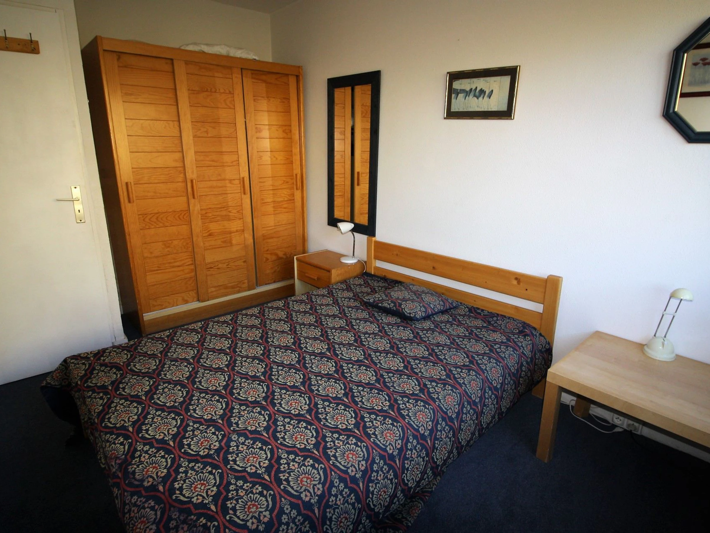 1 Doppelbett, Nachttischen und Lampen, 1 Kleiderschrank, 1 kleiner Kommode