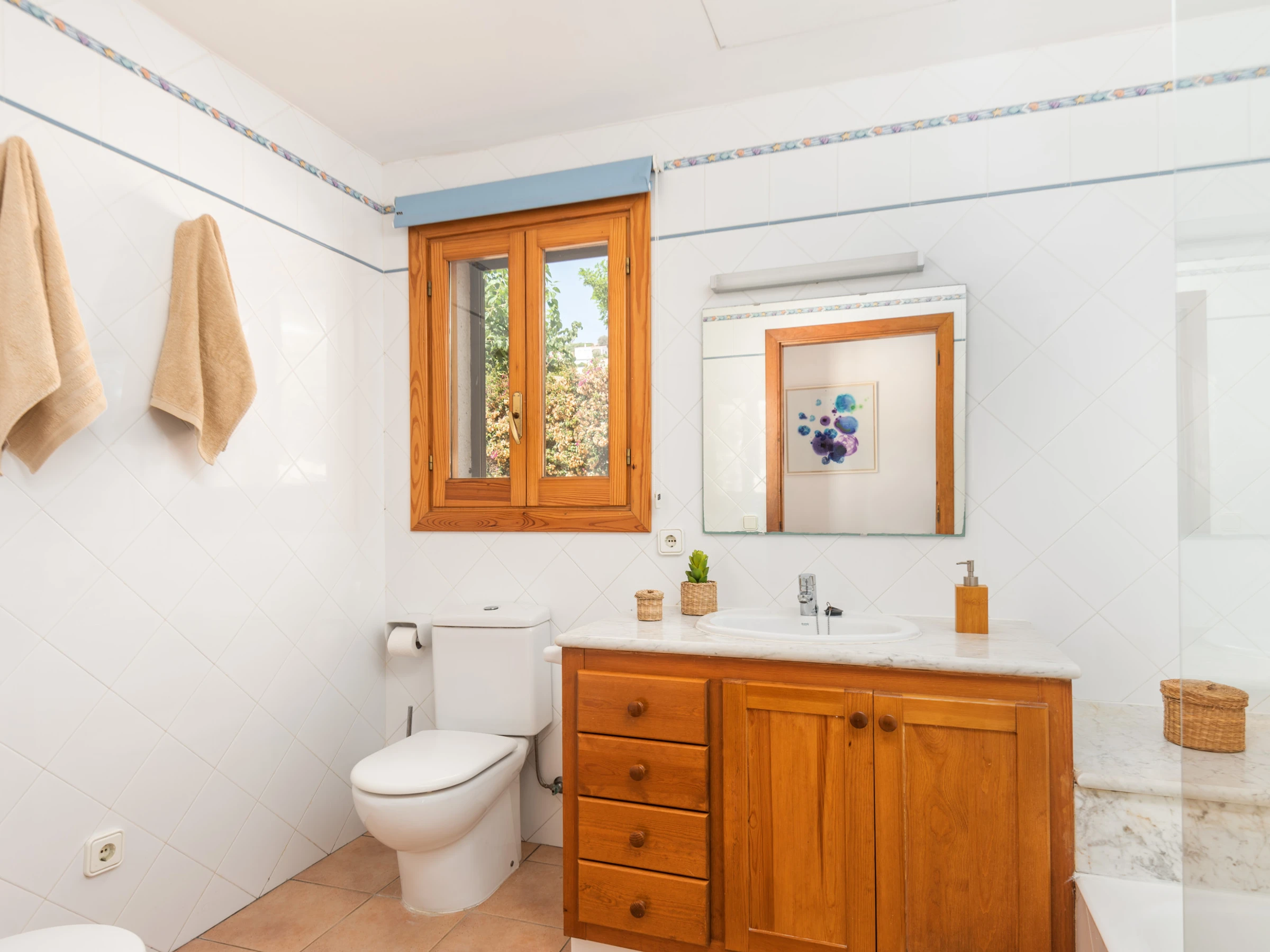 Villa Conchita, auf einer einzigen Etage gebaut, bietet drei geräumige und lichtdurchflutete Schlafzimmer, eines davon mit einem Badezimmer en suite. Der geräumige Wohnbereich ist ein besonders charmanter Raum, mit bequemen Sofas und großen Türen, die zu einem Außenessbereich, zu den ausgedehnten Rasengärten und zum herrlichen privaten Swimmingpool führen. Die gepflegten Gärten sind von einer hohen und gut gehaltenen Hecke umgeben, was eine hervorragende Privatsphäre bietet. Offene gut ausgestattete Küche: Backofen, Glaskeramikkochfeld, Mikrowelle, Geschirrspüler, Kühl-/Gefrierschrank. Waschraum mit Waschmaschine und elektrischem Warmwasserspeicher Wohnzimmer: Bequeme Sitzgelegenheiten, Smart-TV, Musikanlage, Esszimmer mit Tisch und Stühlen mit Zugang zur Terrasse mit Garten. Schlafzimmer 1: Doppelbett, Klimaanlage Kalt/Warm und Badezimmer en-suite mit Dusche. Schlafzimmer 2 Einzelbetten, Klimaanlage Kalt/Warm. Schlafzimmer 3 Einzelbetten, Klimaanlage Kalt/Warm. Badezimmer mit Badewanne. Der Außenbereich besteht aus