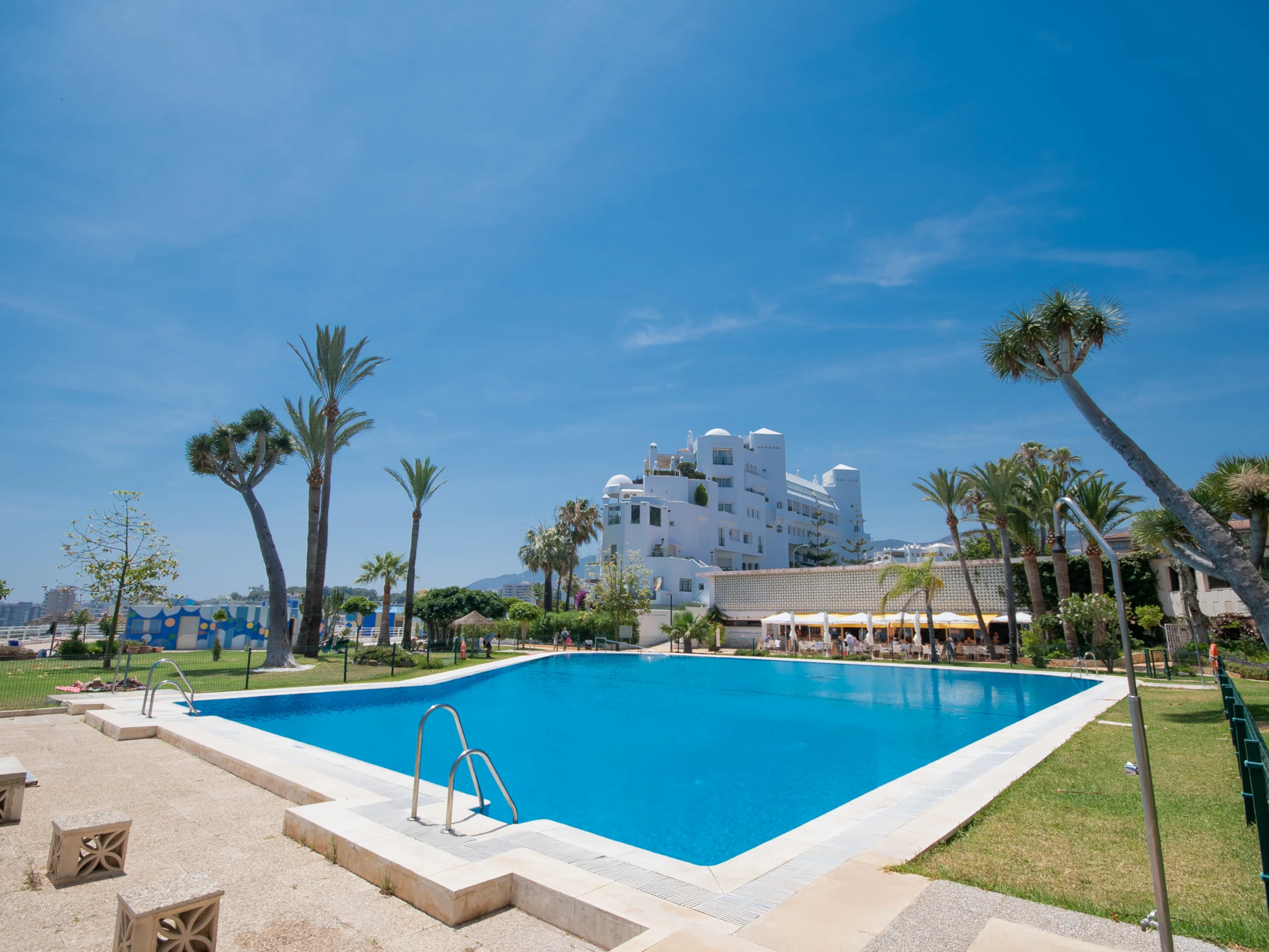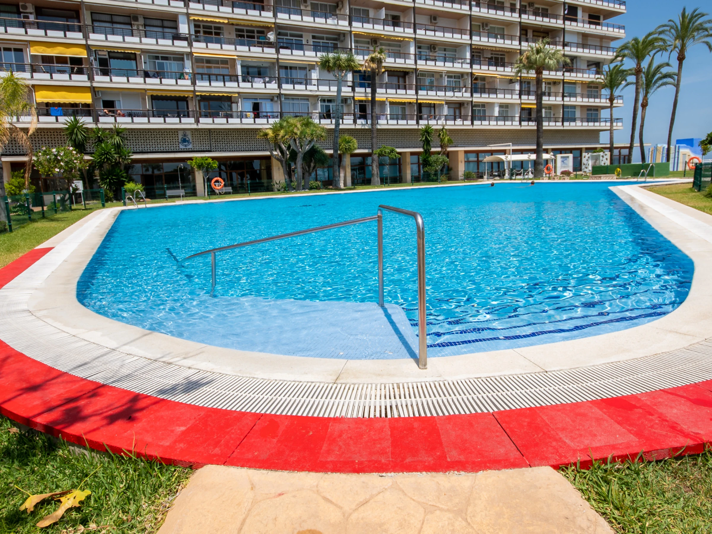 Der Komplex verfügt über einen großen Swimmingpool mit Zugang für Menschen mit eingeschränkter Mobilität, umgeben von einer weitläufigen Aussichtsplattform mit Gartenmobiliar und einer Bar (Getränke nicht inbegriffen). Für Reisende mit Kindern gibt es einen speziellen Kinderpool, und der Umfang der Gemeinschaftsbereiche ist zu deren Sicherheit vollständig eingezäunt. Darüber hinaus ist der Zugang zu den Aufzügen zum Strand durch codierte Karten eingeschränkt, was die Privatsphäre und Sicherheit der Gäste gewährleistet.