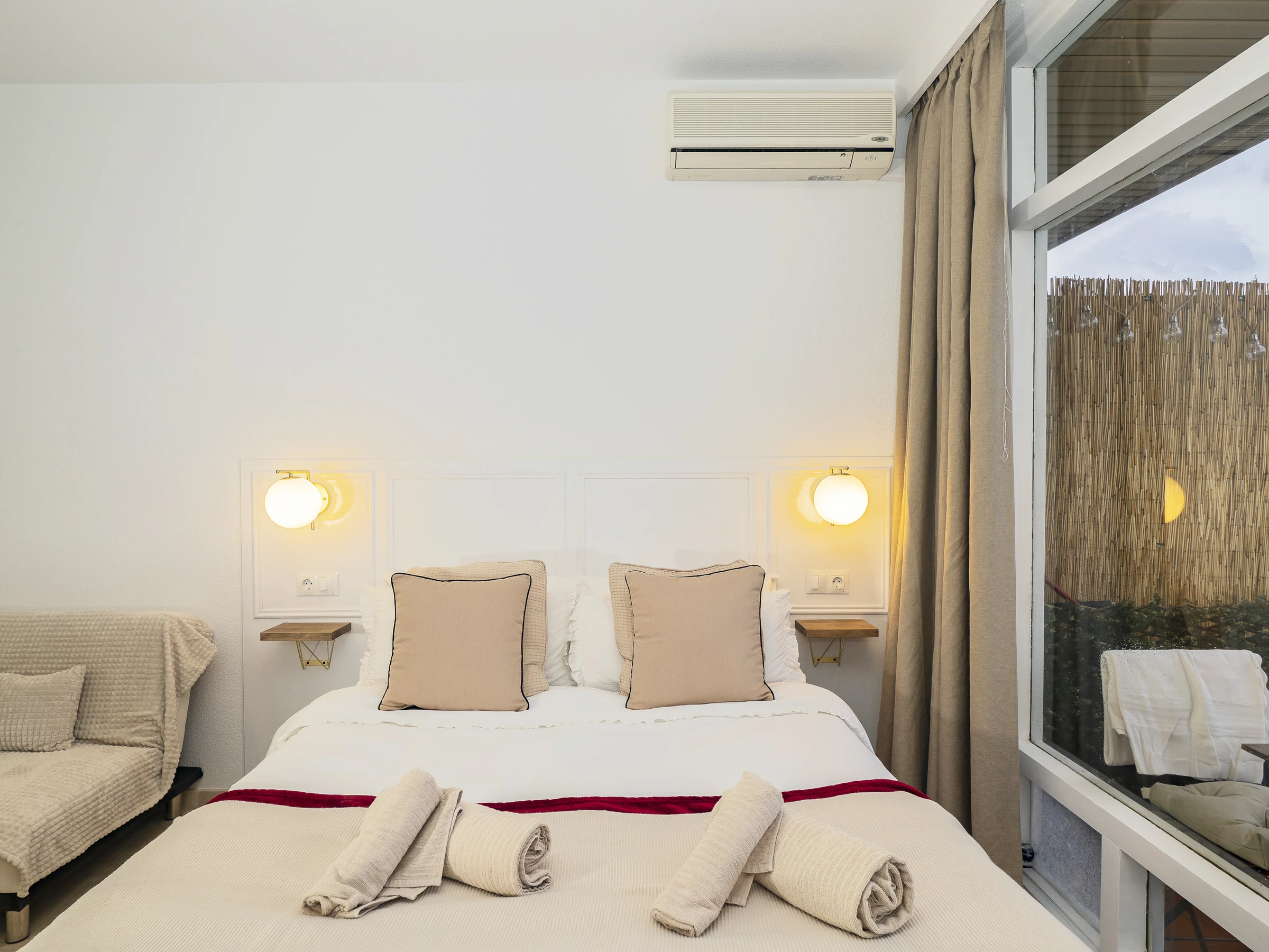 Entspannen Sie sich auf der privaten 10 m² großen Terrasse mit Panoramablick auf das Mittelmeer und die Berge 🌄, einem perfekten Raum, um Sonnenauf- und -untergänge zu genießen. Darüber hinaus ist das Studio Teil eines Komplexes mit Erstklassigen Einrichtungen: ein großer Gemeinschaftspool, der für Menschen mit eingeschränkter Mobilität zugänglich ist, und eine gemeinsame Terrasse mit Gartenmöbeln und Bar für Freizeit- und Sozialisierungsmomente (Getränke nicht inbegriffen).