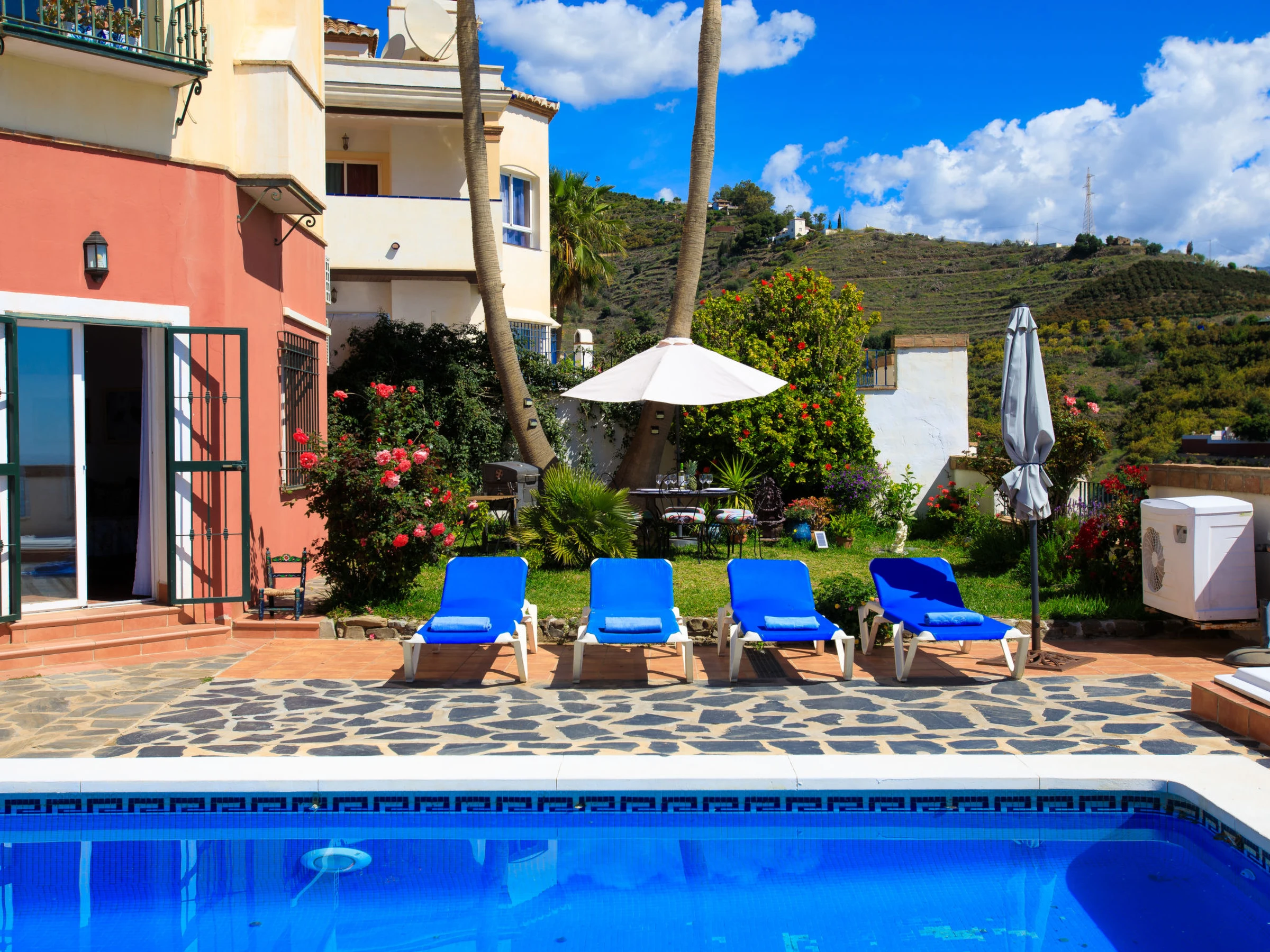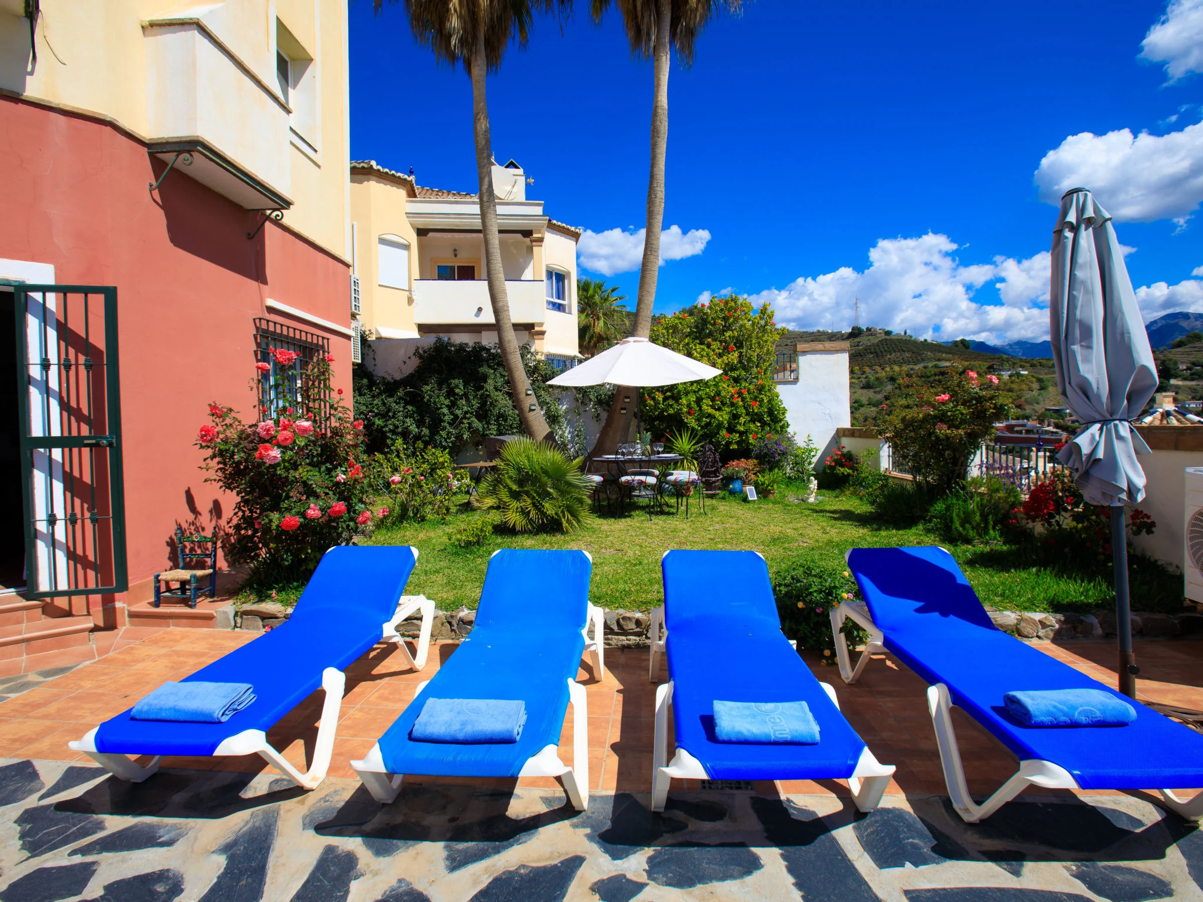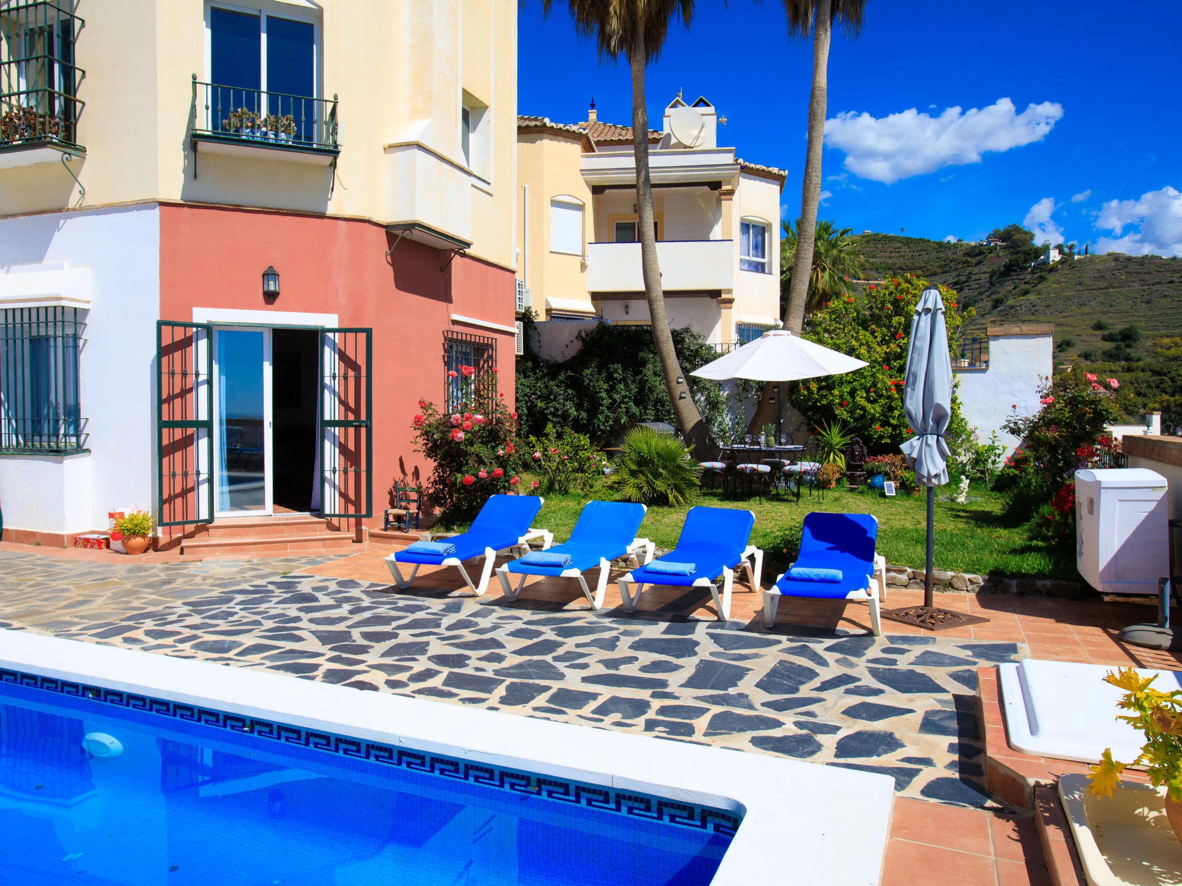Torrox 1 km von Nerja: Germáumiges Haus in einer ruigen Wohngegend, aber nur 15 Gehminuten vom Strand und einer fantastischen Strandbar entfernt. Nerja ist weniger als 10 Autominuten entfernt. Das Haus besteht aus 3 Stockwerken, wobei das Stockwerk, das sich auf der gleichen Ebene wie der Pool und der Garten befindet, mit seiner kleinen Küche, Bad/Dusche, Wohnzimmer und einem Doppelbett, wie eine separate Wohnung ist. Es gibt keinen Innenzugang zu den anderen Schlafzimmern, insgesamt gibt es 4 Einzelbetten und 2 Doppelbetten sowie zwei Küchen. schönes, komfortables Haus "Vista Bonita". Im Ort, 2 km vom Zentrum von Nerja, sonnige Lage im Villenviertel, 500 m vom Meer, vom Strand. Zur Alleinbenutzung: Garten, Schwimmbad eckig (5 x 7 m, 100 - 180 cm tief, saisonale Verfügbarkeit: [hidden] - [hidden] Im Hause: Waschmaschine. Einkaufsgeschäft 2 km, Lebensmittelgeschäft 2 km, Supermarkt 2 km, Einkaufszentrum 25 km, Restaurant, Bäckerei 4 km, Café 500 m, Fußgängerzone 2 km, Biergarten 500 m, Bushaltestelle 1.5 km, Bahnstation "Malaga" 50 km, Sandstrand 500 m, Tauchzentrum 2 km, Thermalbad 2 km. Sporthafen 26 km, Jacht-Hafen 26 km, Golfplatz (18 Loch) 20 km, Surfschule 20 km, Tennis 2 km, Sportzentrum 2 km. Nahe gelegene Sehenswürdigkeiten: Nerja, Torrox, Frigiliana, La Herradura, Almuñecar, Competa. Bekannte Skigebiete sind gut erreichbar: Sierra Nevada. Wandergebiete: Sierra Almijara, Sierra Tejeda, Las Alpujarras. Bitte beachten: Fahrzeug empfohlen. Babyausstattung (inkl.). Der Besitzer akzeptiert keine Jugendgruppen. Be- und Entladen am Ferienhaus möglich. Ferienwohnung Ref. ES5405.127.1 befindet sich auf dem gleichen Grundstück.