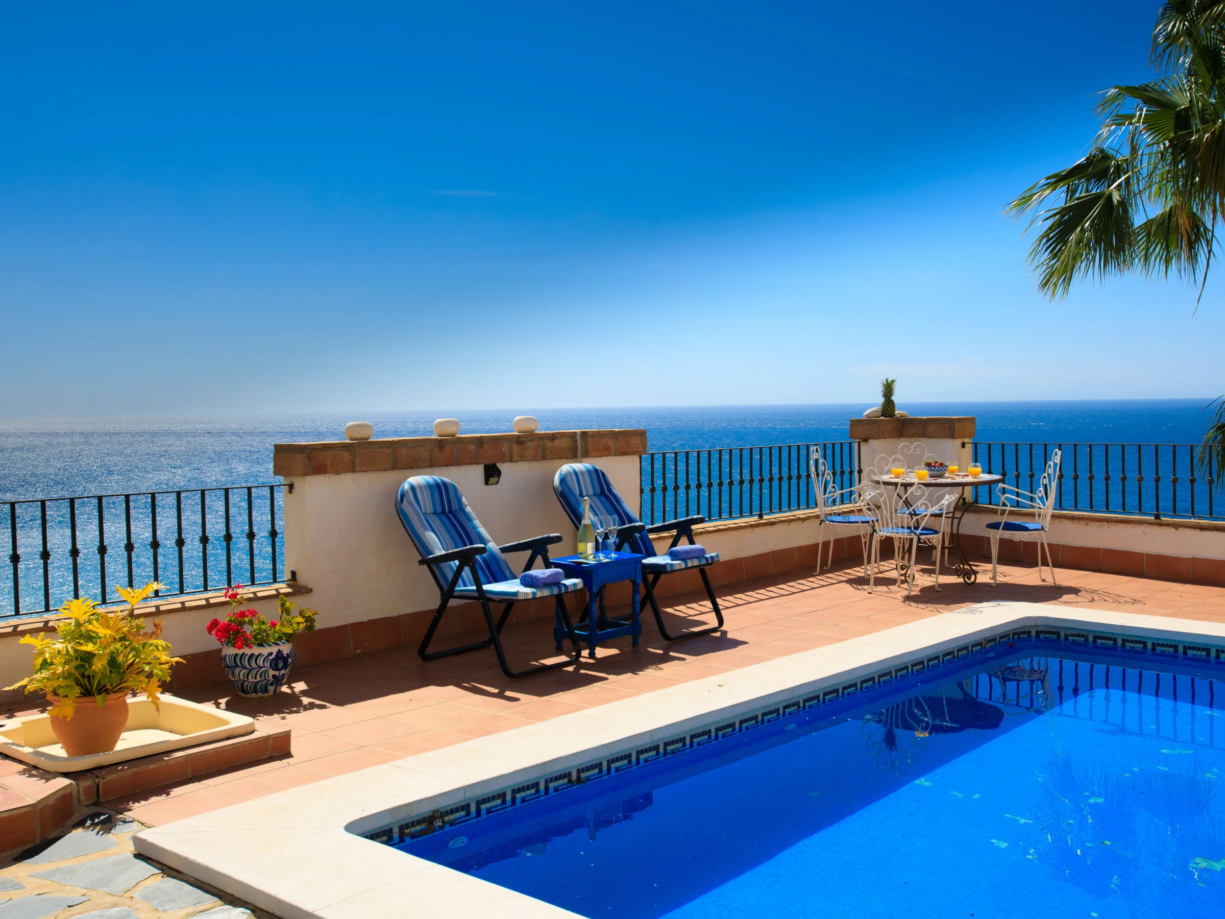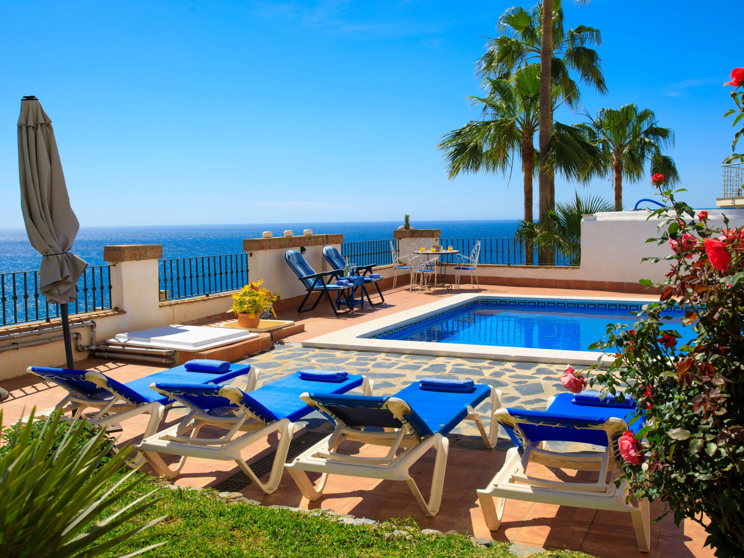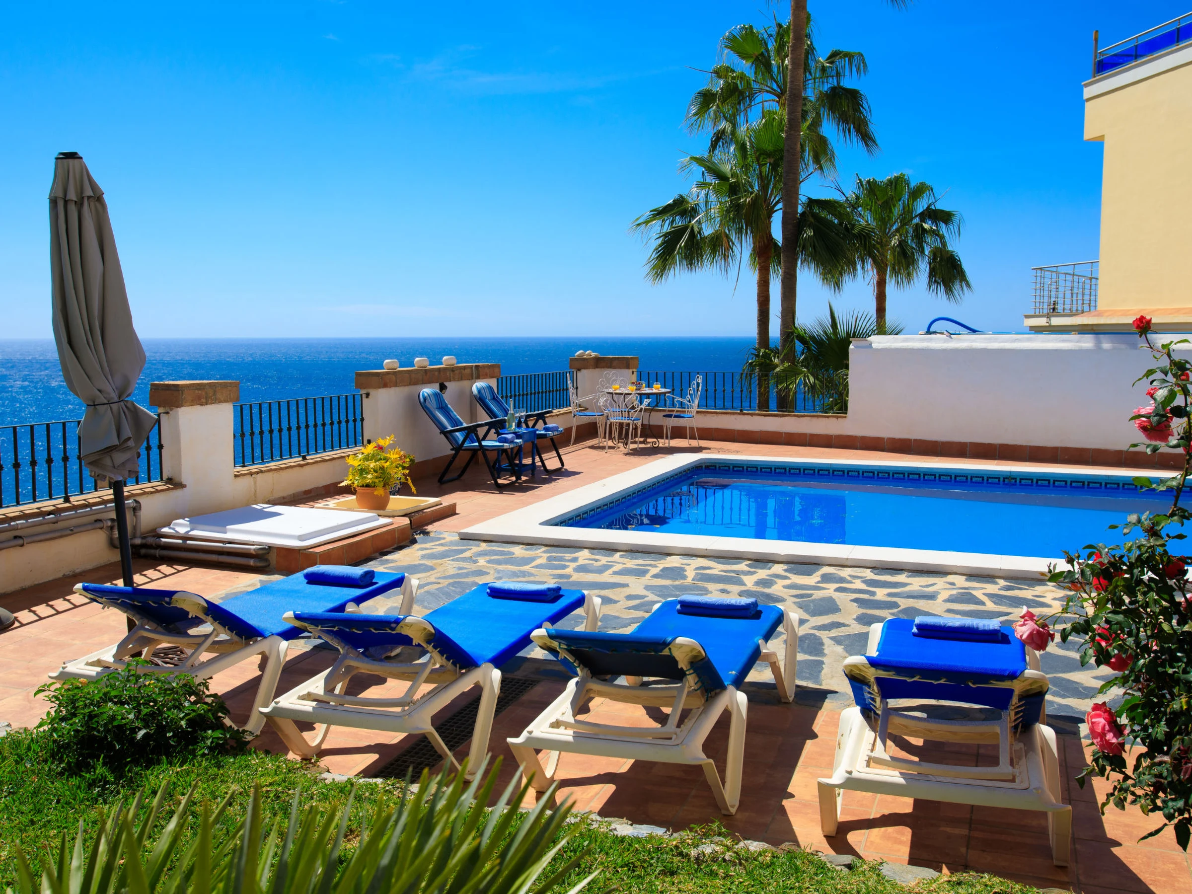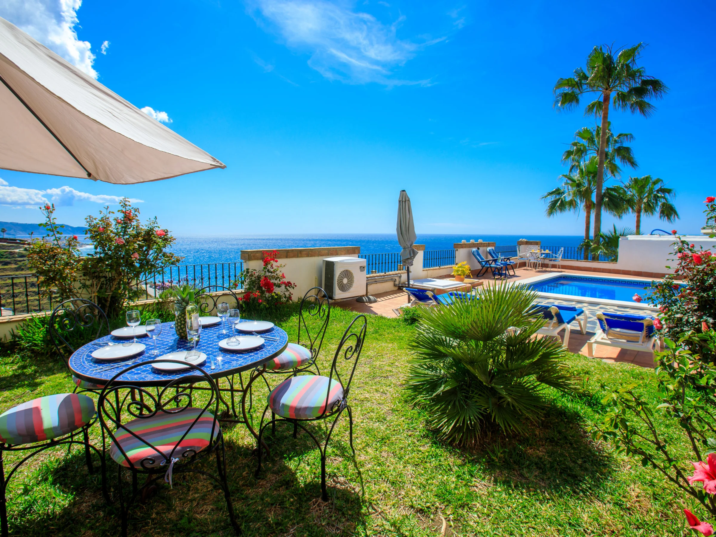 Torrox 1 km von Nerja: Germáumiges Haus in einer ruigen Wohngegend, aber nur 15 Gehminuten vom Strand und einer fantastischen Strandbar entfernt. Nerja ist weniger als 10 Autominuten entfernt. Das Haus besteht aus 3 Stockwerken, wobei das Stockwerk, das sich auf der gleichen Ebene wie der Pool und der Garten befindet, mit seiner kleinen Küche, Bad/Dusche, Wohnzimmer und einem Doppelbett, wie eine separate Wohnung ist. Es gibt keinen Innenzugang zu den anderen Schlafzimmern, insgesamt gibt es 4 Einzelbetten und 2 Doppelbetten sowie zwei Küchen. schönes, komfortables Haus "Vista Bonita". Im Ort, 2 km vom Zentrum von Nerja, sonnige Lage im Villenviertel, 500 m vom Meer, vom Strand. Zur Alleinbenutzung: Garten, Schwimmbad eckig (5 x 7 m, 100 - 180 cm tief, saisonale Verfügbarkeit: [hidden] - [hidden] Im Hause: Waschmaschine. Einkaufsgeschäft 2 km, Lebensmittelgeschäft 2 km, Supermarkt 2 km, Einkaufszentrum 25 km, Restaurant, Bäckerei 4 km, Café 500 m, Fußgängerzone 2 km, Biergarten 500 m, Bushaltestelle 1.5 km, Bahnstation "Malaga" 50 km, Sandstrand 500 m, Tauchzentrum 2 km, Thermalbad 2 km. Sporthafen 26 km, Jacht-Hafen 26 km, Golfplatz (18 Loch) 20 km, Surfschule 20 km, Tennis 2 km, Sportzentrum 2 km. Nahe gelegene Sehenswürdigkeiten: Nerja, Torrox, Frigiliana, La Herradura, Almuñecar, Competa. Bekannte Skigebiete sind gut erreichbar: Sierra Nevada. Wandergebiete: Sierra Almijara, Sierra Tejeda, Las Alpujarras. Bitte beachten: Fahrzeug empfohlen. Babyausstattung (inkl.). Der Besitzer akzeptiert keine Jugendgruppen. Be- und Entladen am Ferienhaus möglich. Ferienwohnung Ref. ES5405.127.1 befindet sich auf dem gleichen Grundstück.