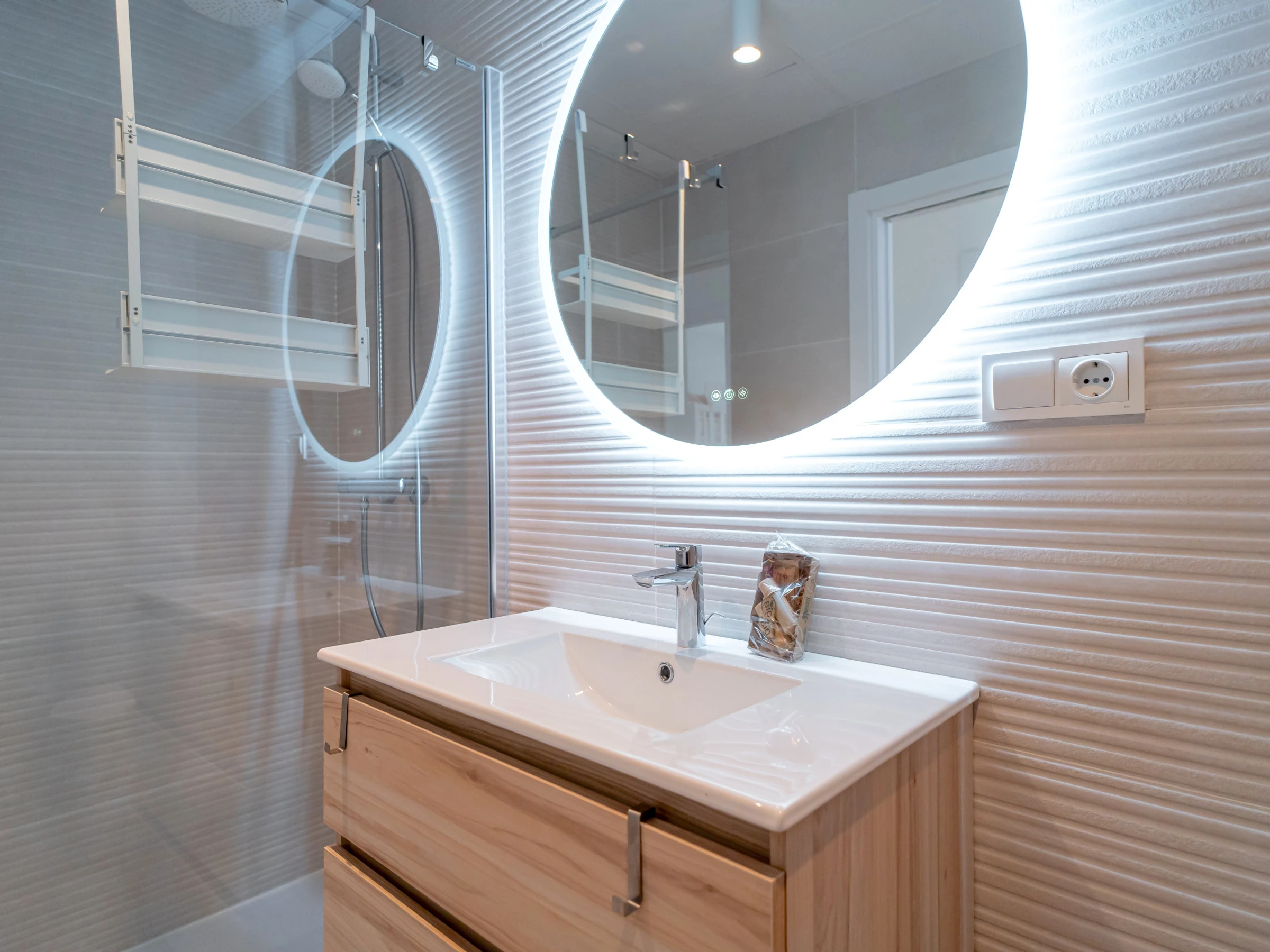 Es verfügt über drei elegante Schlafzimmer: ein Hauptschlafzimmer mit einem Kingsize-Bett und eigenem Bad, ein zweites Schlafzimmer mit zwei Einzelbetten und ein drittes Schlafzimmer mit einem Etagenbett, das Platz für insgesamt 6 Gäste bietet. Alle Schlafzimmer sind mit Einbauschränken und hochwertigen Matratzen ausgestattet und eignen sich daher ideal für Familien oder Freunde, die sich in einer privilegierten Umgebung stilvoll entspannen möchten.