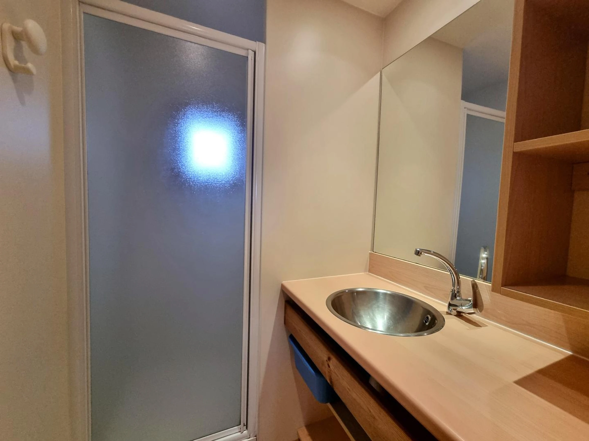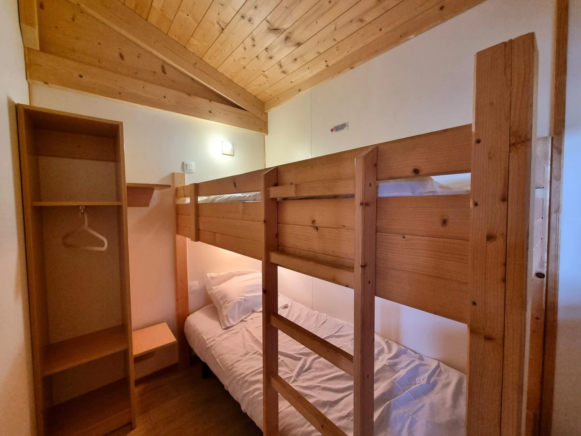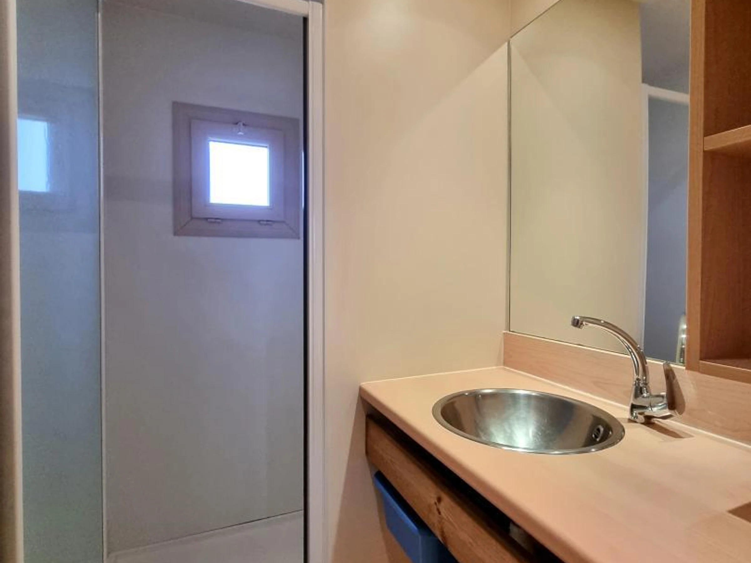 Dieses 35 m² große Chalet „Bouleau“ bietet eine funktionale und optimale Raumaufteilung für bis zu 6 Personen. Es verfügt über drei Schlafzimmer: eines mit einem Doppelbett (140 x 190 cm), das zweite mit zwei Einzelbetten (80 x 190 cm) und das dritte mit zwei Etagenbetten (80 x 190 cm), ideal für Kinder.