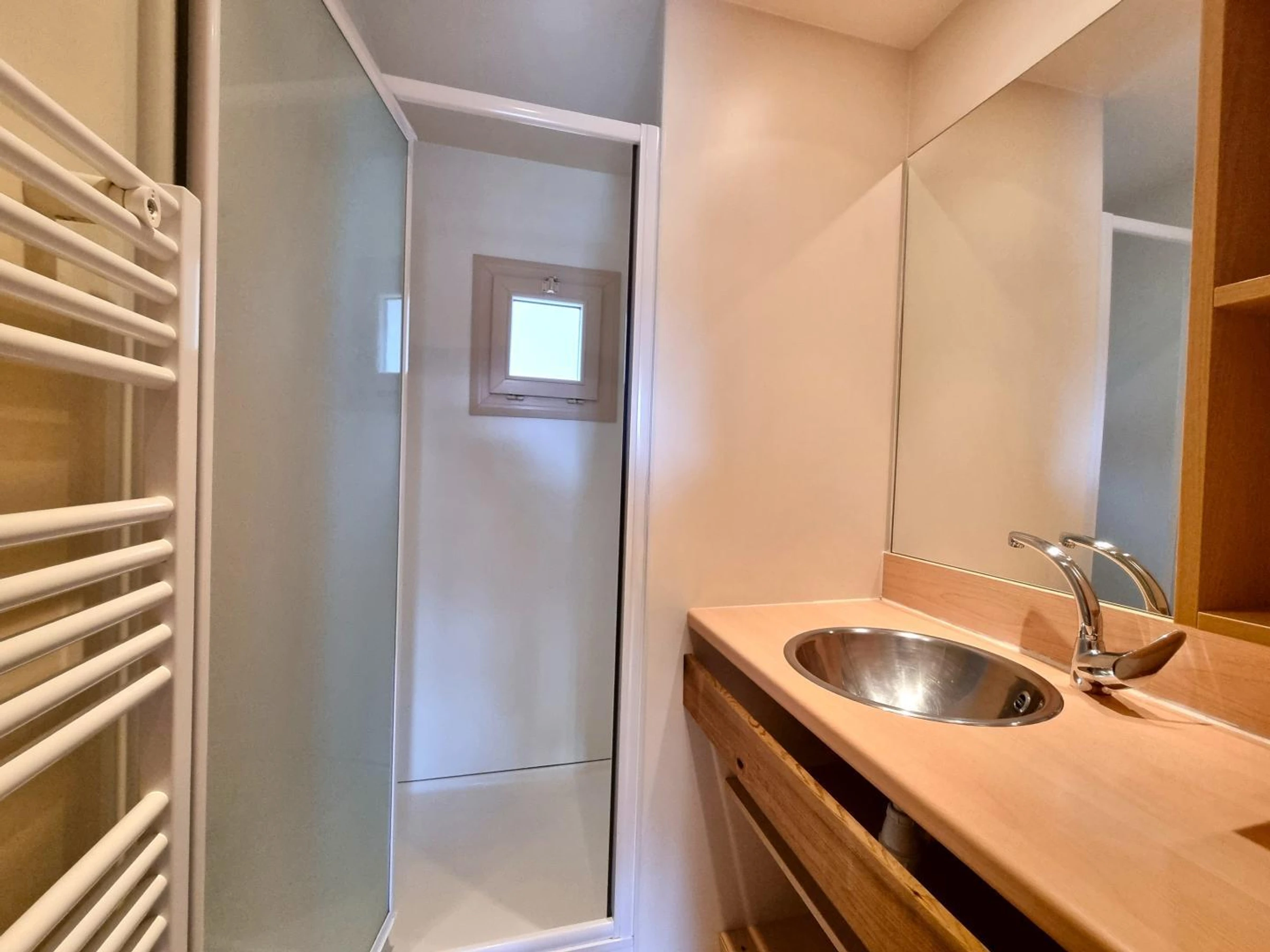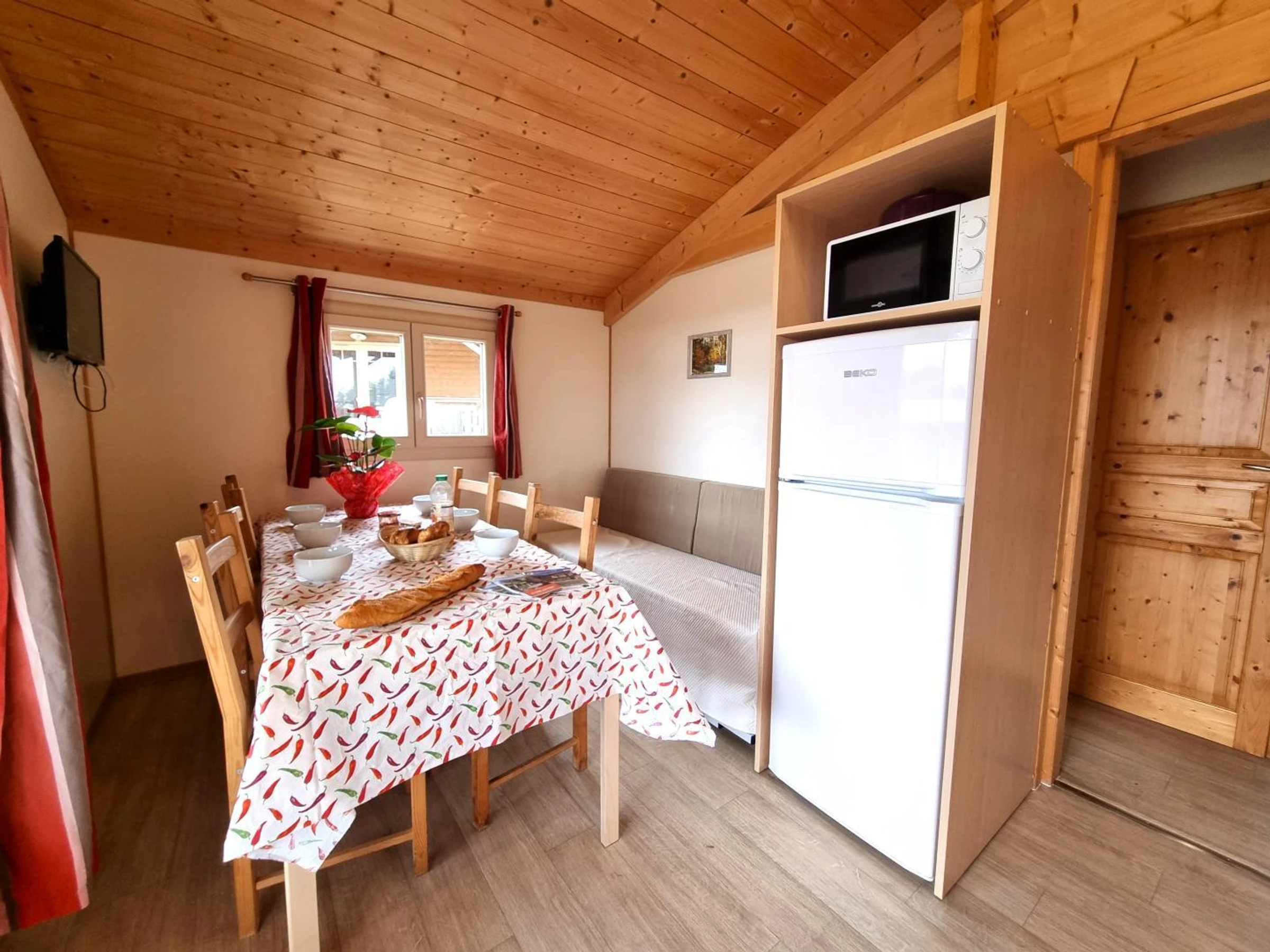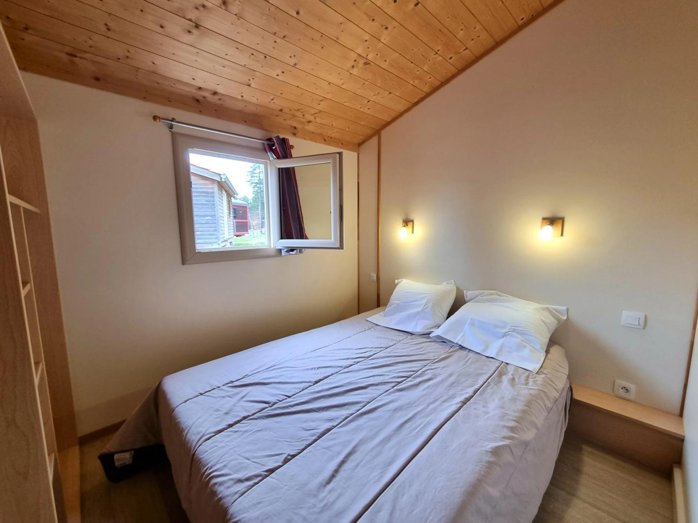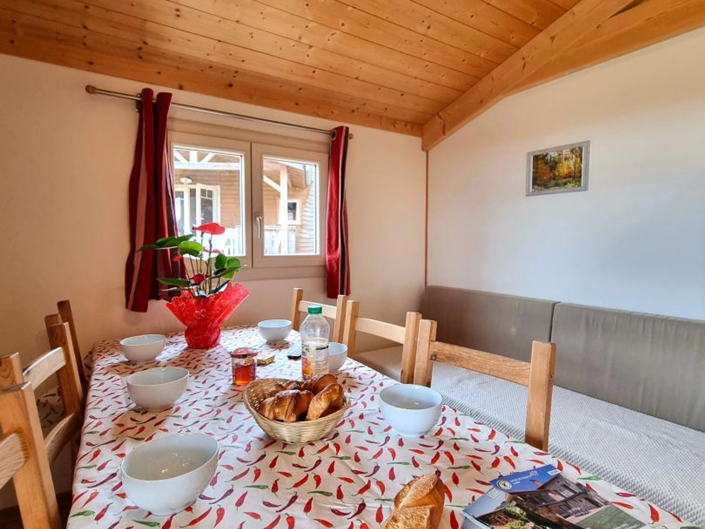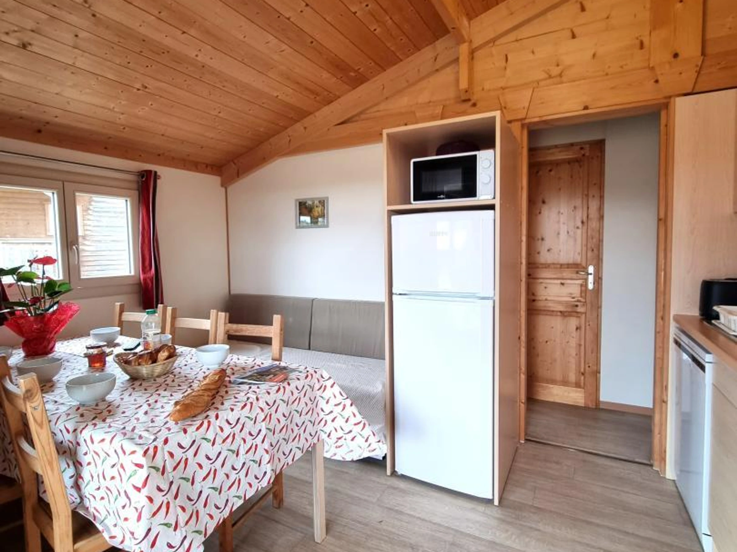 Dieses 35 m² große Chalet „Houx“ bietet eine funktionale und optimale Raumaufteilung für bis zu 6 Personen. Es verfügt über drei Schlafzimmer: eines mit einem Doppelbett (140 x 190 cm), ein zweites mit zwei Einzelbetten (80 x 190 cm) und ein drittes mit zwei Etagenbetten (80 x 190 cm), ideal für Kinder.