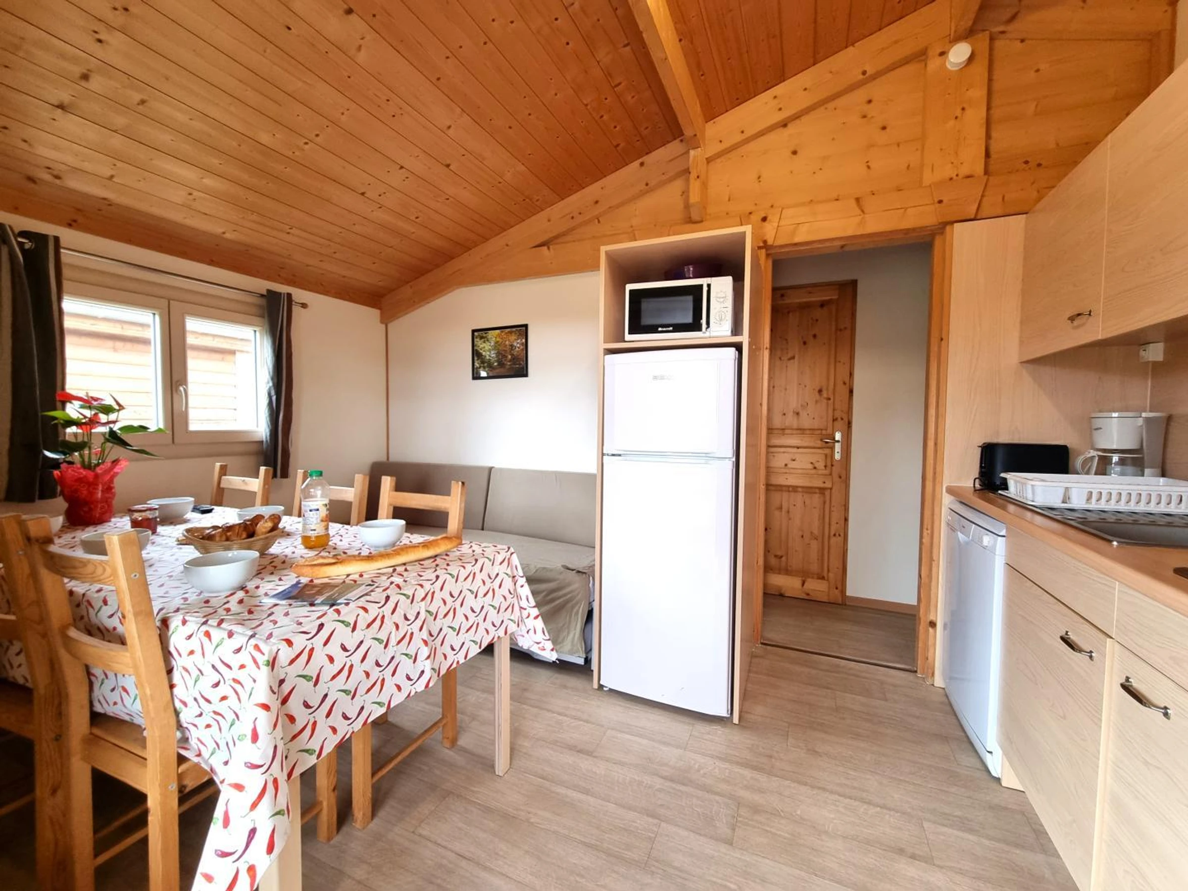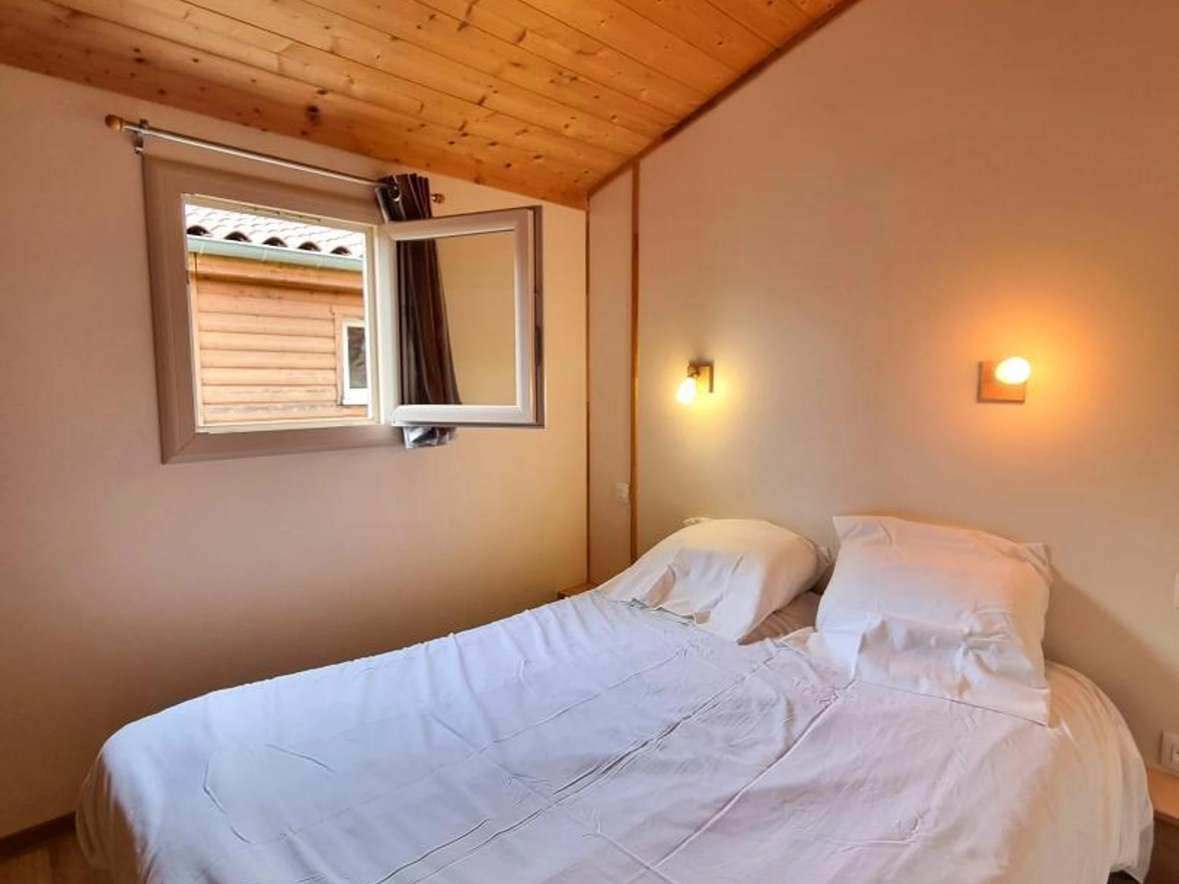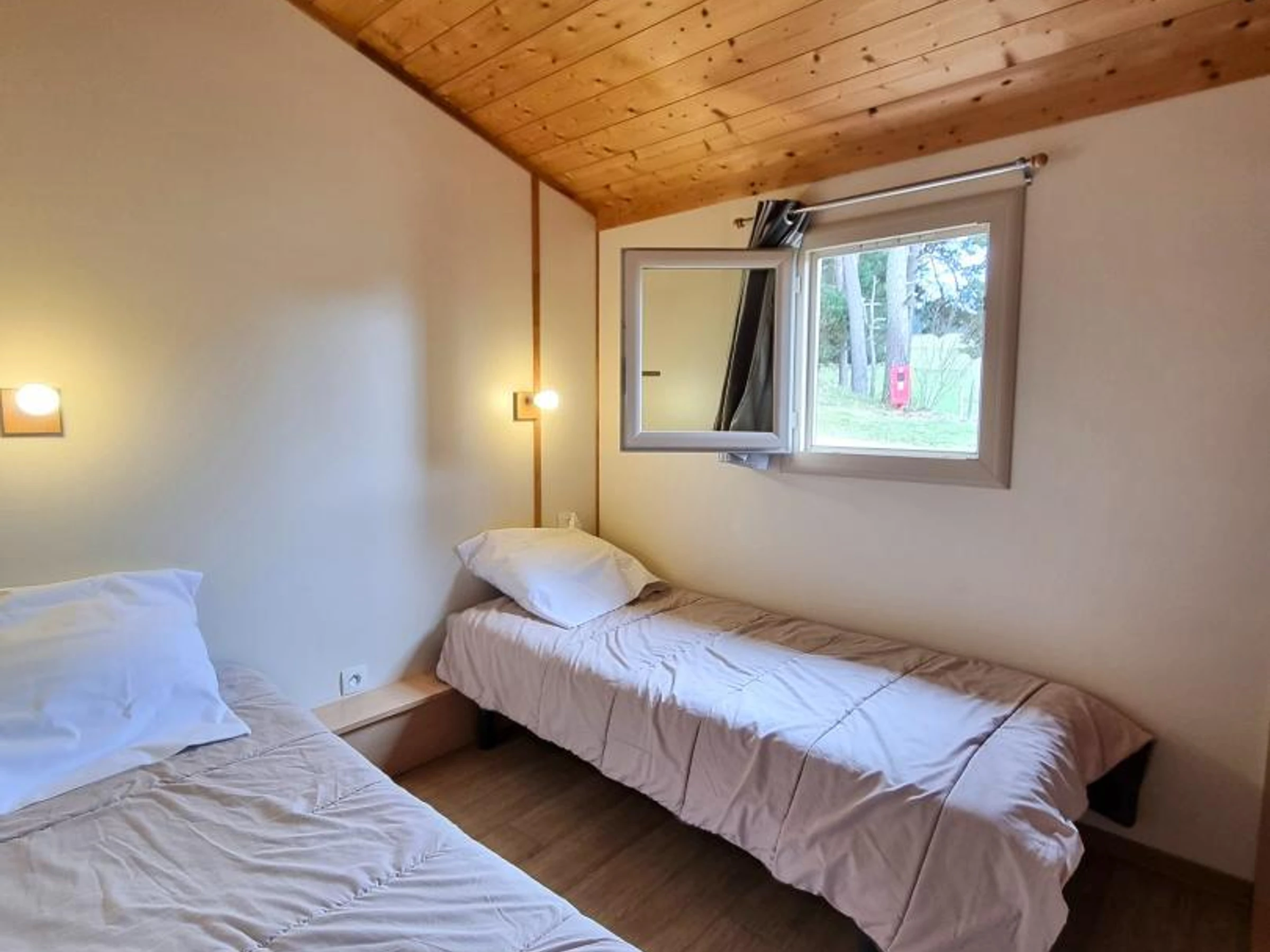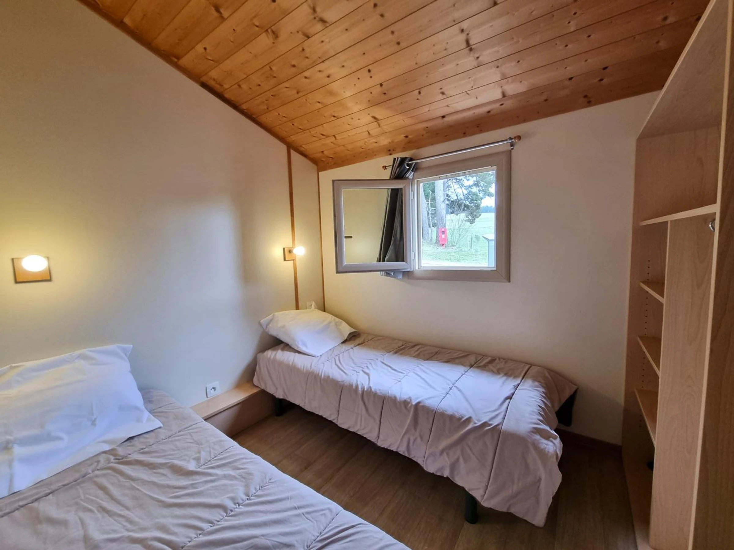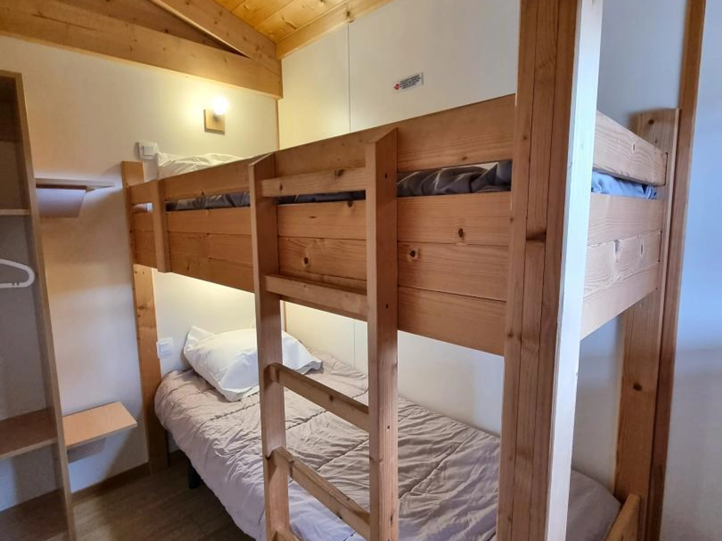 Dieses 35 m² große Chalet „Sapin“ bietet eine funktionale und optimale Raumaufteilung für bis zu 6 Personen. Es verfügt über drei Schlafzimmer: eines mit einem Doppelbett (140 x 190 cm), ein zweites mit zwei Einzelbetten (80 x 190 cm) und ein drittes mit zwei Etagenbetten (80 x 190 cm), ideal für Kinder.