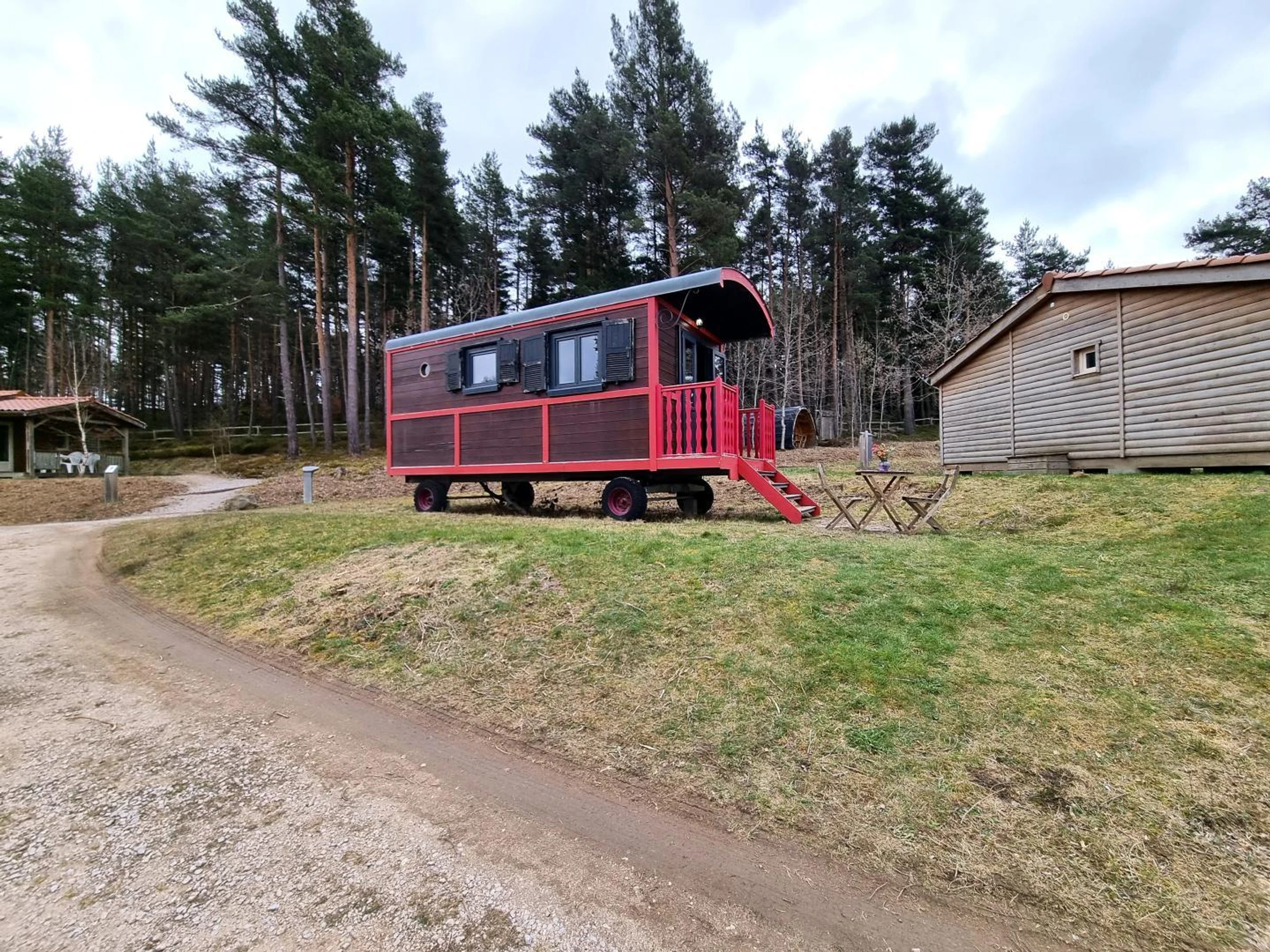 Das Badezimmer verfügt außerdem über Dusche und WC. Draußen laden Tisch und Stühle mit Sonnenschirm zum Verweilen ein – ideal für gemeinsame Mahlzeiten im Freien und sonnige Tage. Auf Anfrage stellen wir Ihnen gerne einen Elektrogrill, weitere Gemeinschaftsgeräte und eine Waschmaschine zur Verfügung, um Ihren Aufenthalt noch komfortabler zu gestalten. Gönnen Sie sich eine einzigartige Auszeit in der Natur, mitten im Herzen der Haut-Forez-Region! Inmitten einer unkonventionellen, alternativen Atmosphäre lädt dieser 17 m² große Wohnwagen zu einem naturnahen und abwechslungsreichen Urlaub ein. Ideal für 2 bis 3 Personen, besticht er durch seinen warmen und einzigartigen Charakter und ist perfekt für einen Wochenendausflug oder einen unvergesslichen Urlaub. Hier können Sie zur Ruhe kommen, die schönen Dinge des Lebens genießen und jeden Moment in friedlicher Umgebung auskosten. Gelegen in einer geschützten Anlage innerhalb eines Freizeitparks, bietet der Wohnwagen eine grüne Oase der Entspannung. Kinder vergnügen sich auf den Spielplätzen, während Erwachsene sich am Bouleplatz treffen oder gesellige Stunden im Freien verbringen. Ein Ferienhaus mit Wandermöglichkeiten, Mountainbike-Touren und Bademöglichkeiten in Usson-en-Forez an der Loire!