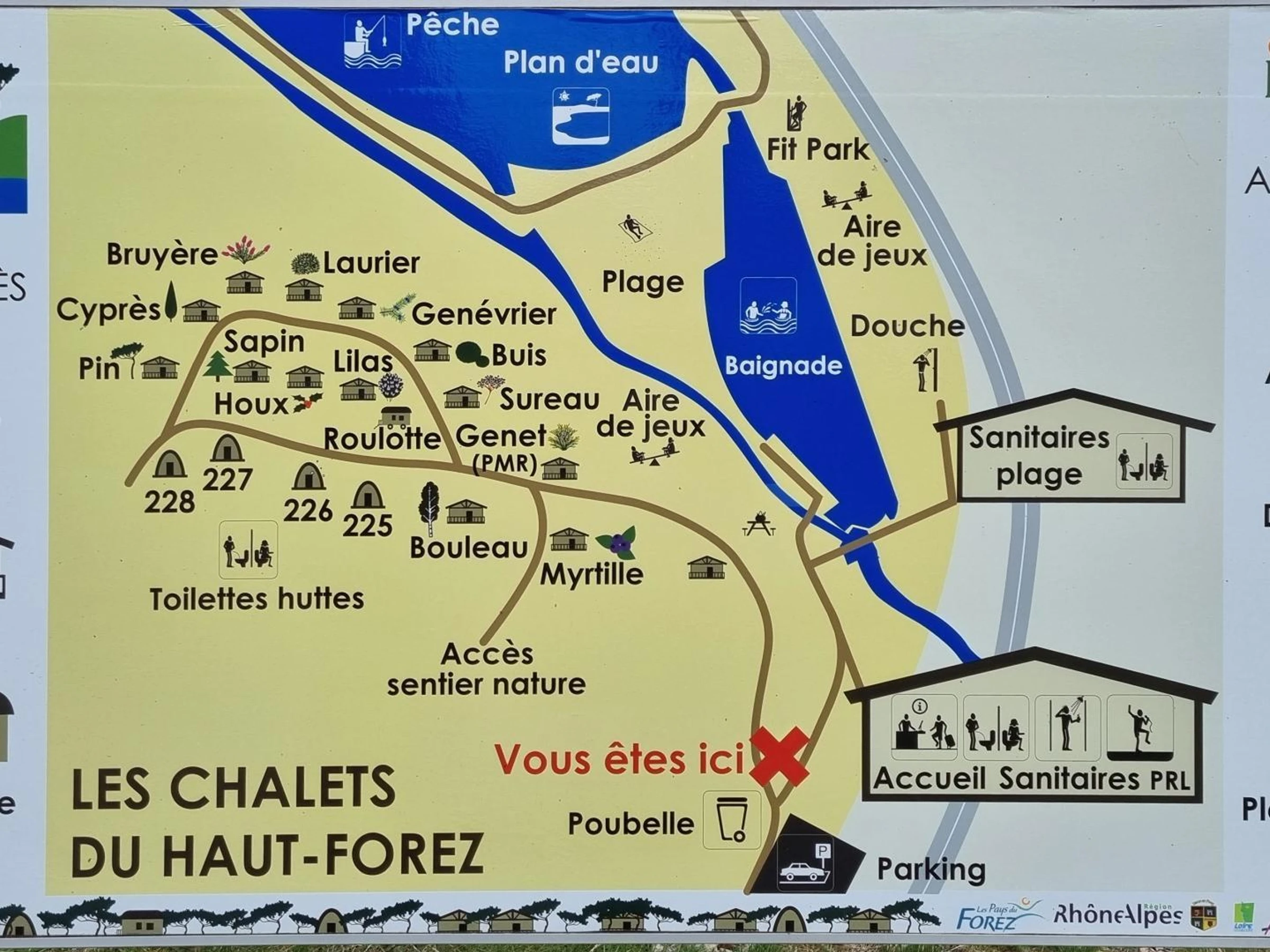 Dieses Reiseziel in der Region Auvergne-Rhône-Alpes ist ideal für Ökotourismus-Liebhaber. Vom Park aus starten direkt Wanderwege, Mountainbike-Strecken oder Sie können sich im Orientierungslauf versuchen. Nur wenige Gehminuten entfernt bietet der See einen natürlichen Badebereich (beaufsichtigt im Sommer Juli/August 2026), ideal zum Abkühlen nach einem aktiven Tag. Abenteuerlustige kommen hier voll auf ihre Kosten.