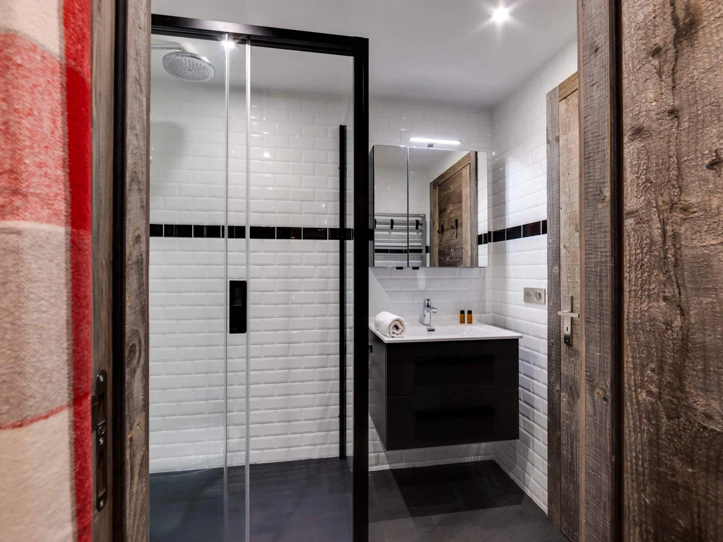 - Badezimmer zwischen den beiden Zimmern: Dusche, Waschbecken, WC