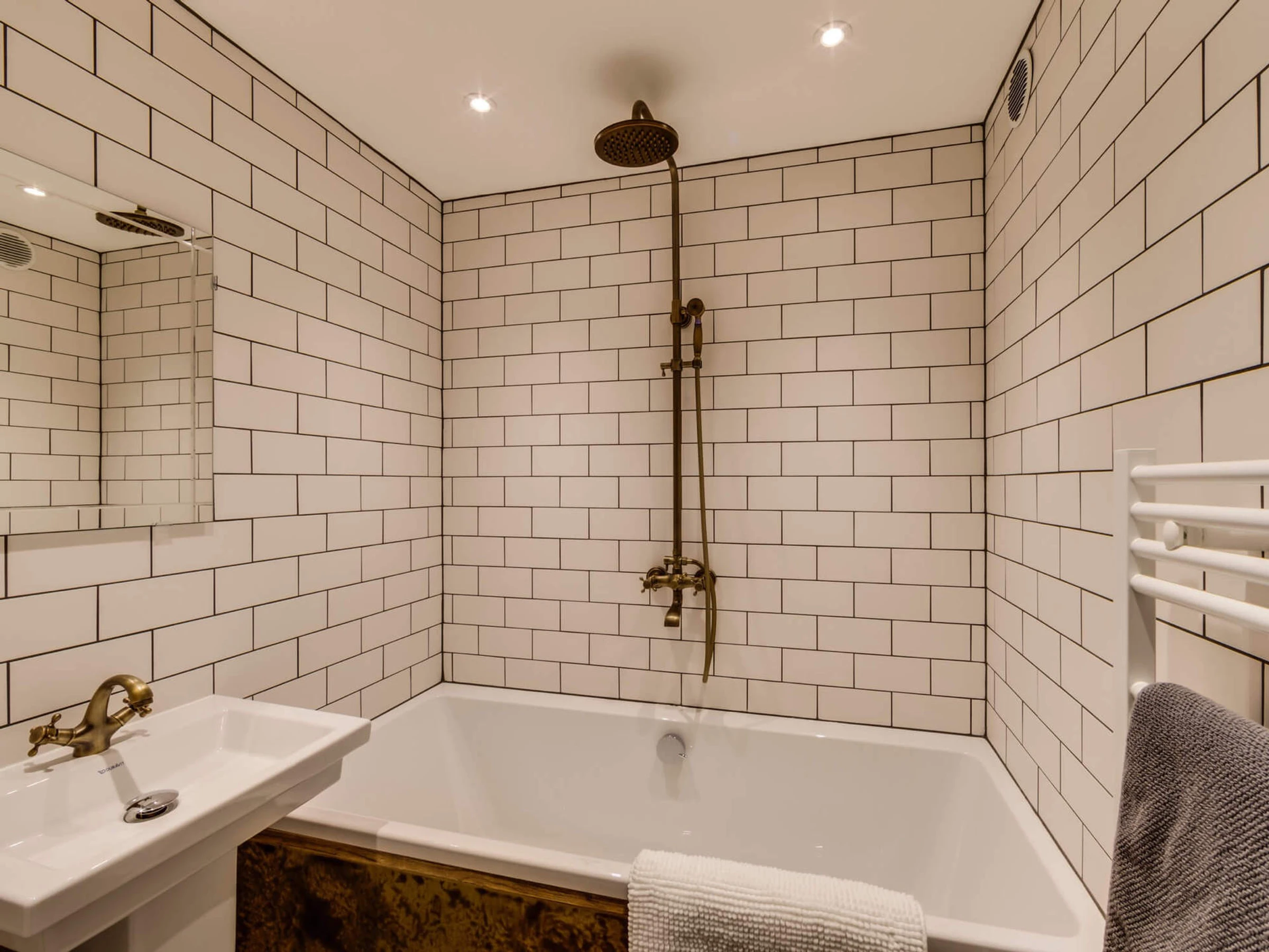 - Badezimmer: Badewanne mit Dusche, Waschbecken, beheizter Haltegriff