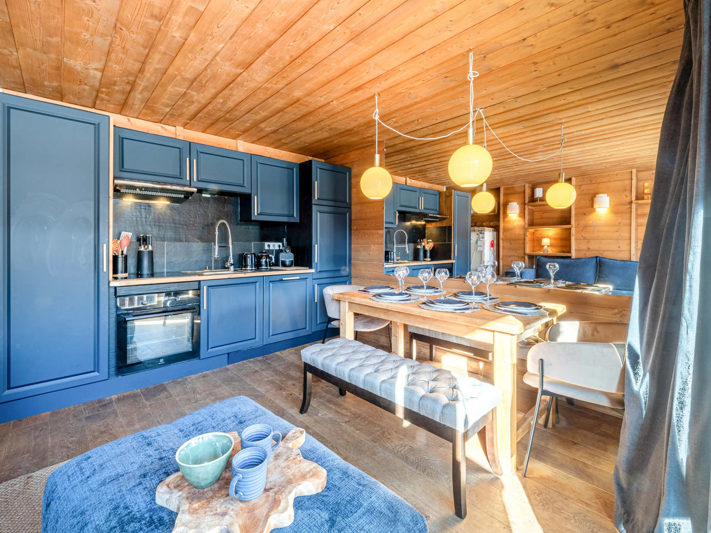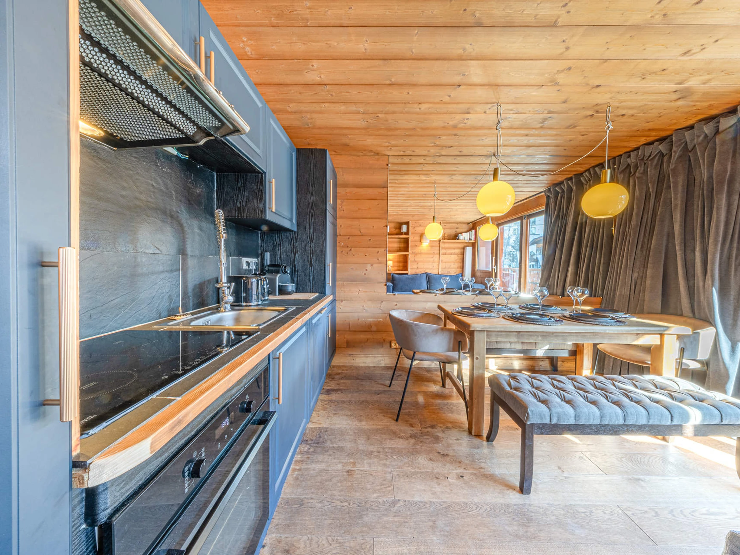 Küche: Ausgestattet mit Geschirrspüler, Backofen, Cerankochfeld, Kühlschrank, Dunstabzugshaube und Mikrowelle mit Grillfunktion.