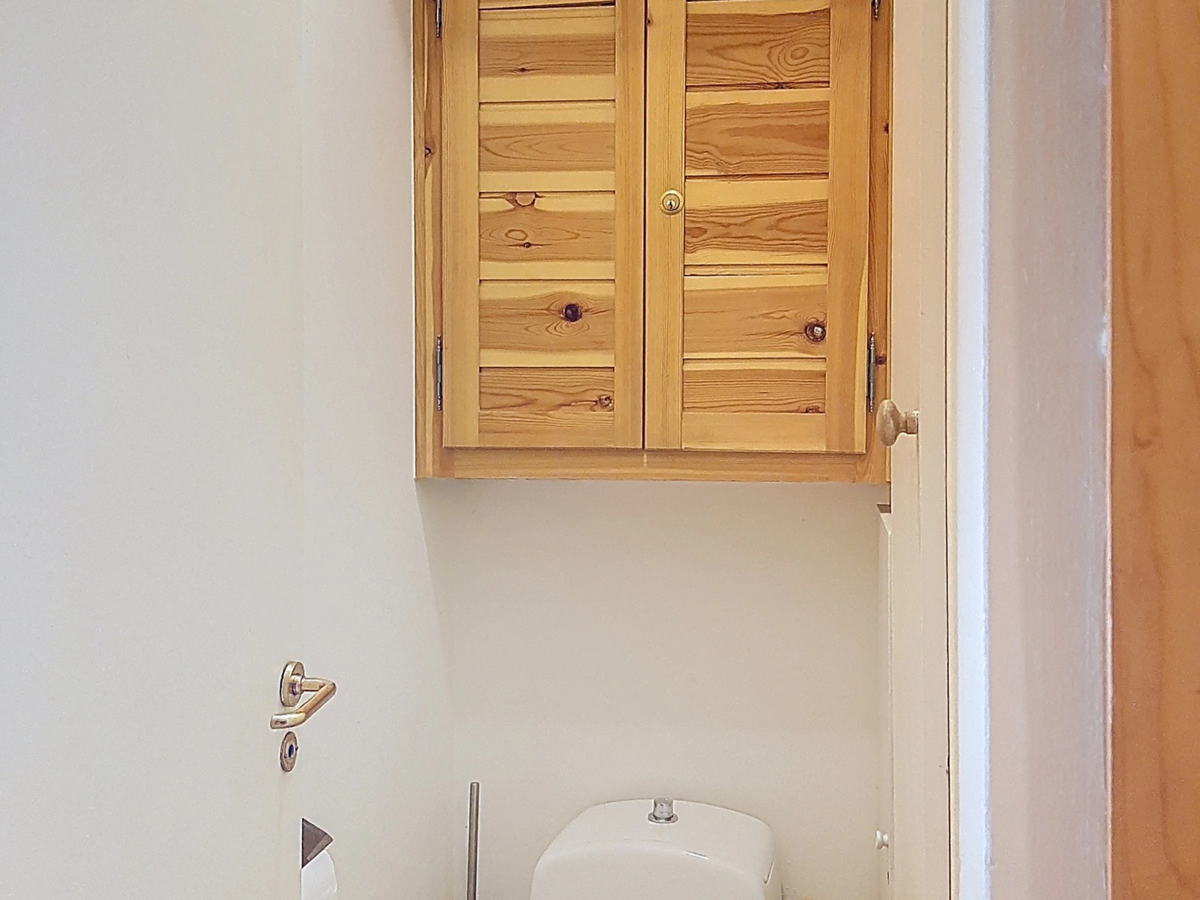 Badezimmer mit Handtuchtrockner und separatem WC.