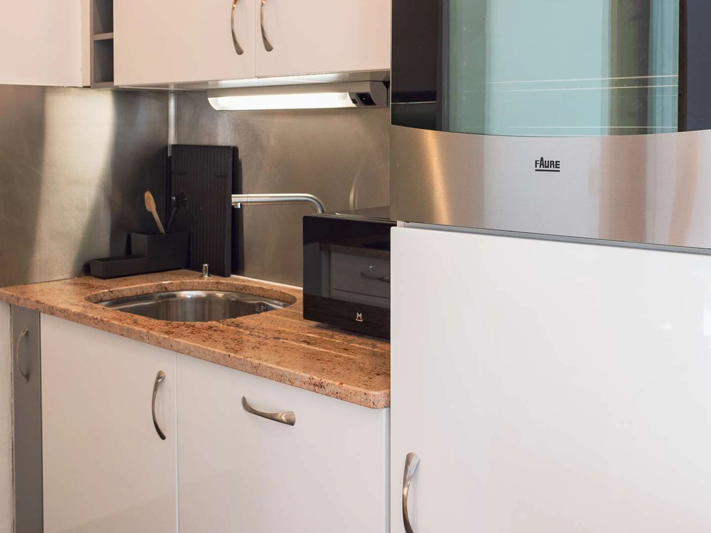 - Voll ausgestattete offene Küche für 5 Personen mit Induktionskochfeld, Dunstabzugshaube, Geschirrspüler, Backofen, Mikrowelle, Kühlschrank, Nespresso-Maschine, Wasserkocher und Toaster.